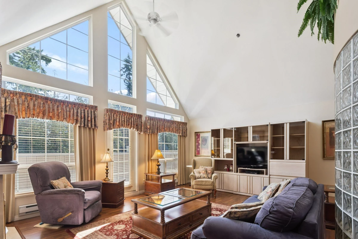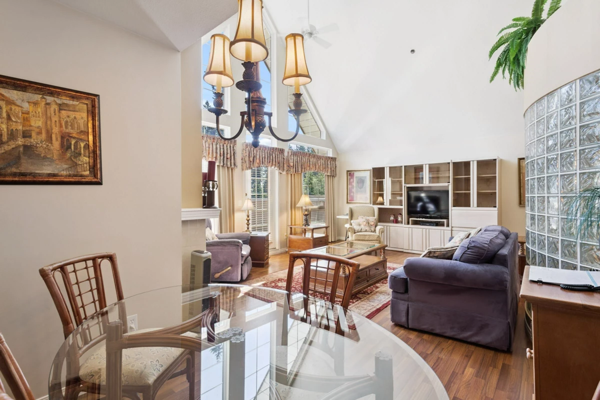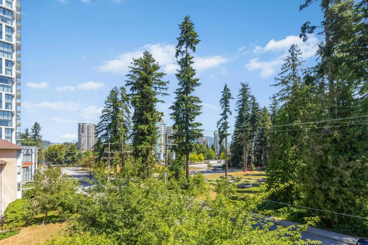 Penthouse Perch with a Park View!! Downsizers delight with elevated living in this expansive two-bedroom, two-bathroom penthouse suite, with treetop views of Glen park. This well-maintained residence offers over 1,300 square feet of thoughtfully designed space, highlighted by soaring vaulted ceilings and abundant natural light. A huge patio extends your living area outdoors, perfect for morning coffee, entertaining, or simply soaking in the peaceful greenery below. Inside, the layout is both functional and elegant with bedrooms on opposite sides of the unit, each providing significant space and ample storage. 1 parking & 1 storage locker. Prime location walking distance to Coquitlam Center. Call today and come have a look! <Open House! SAT. Nov. 16, 12:00-2:00!>
