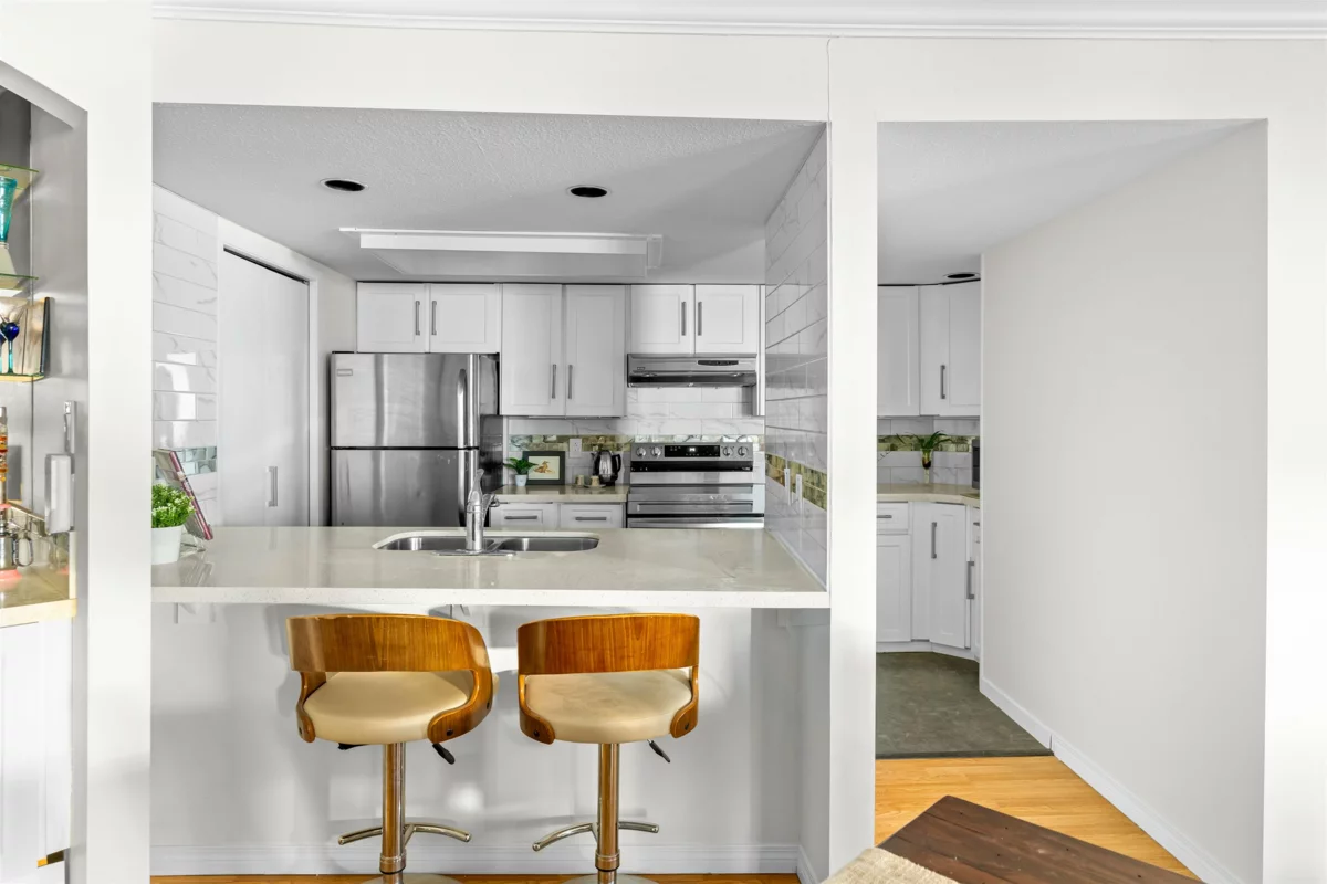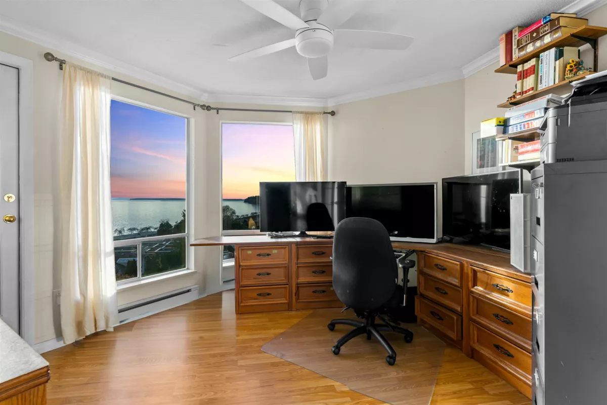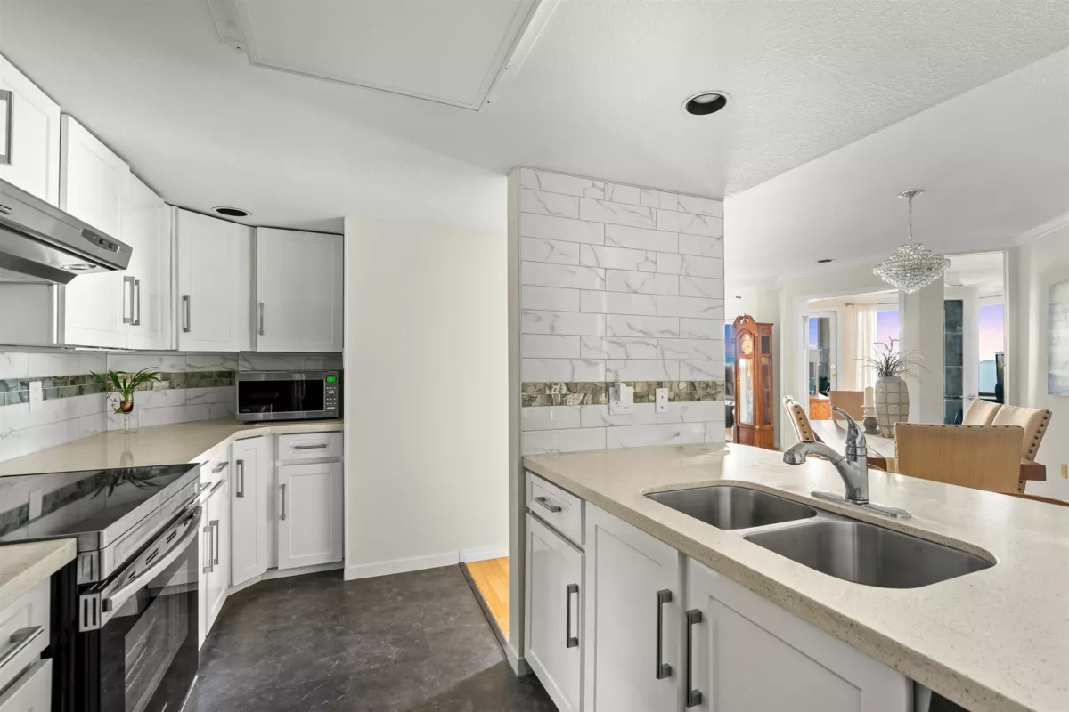 Welcome to Victoria Terrace by Bosa—your seaside retreat in the heart of White Rock! Perfectly positioned in one of the area’s most coveted locations, this 2 Bed + Den, 2 Bath home offers completely unobstructed, panoramic views from your 2 balconies of the ocean, pier & Gulf Islands from every room. Thoughtfully renovated, the kitchen dazzles with sleek cabinetry, quartz counters & stainless steel appliances, while both bathrooms have been beautifully updated with modern finishes. Resort-style living awaits with a sparkling outdoor pool & hot tub overlooking the ocean. Just steps to the promenade, beach, cafés & restaurants, this home truly embodies the White Rock lifestyle. In a well-managed, 55+ community that welcomes pets, Victoria Terrace blends luxury, comfort & tranquility.