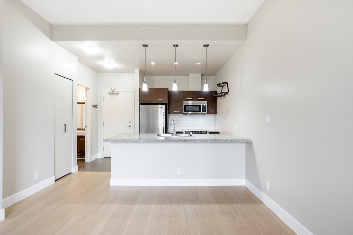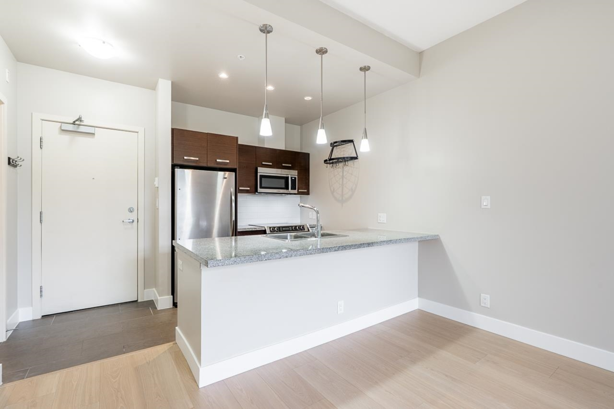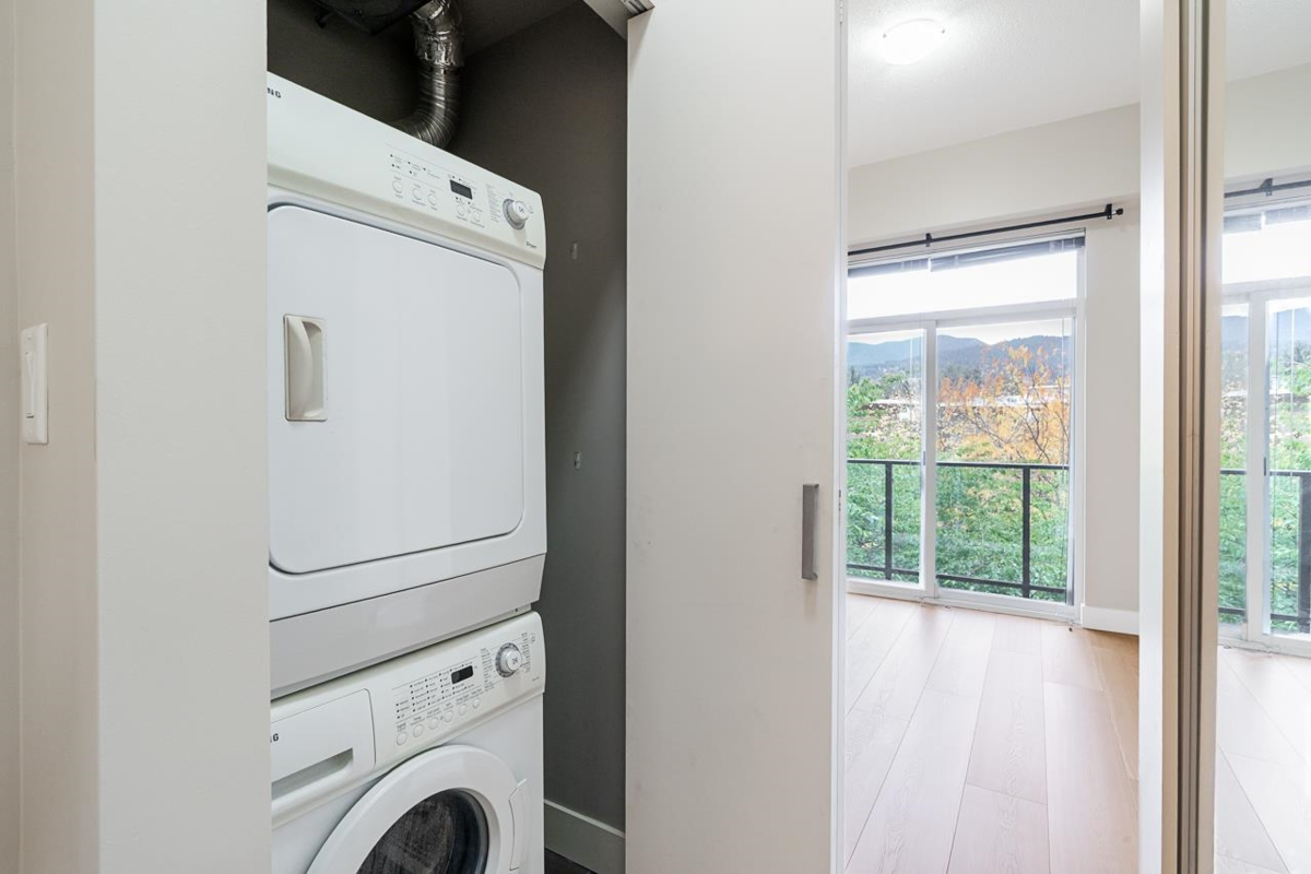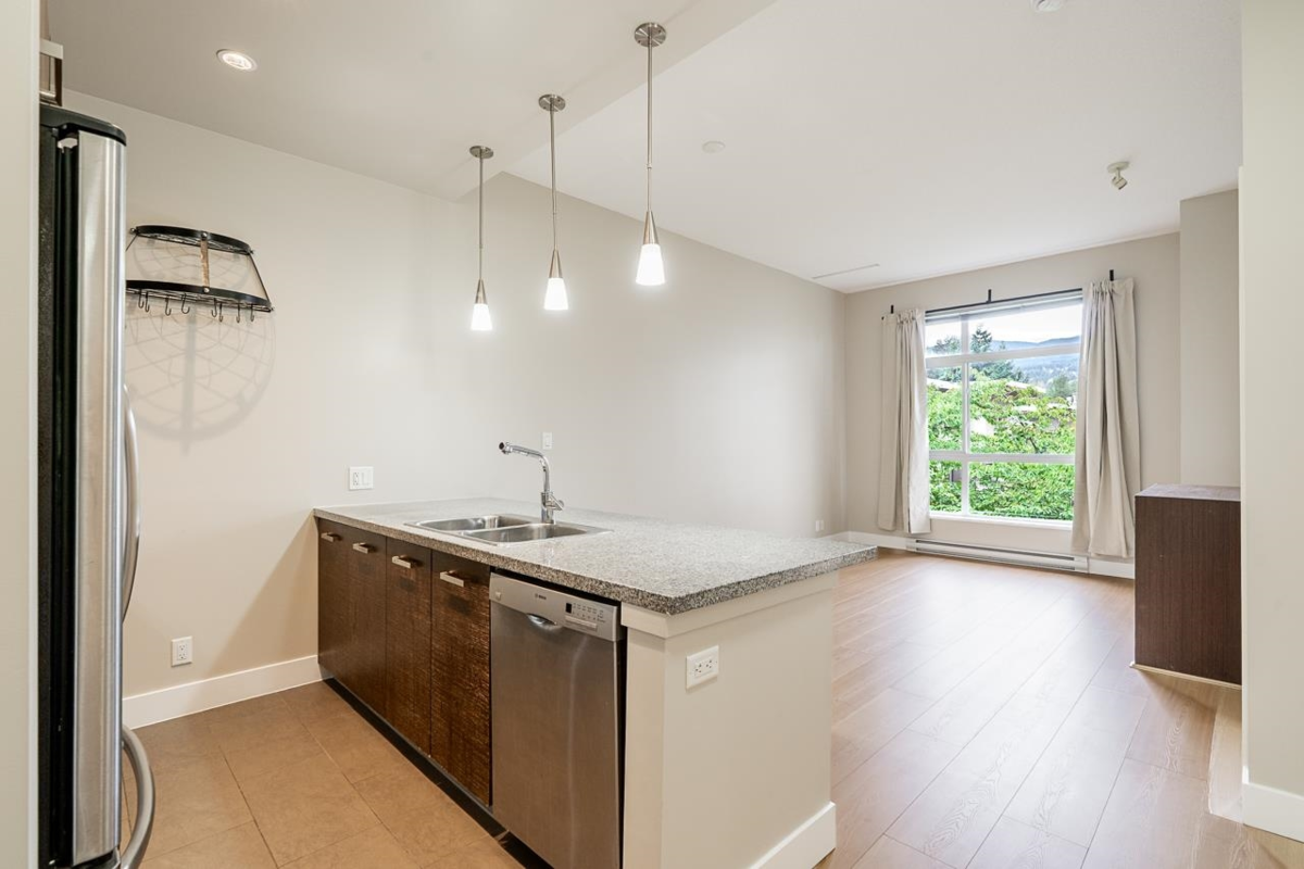 Penthouse living at The Residences at the Parc! This bright and efficiently designed 1 bed, 1 bath home features 10' ceilings and has been refreshed with new flooring and fresh paint, giving it a modern, move-in-ready feel. The kitchen is equipped with high-end Bosch stainless steel appliances, granite countertops, and ample cabinetry. Enjoy peaceful courtyard and mountain views from your top-floor retreat, complete with an electric fireplace, in-suite laundry, one secured parking stall, and a storage locker. This quiet, boutique 30-unit building is extremely well-managed and ideally located in the heart of Coquitlam Centre -steps from the SkyTrain, Coquitlam Centre Mall, Lafarge Lake, Douglas College, and countless shops, restaurants, and parks. OPEN HOUSE SUN NOV 02 2-4 pm
