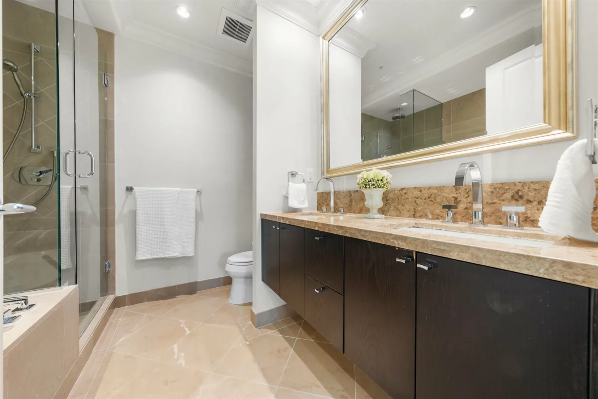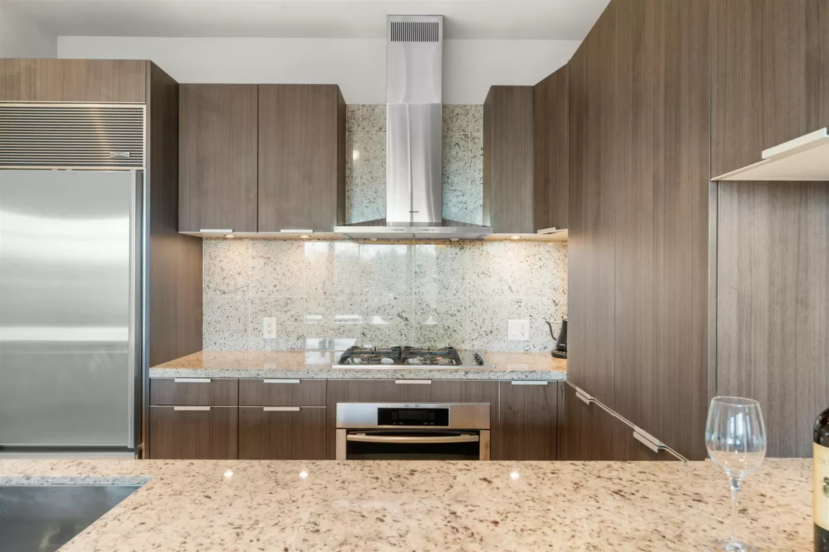 Experience elevated living in the heart of West Vancouver at Waters Edge. This exquisite 2-bedroom + office suite, designed by renowned architect Robert Stern, combines sophistication and comfort. Filled with natural light through expansive windows, the home boasts stunning herringbone and tile flooring, a chef-inspired kitchen with granite countertops, premium stainless steel appliances, and 2.5 luxurious baths, including a spa-like primary ensuite. Relax by the cozy fireplace or unwind on the sunny balcony. The building offers a wealth of amenities, including a storage locker, concierge services, a fully-equipped exercise room, and steam rooms and saunas. Perfectly located, you’re just a scenic stroll away from the river’s edge, the Sea Wall, Park Royal shopping, and convenient transit .