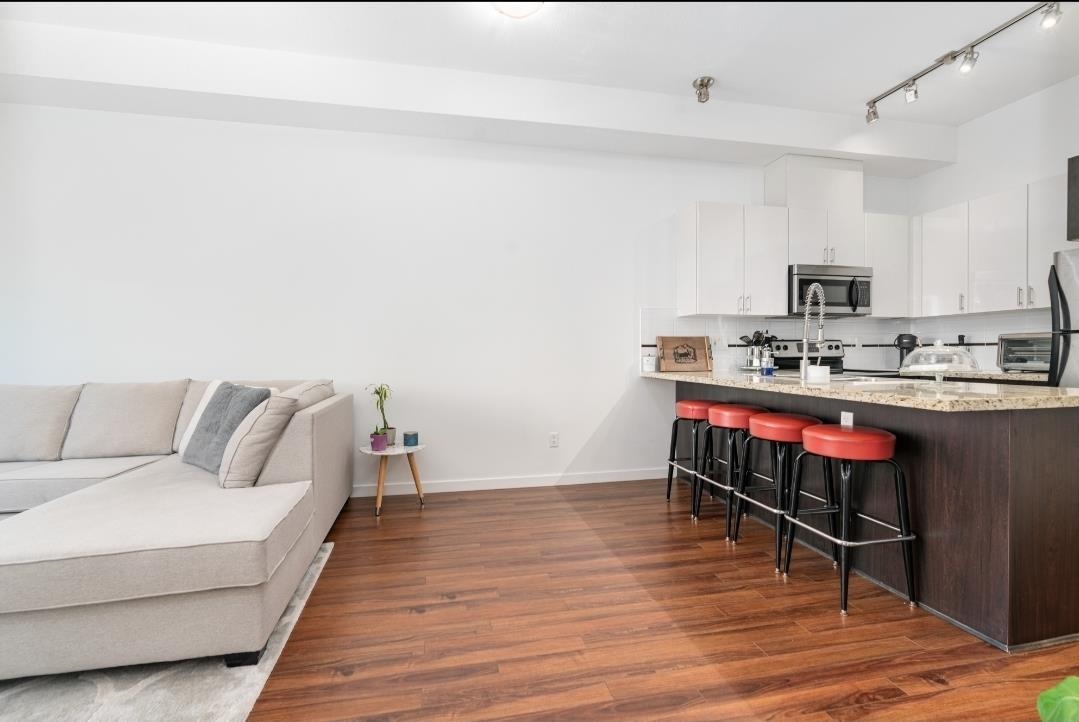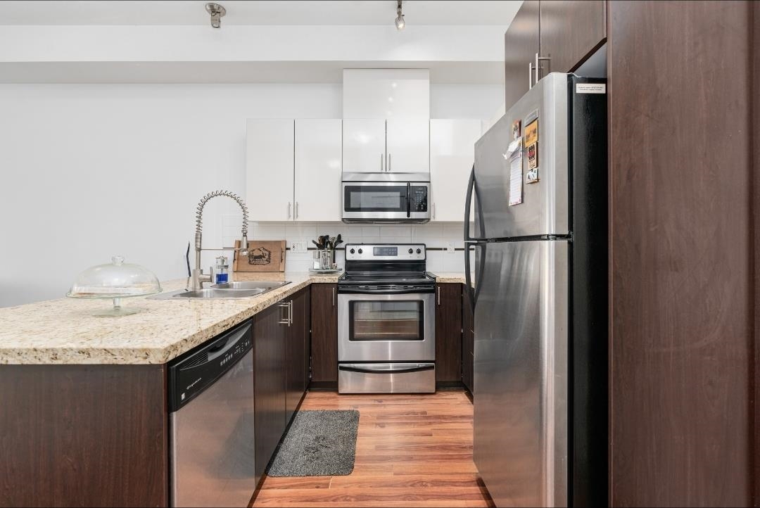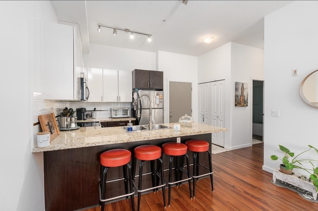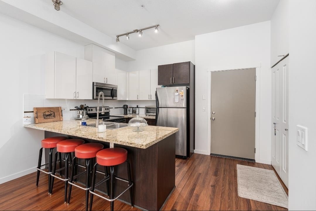 Welcome to MAX! This top floor 2 bed, 2 bath home showcases an open-concept, wide floor plan with high ceilings and abundant natural light. Contemporary finishes, countertops, stainless steel appliances, laminate flooring, and modern fixtures/cabinetry. The bright living/dining area opens to a private balcony, perfect for a morning coffee or evening wind-down. 1 parking stall and one storage locker included. Walk to Guildford Town Centre, Rec Centre/Library, parks, and transit; quick access to Hwy 1. Book your private showing today.