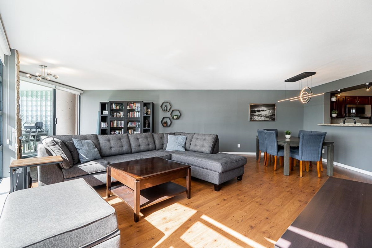 Unbeatable Value! Discover urban living at its finest in this spacious two-bedroom, two-bathroom condo located in the heart of New Westminster. Boasting generous square footage and an open concept with southern views of the city and river. This home features an updated kitchen equipped with granite countertops, an undermount sink, and a large walk-in pantry/laundry area. The generously sized bedrooms offer floor-to-ceiling windows, flooding the space with natural light. Laminate flooring throughout adds a modern touch. Enjoy the convenience of being close to the SkyTrain, shopping, and the vibrant New Westminster Quay, featuring a diverse array of restaurants. This condo is a perfect blend of comfort and accessibility!