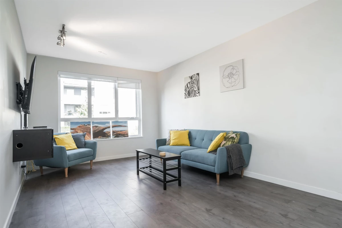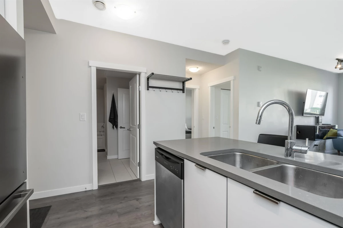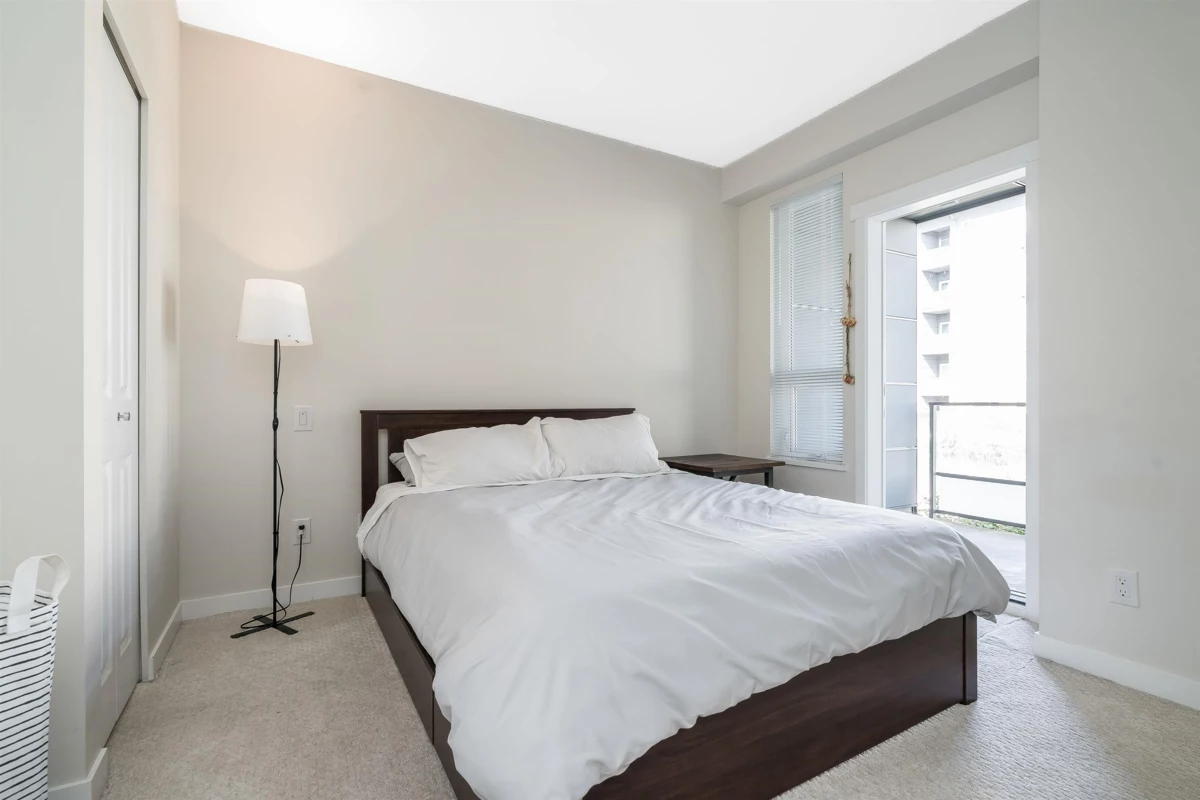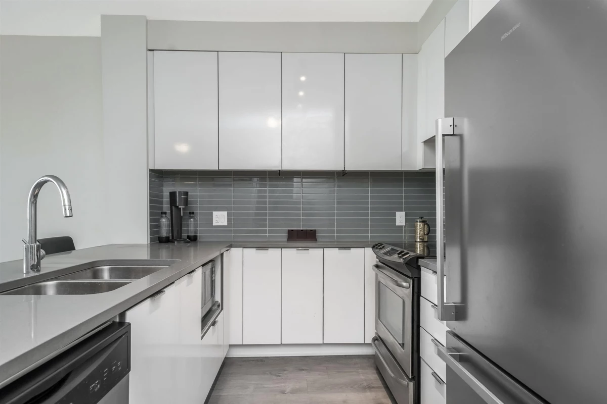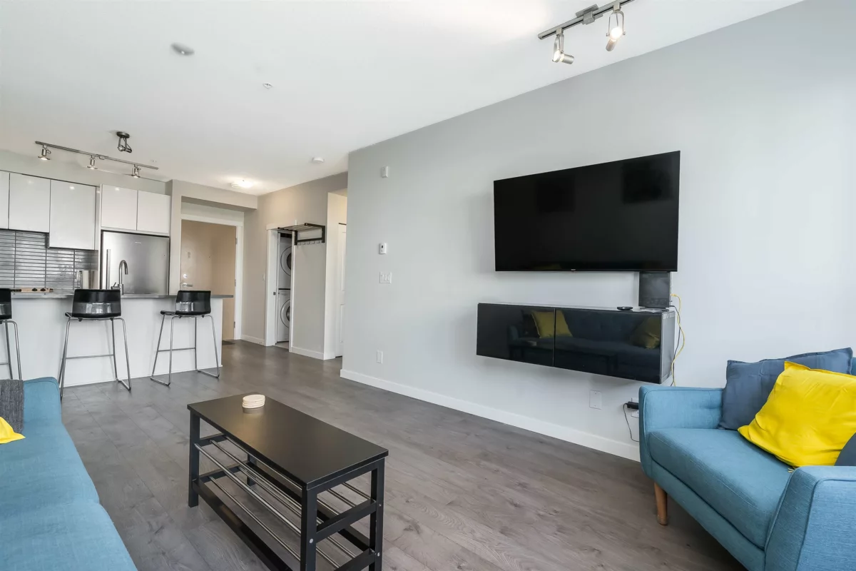 Welcome to Polygon’s Veritas in the heart of SFU’s UniverCity. This bright 2-bed, 1-bath home offers 767 sq.ft. of efficient living with 9' ceilings and a smart, open layout. The gourmet kitchen features quartz countertops and stainless steel appliances, opening to a comfortable living and dining area. The primary bedroom enjoys direct access to a covered balcony, your quiet spot for morning coffee. A spacious 5-piece bathroom (separate tub and shower, double vanity) serves both bedrooms. Full-size front-load laundry, radiant in-floor heating and hot water included in the maintenance fee. Secure parking, plus access to the building’s gym and amenity room. Move-in ready and steps to campus, transit, shops, cafes, and endless trails. Easy to Show!