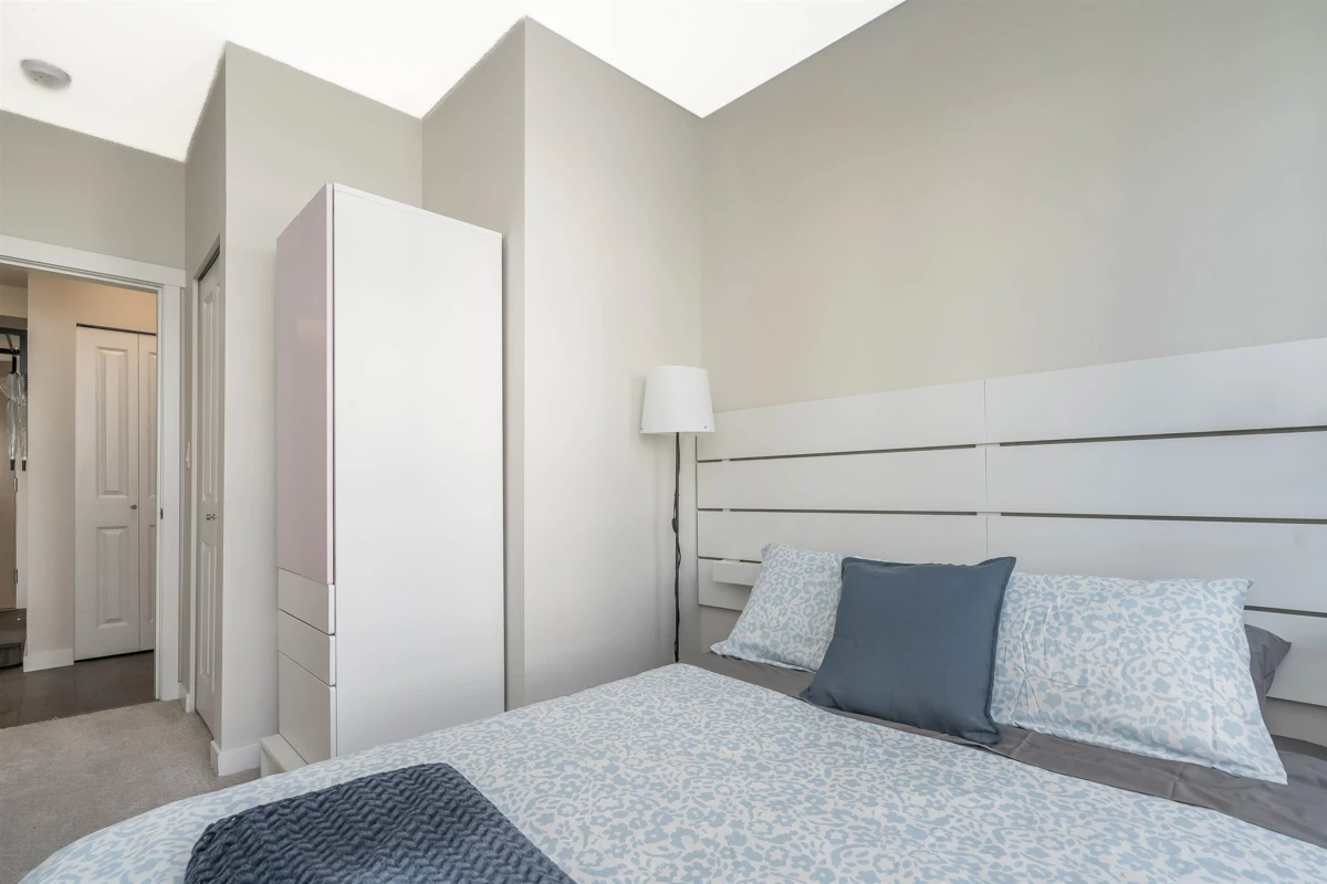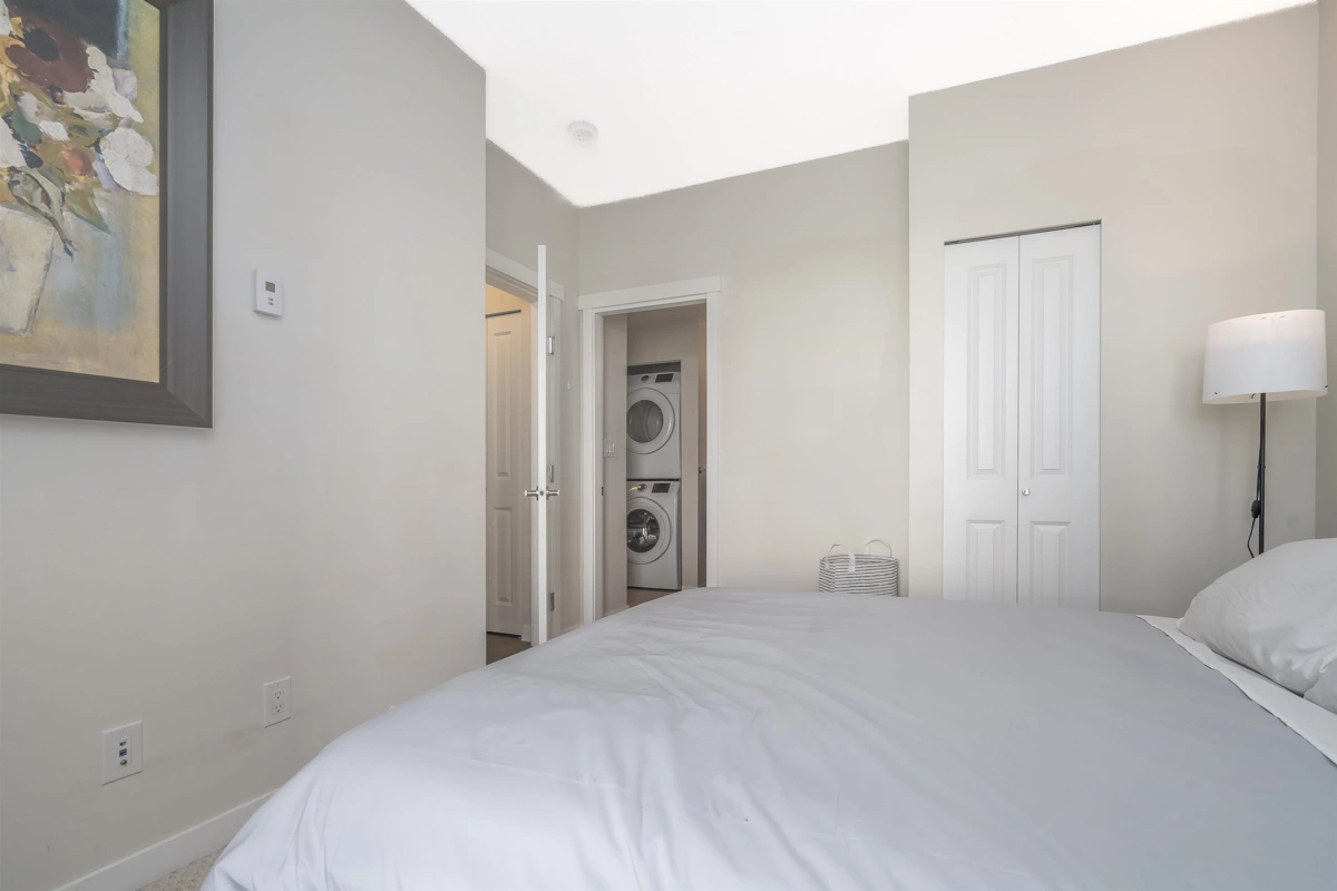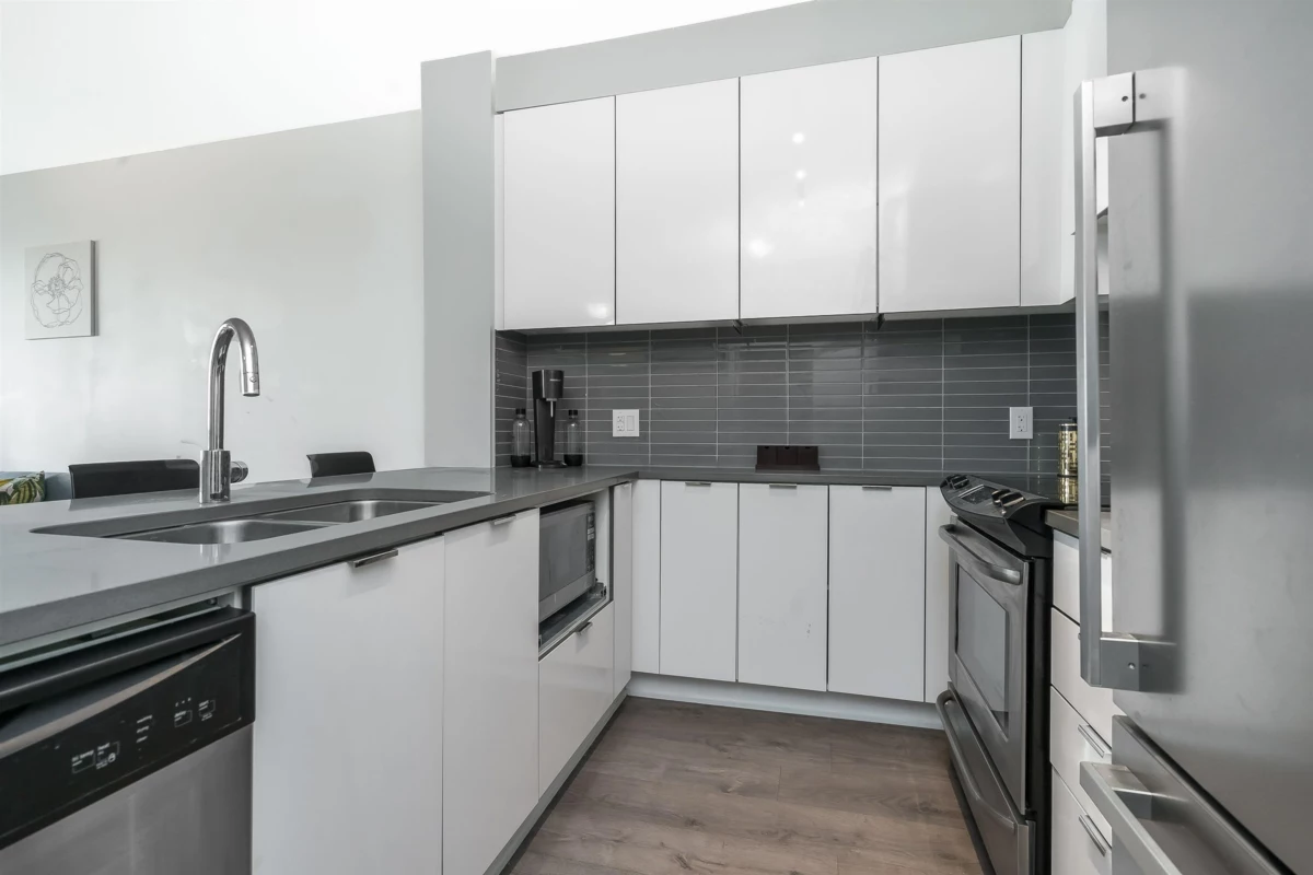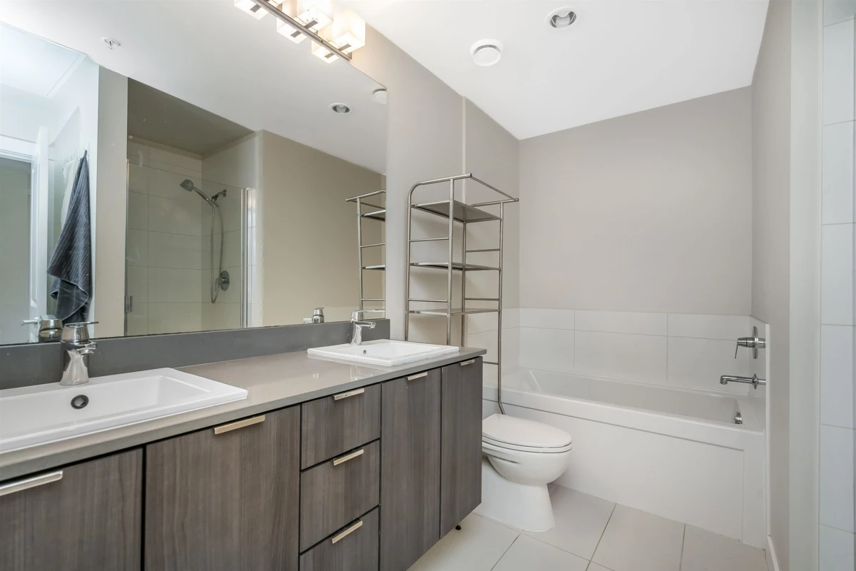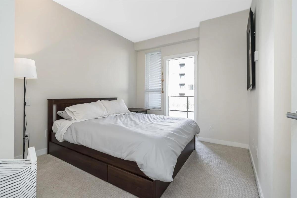 Welcome to Polygon’s Veritas in the heart of SFU’s UniverCity. This bright 2-bed, 1-bath home offers 767 sq.ft. of efficient living with 9' ceilings and a smart, open layout. The gourmet kitchen features quartz countertops and stainless steel appliances, opening to a comfortable living and dining area. The primary bedroom enjoys direct access to a covered balcony, your quiet spot for morning coffee. A spacious 5-piece bathroom (separate tub and shower, double vanity) serves both bedrooms. Full-size front-load laundry, radiant in-floor heating and hot water included in the maintenance fee. Secure parking, plus access to the building’s gym and amenity room. Move-in ready and steps to campus, transit, shops, cafes, and endless trails. Easy to Show!