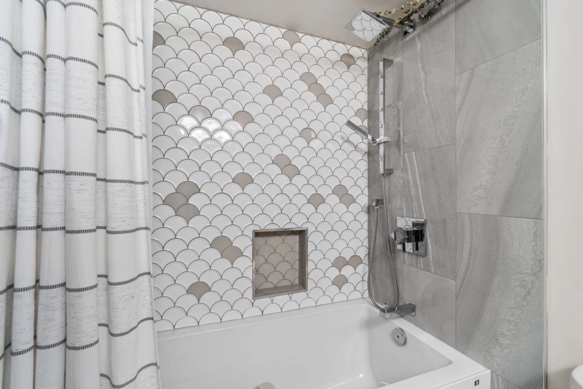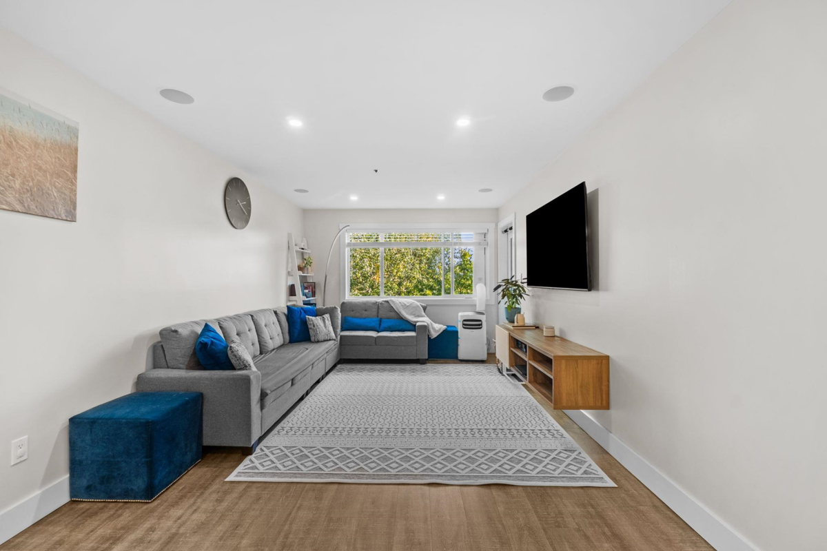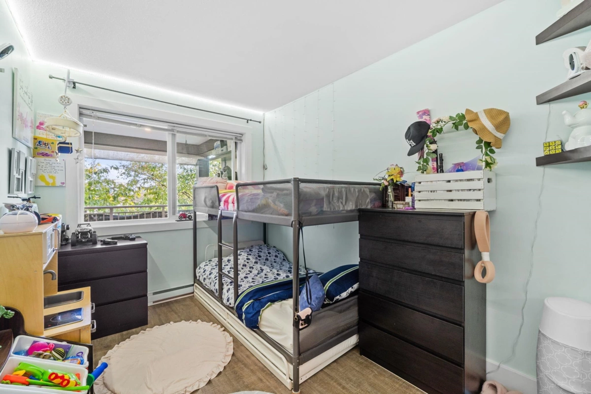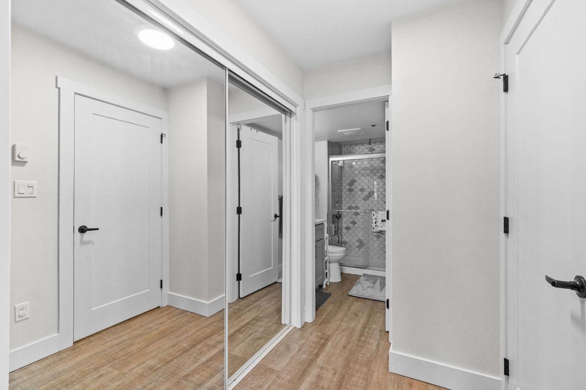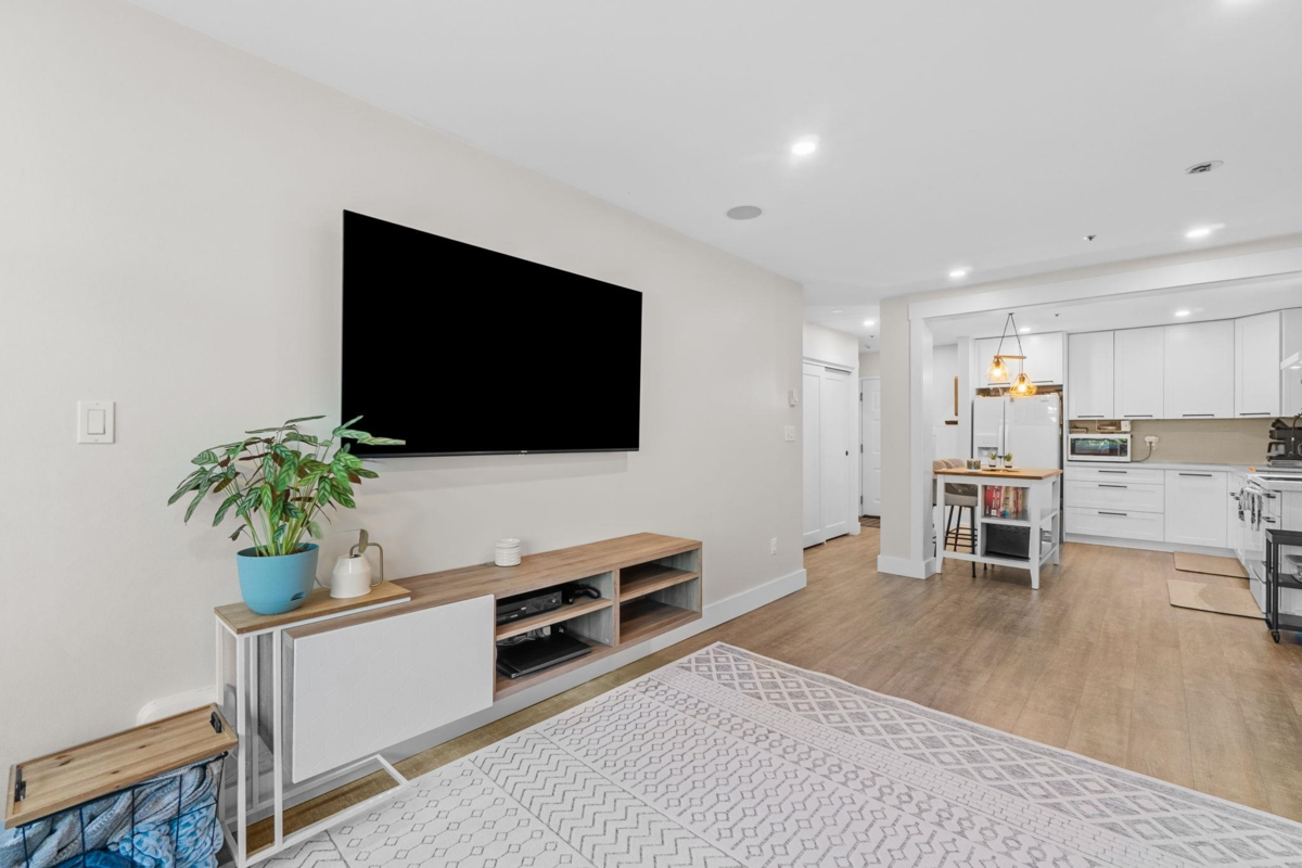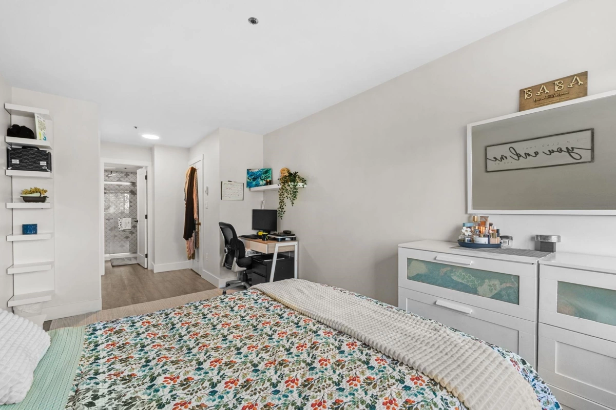 Nicely renovated 2 bedroom & 2 bathroom condo in great New Westminster location . Open, spacious & bright floor plan enhanced with quality upgrades .You will definitely be impressed by the beautiful kitchen featuring quartz counters.The bathrooms have high end finishes and quality fixtures. The home has Polk Audio in ceiling speakers and LED light throughout. Primary bedroom is generously sized and will easily accommodate a king size bed & additional furniture . S/E east facing covered balcony facing into mature tree tops for privacy.As a bonus there is a large laundry room with additional storage space . Well managed building with newer balconies & new elevator . One parking & storage locker included . Short walk to Skytrain & Douglas College.