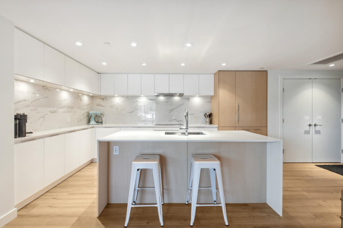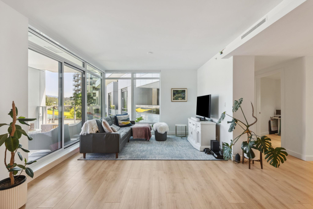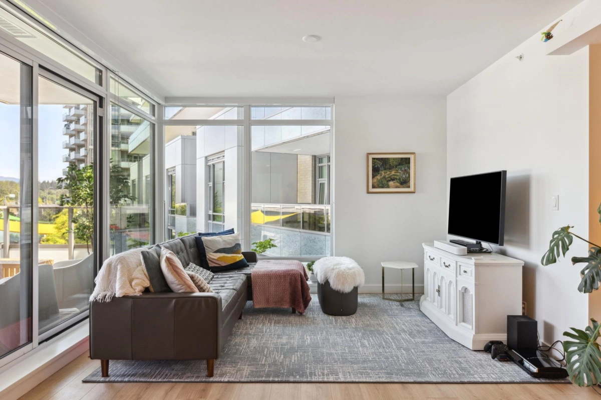 Experience contemporary living at its finest in this elegant 2-bedroom + den & 2-bath corner unit located at the prestigious Apex by Denna Homes. The spacious layout is complemented by floor-to-ceiling windows & large private balcony with North Shore mountain views. The kitchen is equipped with integrated Liebherr & AEG appliances, quartz countertops and a striking waterfall island - ideal for culinary enthusiasts & entertaining guests. Residents have access to a 14,000 sqft clubhouse featuring a pool, gym, steam & dry saunas, expansive party room, guest suites, & concierge services. Situated in the vibrant Lynnmour neighbourhood, this residence offers access to parks, trails, shopping centres, & public transit, offering both urban convenience & a harmonious blend of luxury & comfort.