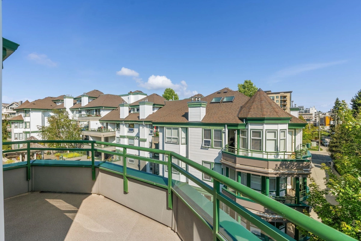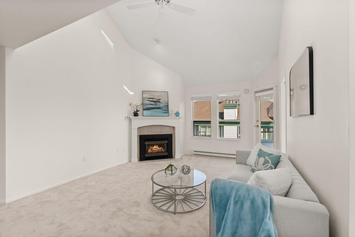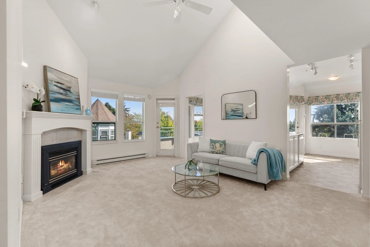 Welcome to this RARE 1,500 SF top-floor end unit in fab White Rock! Feat'ing 2 bdrms, 2 baths & a bright loft perfect as a 3rd bdrm or flex space w/ over 200 SF of attic storage. A wrap-around deck that lets you soak in 180° views from East to West, showcasing Mt. Baker & peekaboo ocean view. Natural light floods the space through expansive windows. Feat'ing a dedicated dining area for easy entertaining, a cozy gas fp (gas included in strata fee) & new carpet throughout the main floor. Added convenience of 2 side-by-side parking stalls + lg storage locker. Friendly complex offers great amenities: woodworking shop, full gym, lounge w/ kitchen, book exchange, bike storage, guest suite, landscaped courtyard w/ seating & putting green. Walk to shops, services & all amenities.