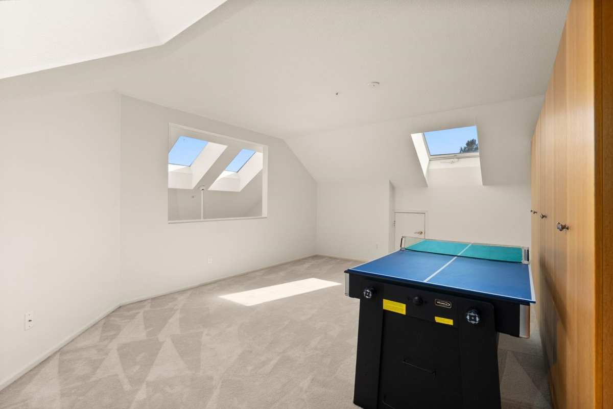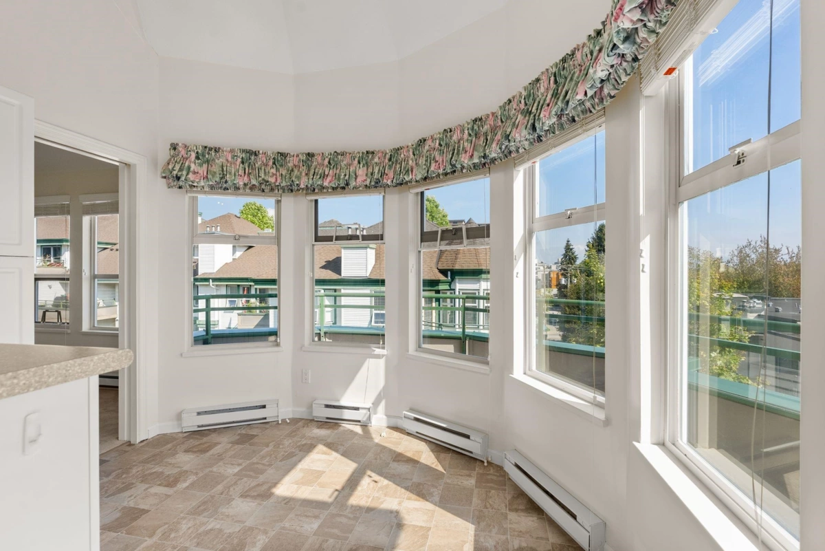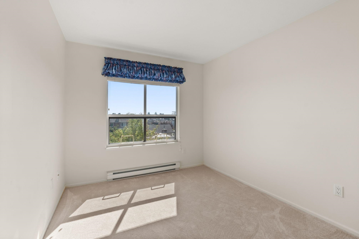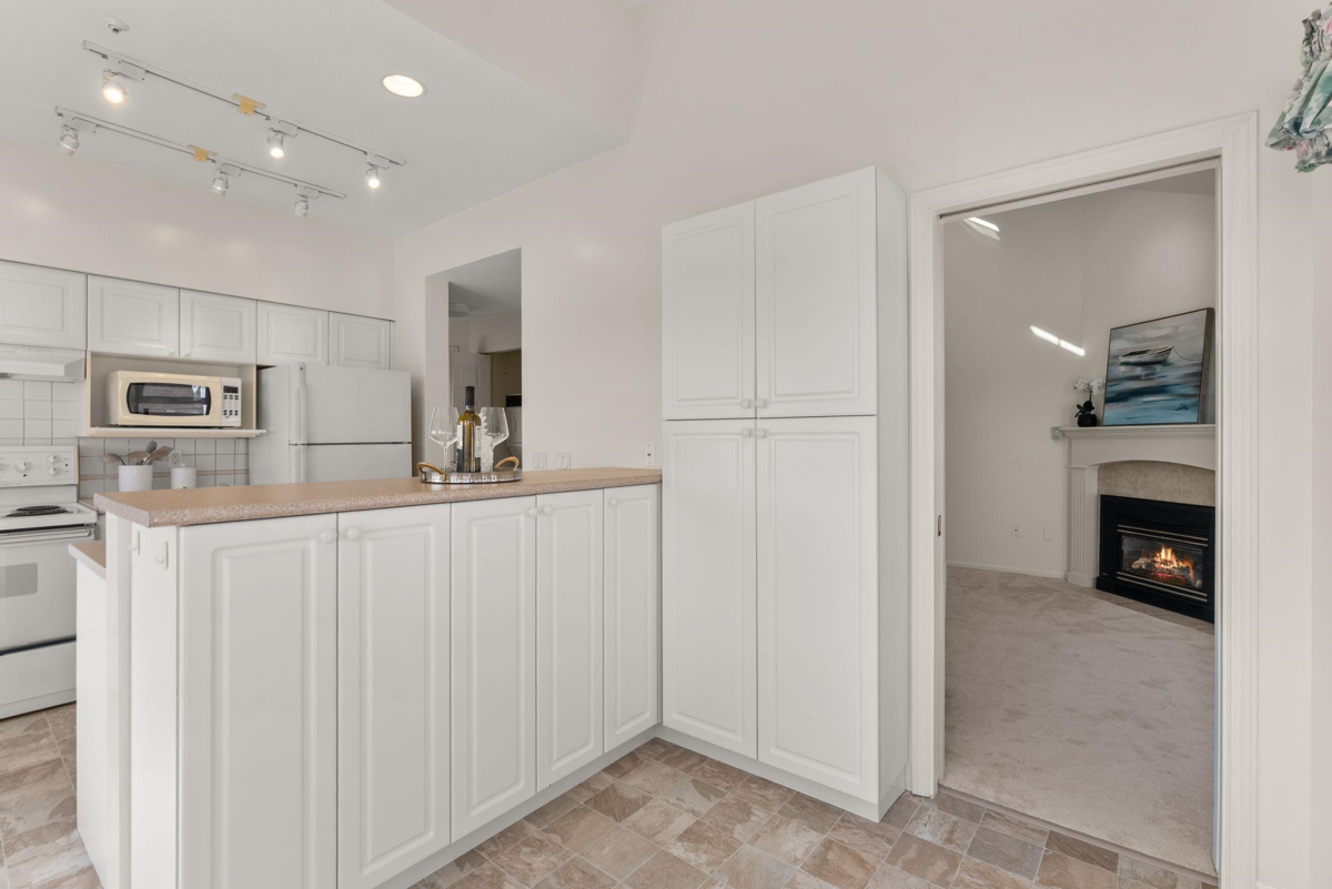 Welcome to this RARE 1,500 SF top-floor end unit in fab White Rock! Feat'ing 2 bdrms, 2 baths & a bright loft perfect as a 3rd bdrm or flex space w/ over 200 SF of attic storage. A wrap-around deck that lets you soak in 180° views from East to West, showcasing Mt. Baker & peekaboo ocean view. Natural light floods the space through expansive windows. Feat'ing a dedicated dining area for easy entertaining, a cozy gas fp (gas included in strata fee) & new carpet throughout the main floor. Added convenience of 2 side-by-side parking stalls + lg storage locker. Friendly complex offers great amenities: woodworking shop, full gym, lounge w/ kitchen, book exchange, bike storage, guest suite, landscaped courtyard w/ seating & putting green. Walk to shops, services & all amenities.