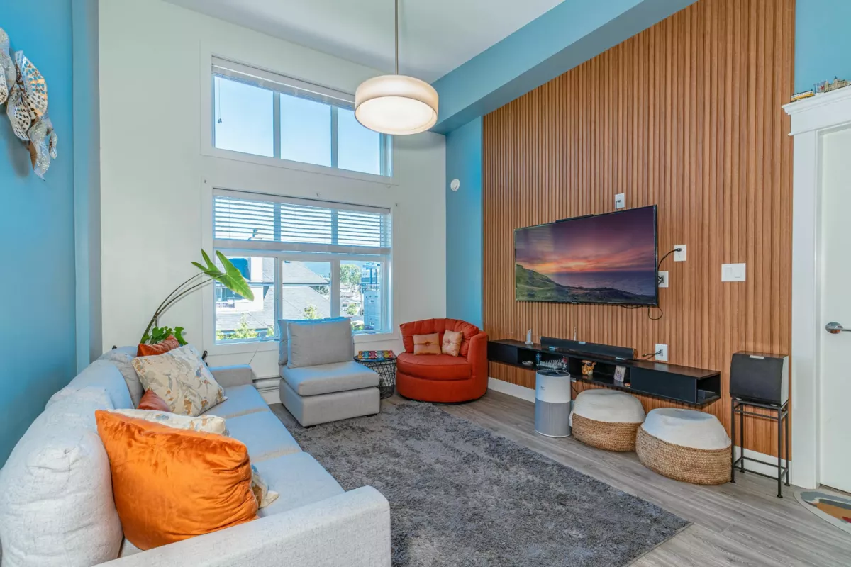 This stunning 2-bedroom, 2-bathroom condo with a den features high ceilings and large windows that flood the space with natural light. The modern kitchen flows into the spacious living and dining areas, ideal for both relaxing and entertaining. A large pantry offers extra kitchen storage, and a generous closet in the entrance hallway provides additional storage—features rarely found in other units. The den can be used as a home office, guest room, or creative space. Located in a vibrant, central neighbourhood, you’re just steps from shops, public transit, schools, hiking trails, and parks. This condo offers a perfect mix of style, convenience, and modern living. **Open House SUN Nov 9 12PM-130PM**