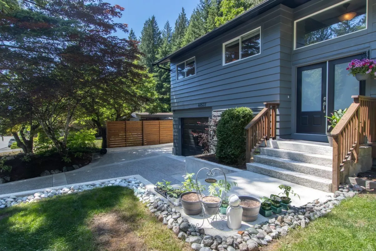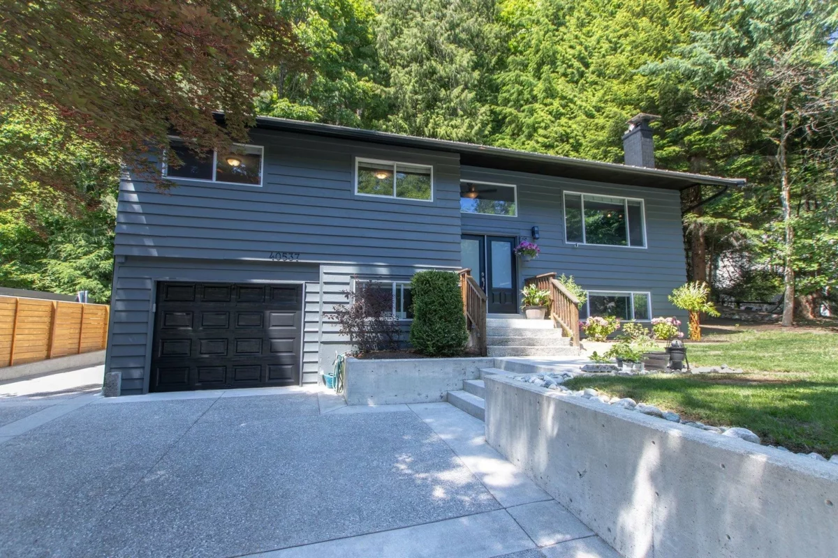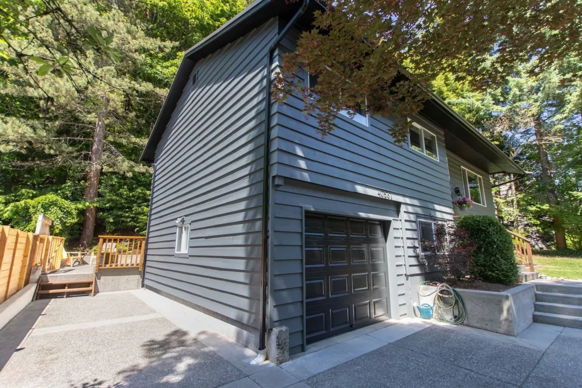 Beautiful Garibaldi Highlands home and property in a very private setting, surrounded by mature landscaping and backing on to Merrill Park with private trail access. 3-bed home up stairs and a 2-bedroom nanny suite downstairs with easy ability to convert to a 4-bed home with 1 bed suite. A full interior renovation in 2009 includes hardwood floors throughout, heated kitchen floor, 2 sets of laundry, new Pocklington steal roof in 2014, two new gas fireplaces in 2020, irrigation for the lawn and garden and new exterior paint in 2025. A large enclosed garage has ample space with parking for 1 and room for your toys and tools. An expansive cement driveway allows for RV and/or boat parking beside the house and another couple large parking spaces on the driveway. Call for further details.