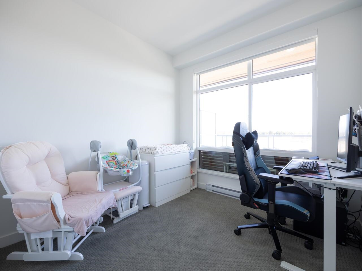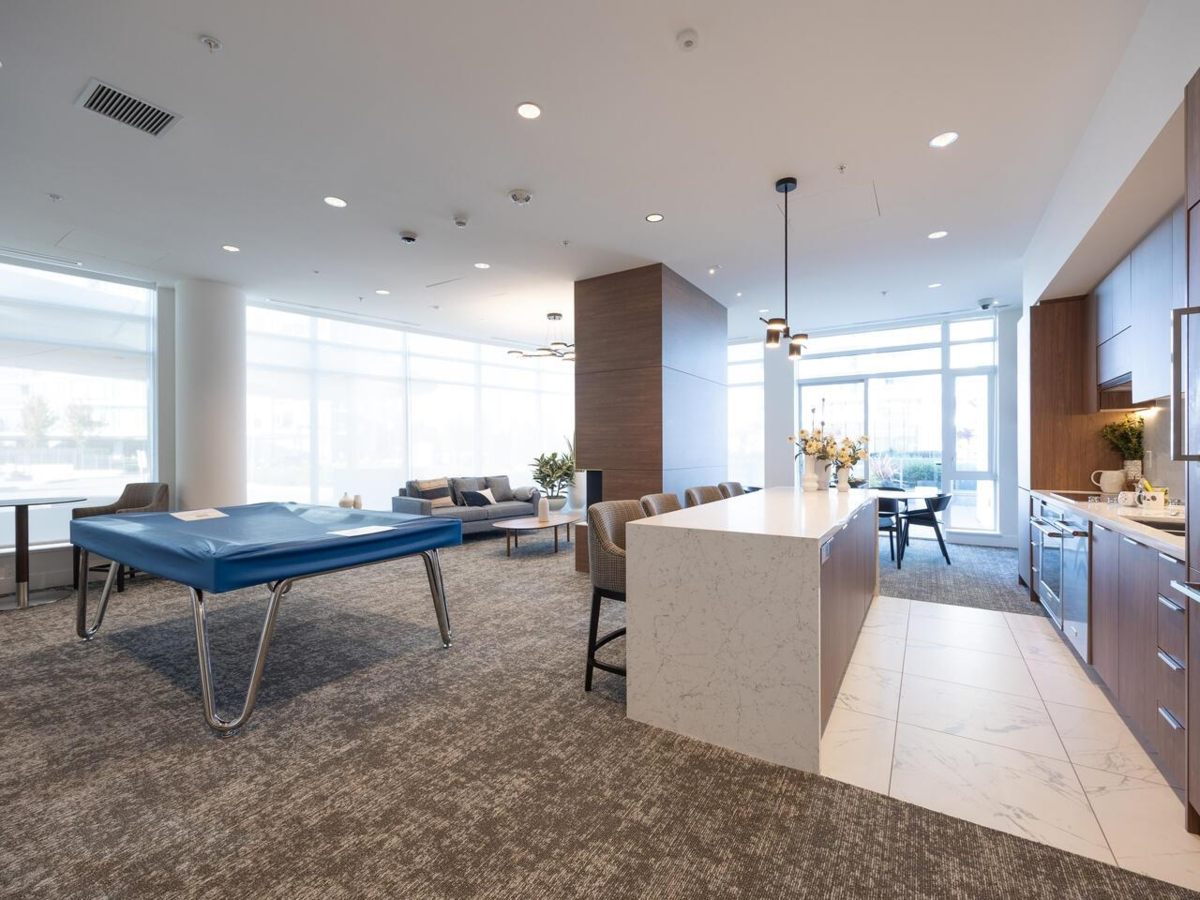 Top floor! This NE-facing unit features 13ft high ceilings in the living room with expansive windows, a covered balcony and a functional floorplan. Soft LED lighting, USB outlets and prewired high speed internet provides for seamless work/play at home. The primary bedroom features a walk-in closet and an ensuite with a walk-in shower. Packages? There's a concierge and smart lockers so you don't have to wait. Other shared amenities include EV charging for you and visitors, guest suites, bike rooms, car wash areas, fitness centre and a lounge with kitchenette - most with wifi access. A future 5 acre park and commercial spaces are planned at Southgate City -ask for details. Walking distance to Edmonds skytrain stn, Rosemary Brown Rec Centre and schools. OH Nov. 30 1-3pm