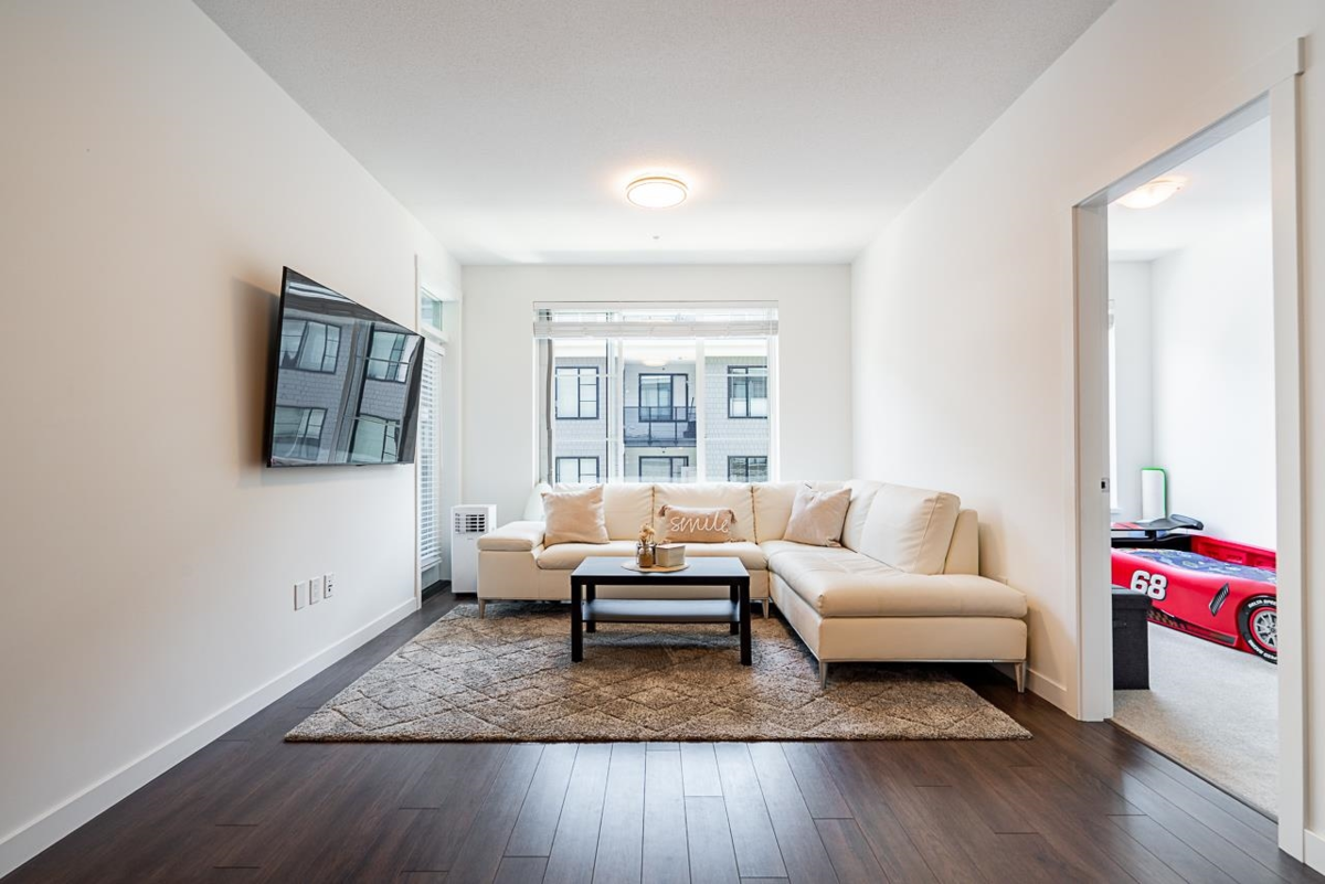 Welcome to Fleetwood Village by Dawson + Sawyer! This well-designed 3 bed, 2 bath home on the quiet 4th floor features a bright open layout with high ceilings, large windows, stainless steel appliances, quartz countertops, shaker cabinets, and in-suite laundry. Includes 1 parking stall and 1 storage locker. Enjoy 36,000+ sq. ft. of resident-only amenities: gym, yoga room, games/party room, BBQ area, dog wash station, playground, and a daycare. Steps to shopping, parks, schools, dining, and the upcoming SkyTrain Fleetwood Station. Still under 2/5/10 New Home Warranty. A great opportunity for families, investors, or first-time buyers. Located in one of Surrey’s most walkable, connected, and fast-growing neighbourhoods.