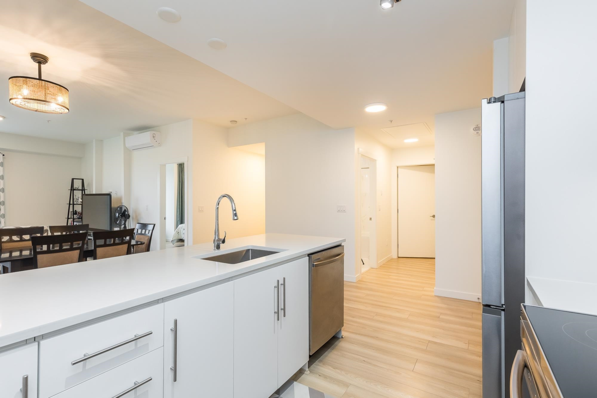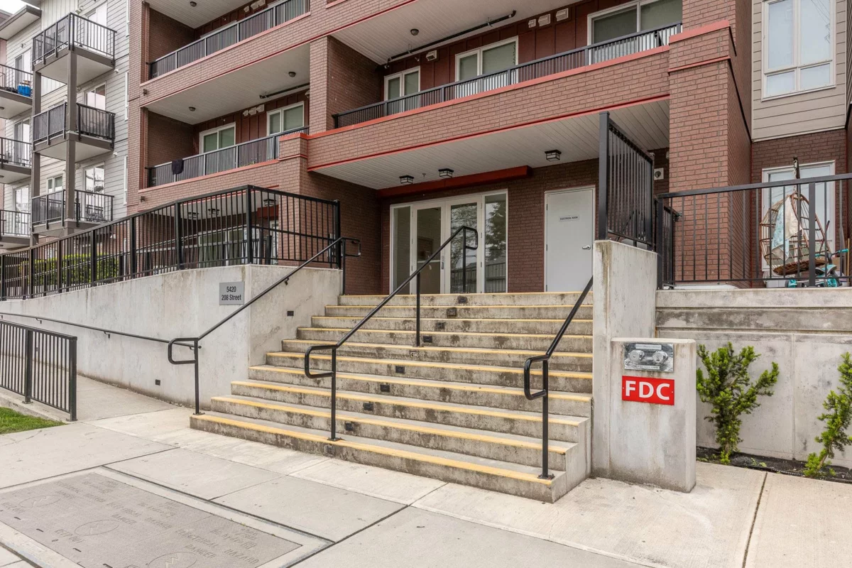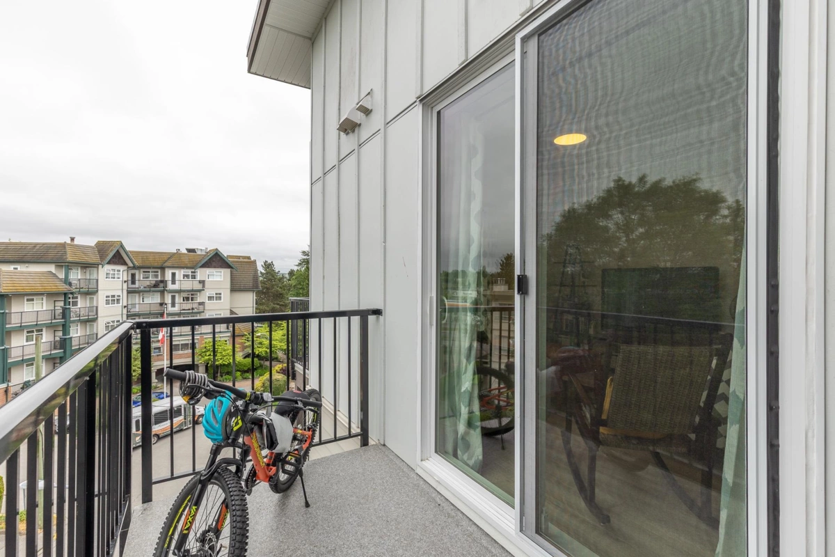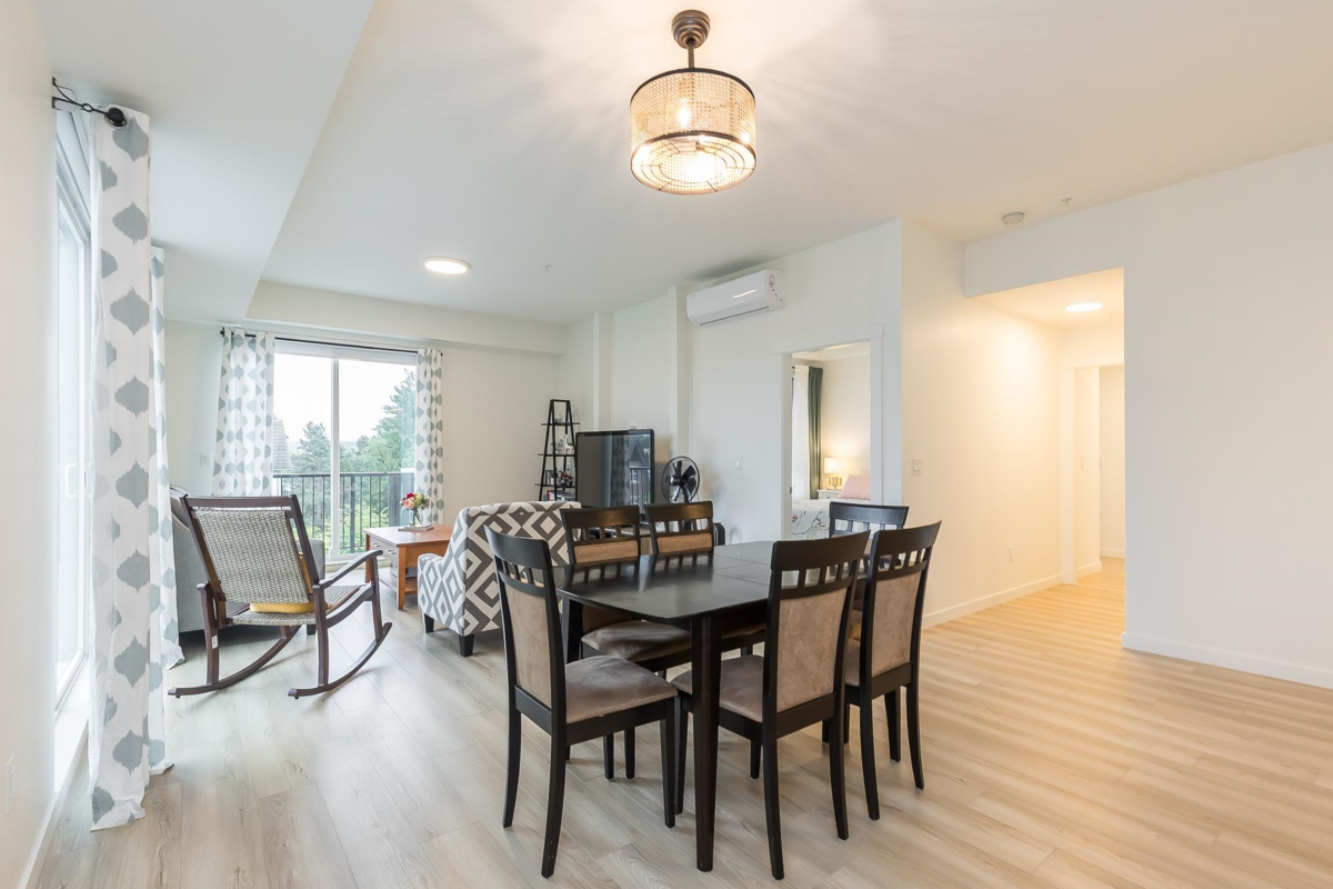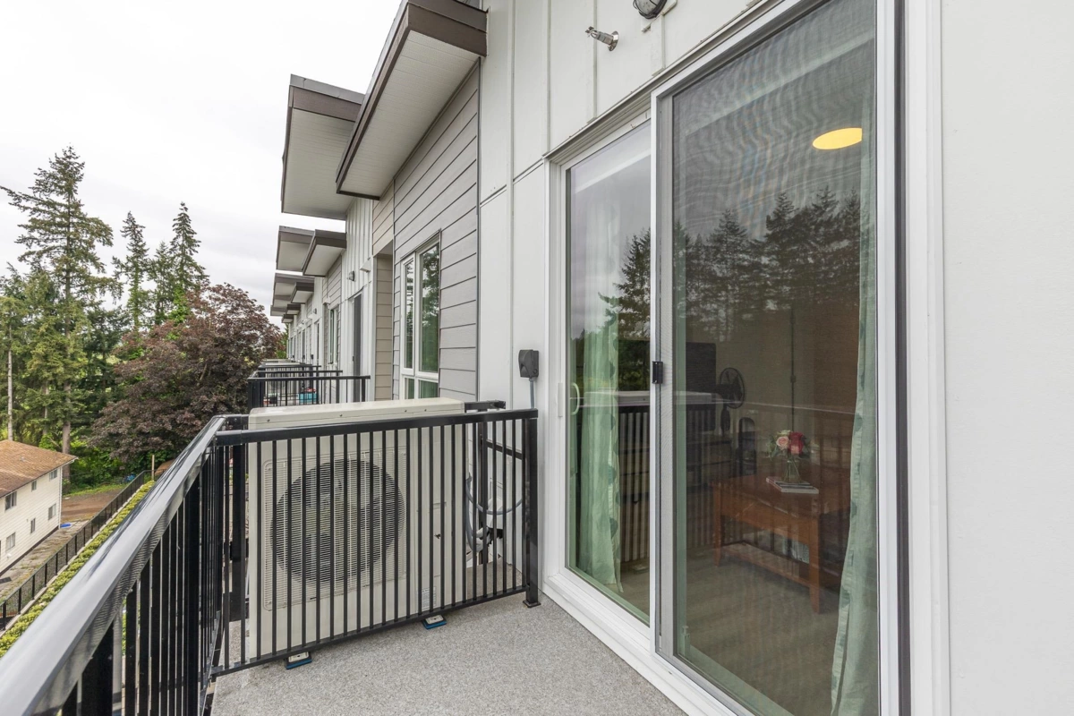 Penthouse corner unit at Nicomekl Garden! This 2 bed + den, 2 bath home offers mountain views, 3 patios, and a bright open layout with 9' ceilings. Enjoy stainless steel appliances, A/C, tons of counter space, and in-suite laundry. Only 40 units in this 4-storey boutique building. Pets allowed w/restrictions. Amenities include gym, playground, 1 locker, and 2 covered parking. Walk to parks, shops, leisure center, and the future SkyTrain. Fantastic walkability in the heart of Langley!