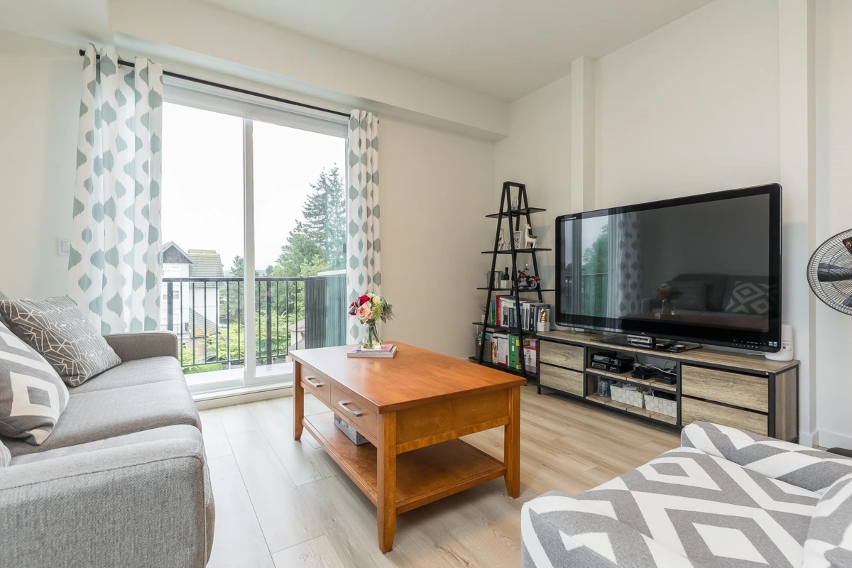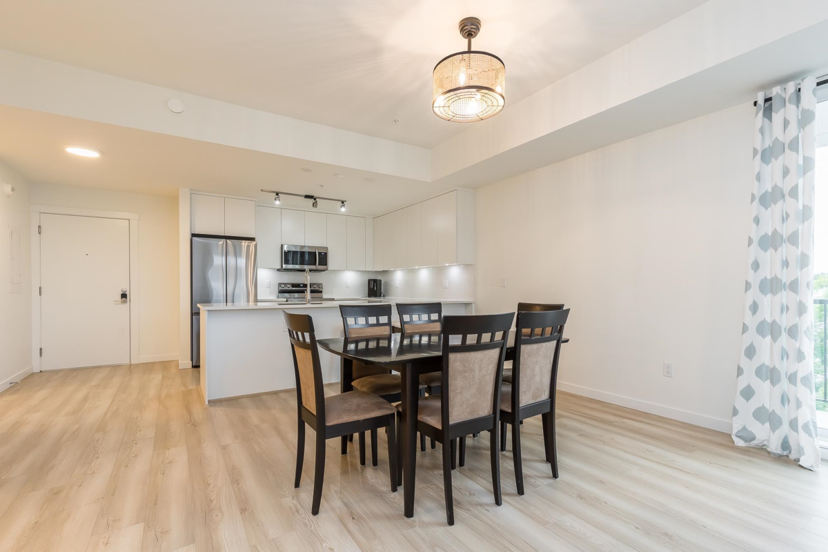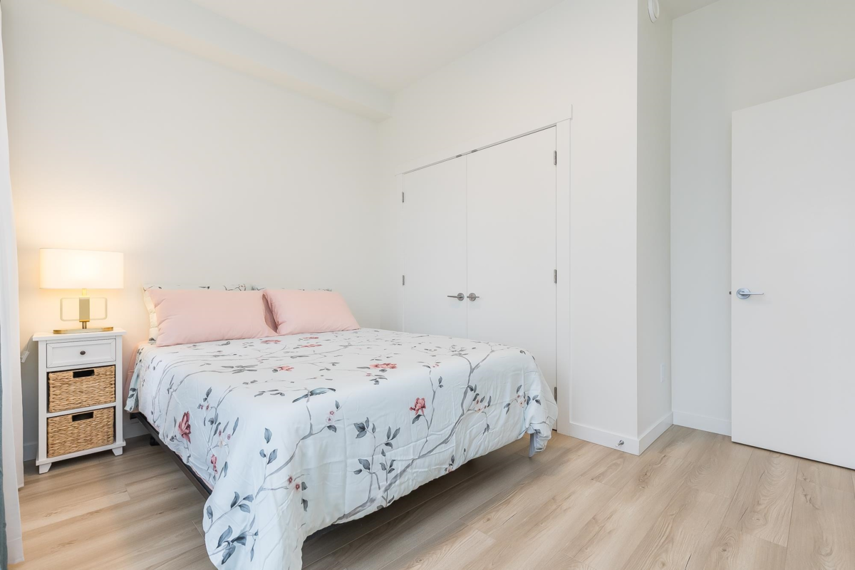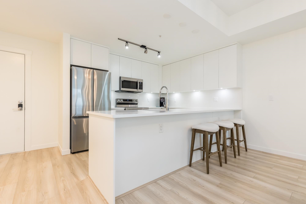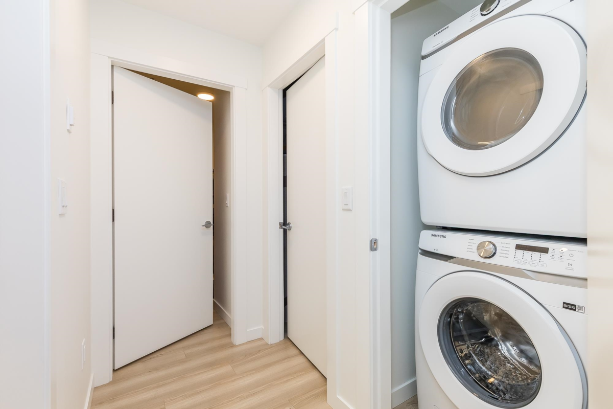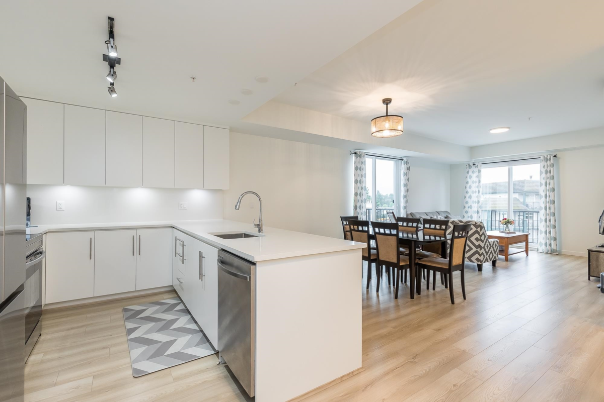 Penthouse corner unit at Nicomekl Garden! This 2 bed + den, 2 bath home offers mountain views, 3 patios, and a bright open layout with 9' ceilings. Enjoy stainless steel appliances, A/C, tons of counter space, and in-suite laundry. Only 40 units in this 4-storey boutique building. Pets allowed w/restrictions. Amenities include gym, playground, 1 locker, and 2 covered parking. Walk to parks, shops, leisure center, and the future SkyTrain. Fantastic walkability in the heart of Langley!