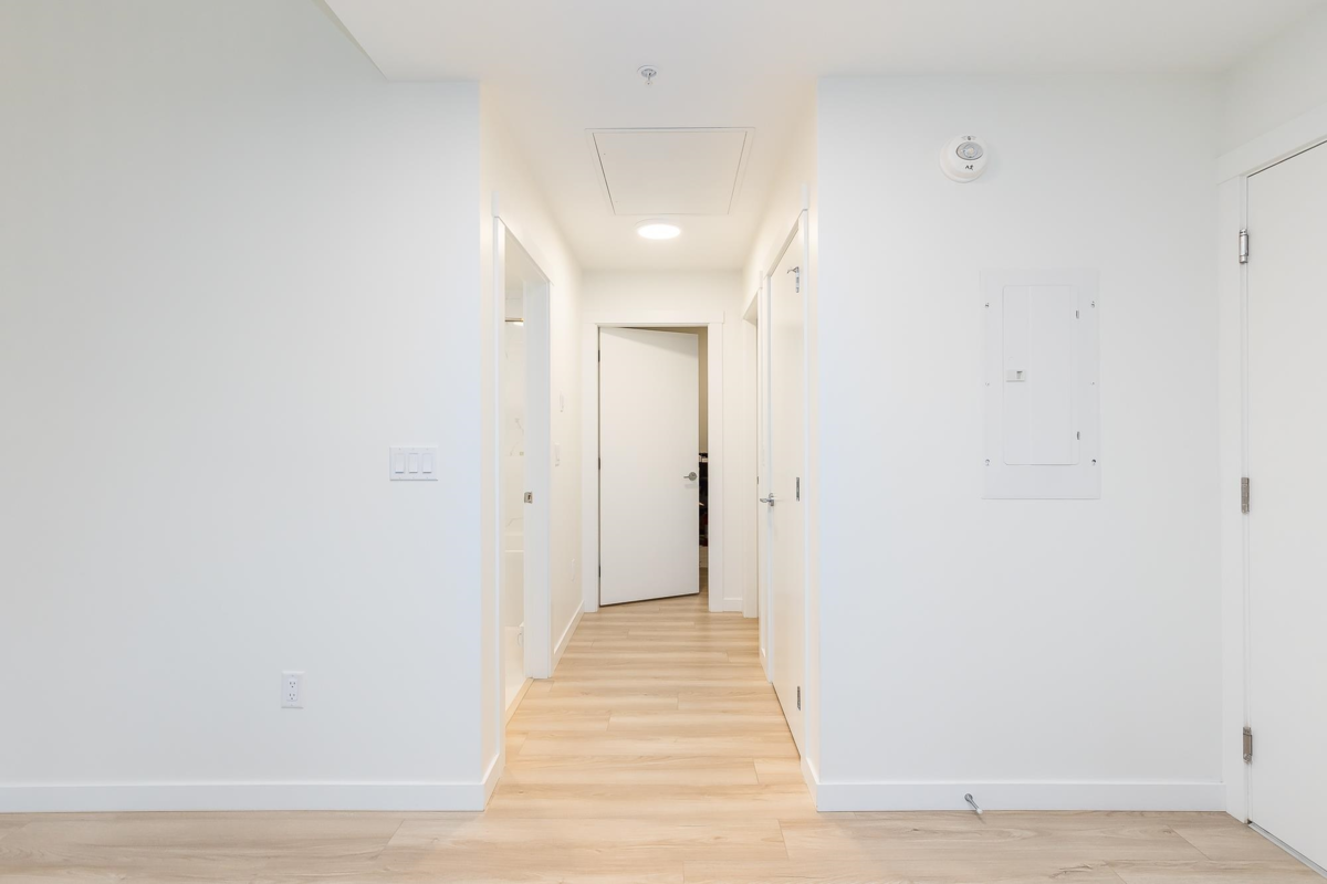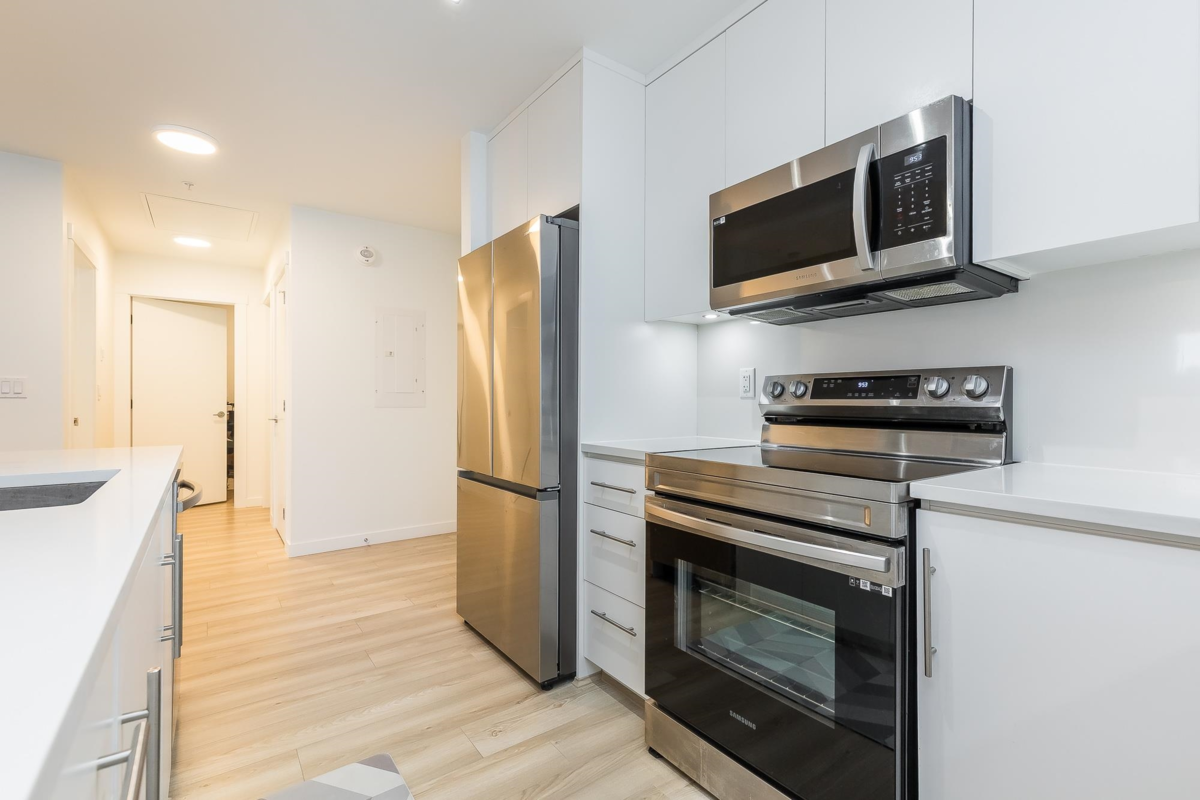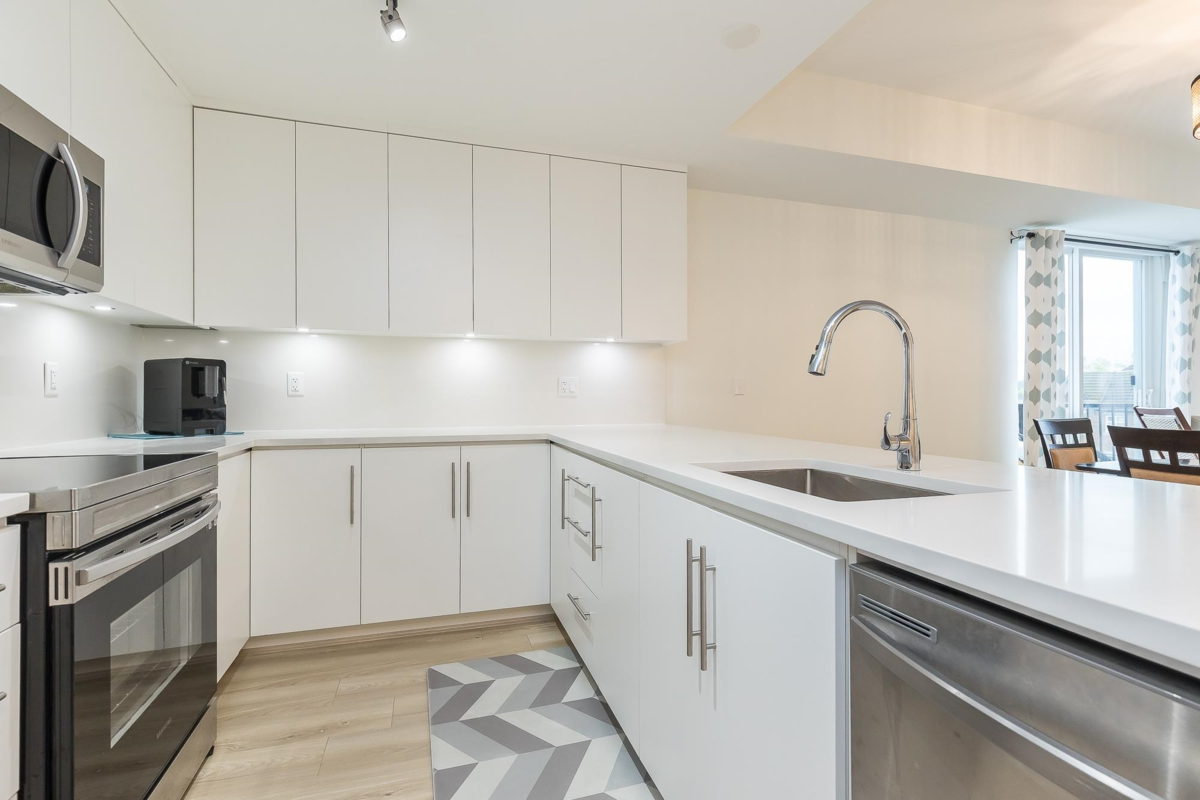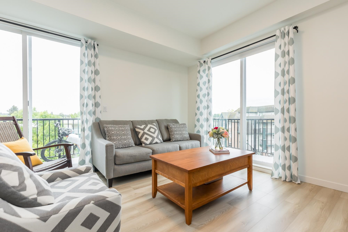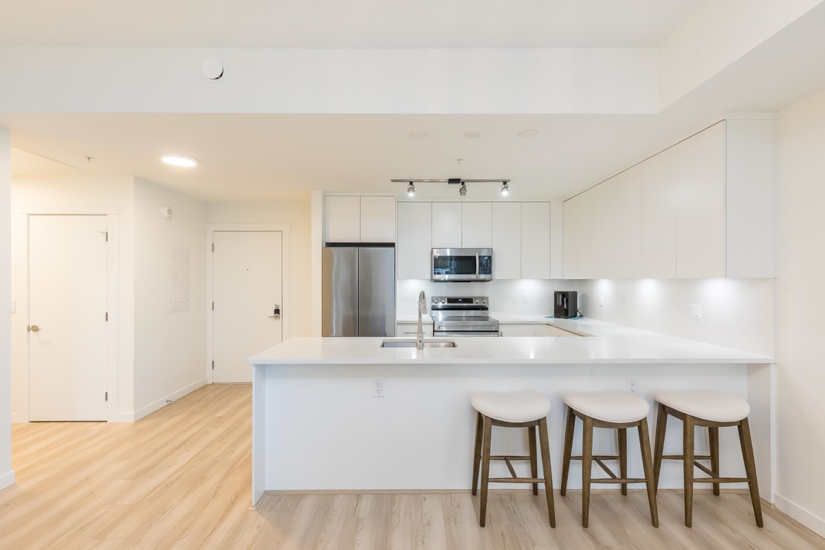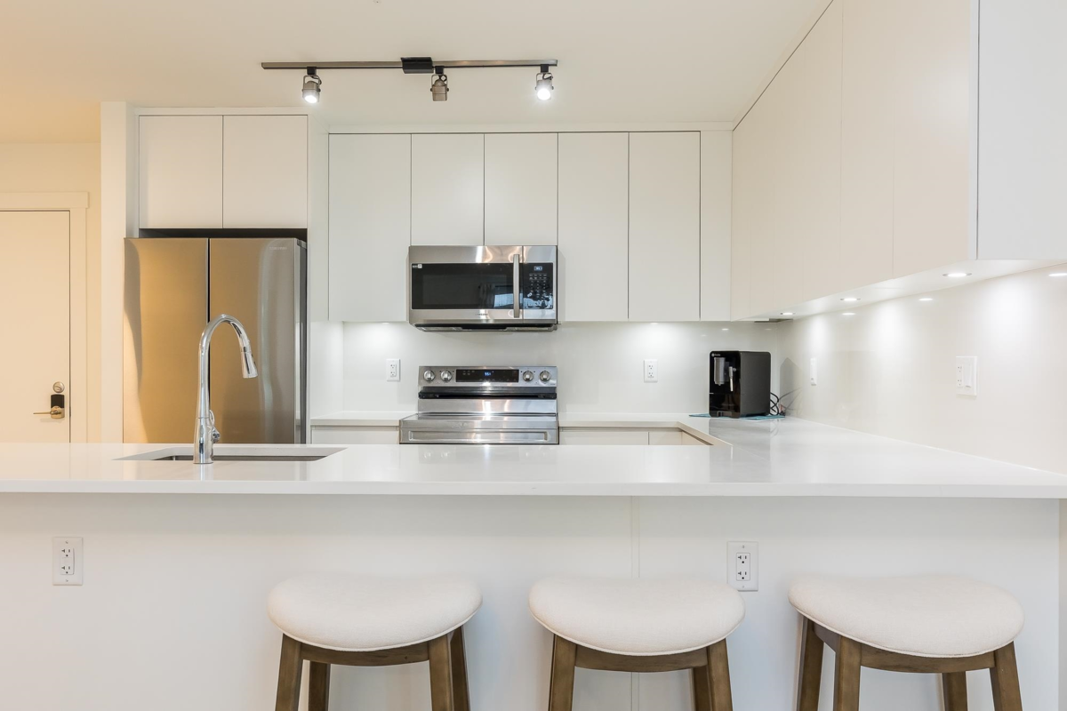 Penthouse corner unit at Nicomekl Garden! This 2 bed + den, 2 bath home offers mountain views, 3 patios, and a bright open layout with 9' ceilings. Enjoy stainless steel appliances, A/C, tons of counter space, and in-suite laundry. Only 40 units in this 4-storey boutique building. Pets allowed w/restrictions. Amenities include gym, playground, 1 locker, and 2 covered parking. Walk to parks, shops, leisure center, and the future SkyTrain. Fantastic walkability in the heart of Langley!