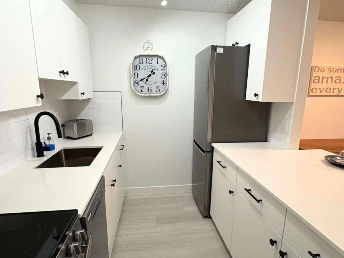 Completely renovated & move-in ready! Welcome to Regency Park Towers, where style meets tranquility. This west-facing 1-bed, 1-bath condo offers 695 sq ft of modern comfort in a secure, well-managed building. Enjoy an open-concept kitchen with custom cabinetry, sleek countertops, new appliances, and a cozy breakfast nook. Upgrades include new laminate & waterproof vinyl flooring, zebra blinds, fresh paint, and dimmable lighting throughout. Relax in the spa-inspired bath with matte black fixtures & chic finishes. Amenities feature a heated outdoor pool, sauna, hot tub, gym & full-time caretaker. Set in a peaceful yet walkable neighborhood—just steps to Richmond Centre, Hospital, Minoru Park, & SkyTrain. Perfect for investors or first-time buyers!