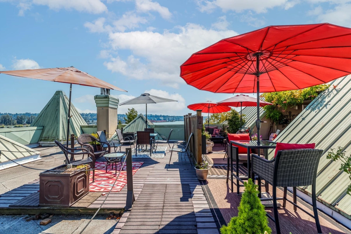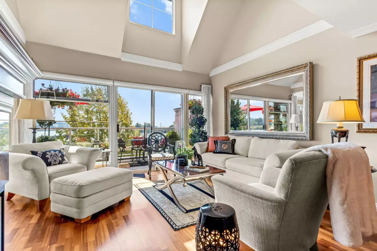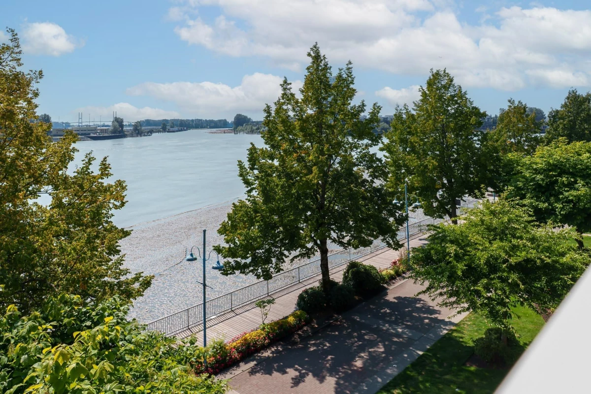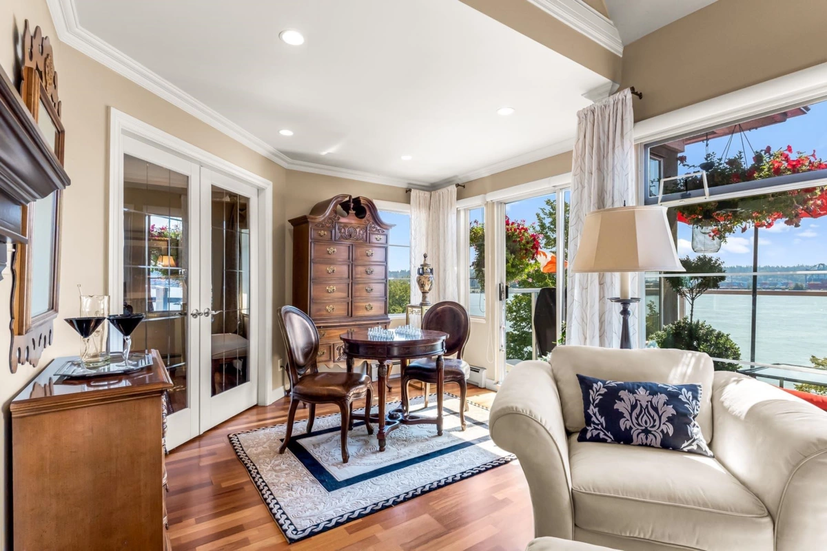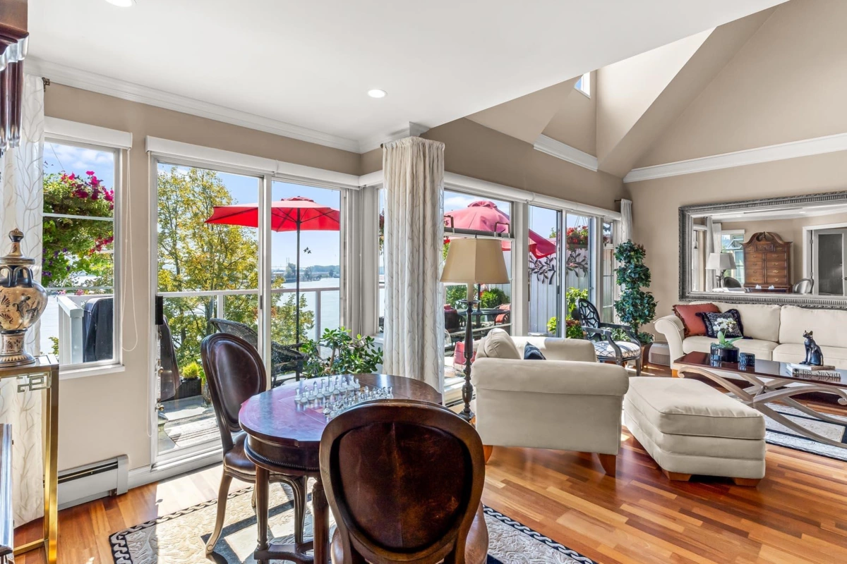 Waterfront living at its best! This fully remodelled 2 level, 1400+ sq ft home offers 2 bedrooms plus a den and an upper level family room. Features include Brazilian cherry hardwood floors on the main, a custom kitchen, gas fireplace in the living room (included in strata fees) and a primary bedroom with walk in closet and five piece ensuite. Enjoy fabulous water views from a large balcony off the living room or from the rooftop deck. 2 pets allowed. 1 parking stall and visitor parking. Common room with fitness equipment, pool table and sauna. Steps to cafes, restaurants, shops, River Market, Pier Park, Skytrain & downtown New West.