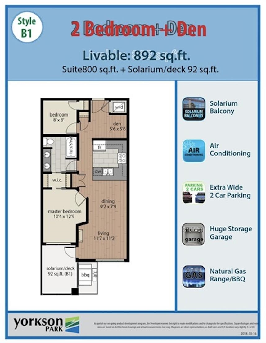 Beautifully maintained 2 Bedroom + Flex + Solarium home in sought-after Yorkson Park. The stylish kitchen offers premium appliances, gas cooktop, and ample counter space for effortless meal prep. Bedrooms are thoughtfully separated and connected by a walk-through dressing area leading to a bath with heated floors and double sinks. The bright solarium with fireplace functions as an all-season extension of your living space, and the additional balcony with BBQ hook-up is perfect for outdoor dining. Home includes A/C, two parking stalls, and a large private storage room. Residents enjoy top-tier amenities: fitness centre, lounge, playground, water features, indoor kid’s room, and a summer deck with firepit. Conveniently close to parks, cafés, Carvolth Exchange, and Hwy 1