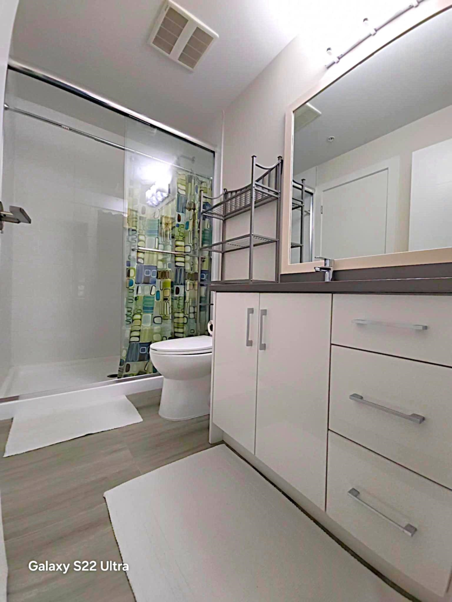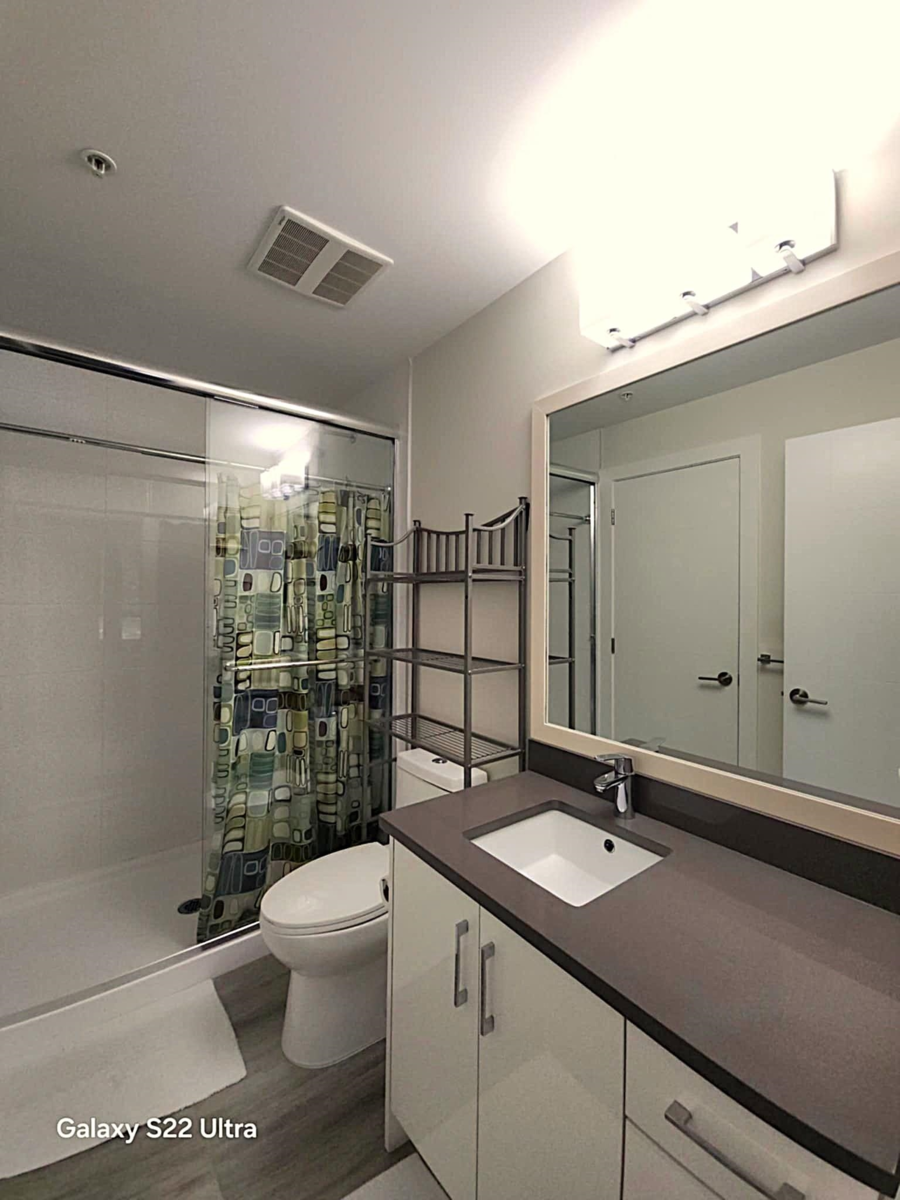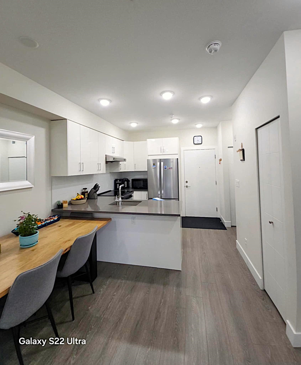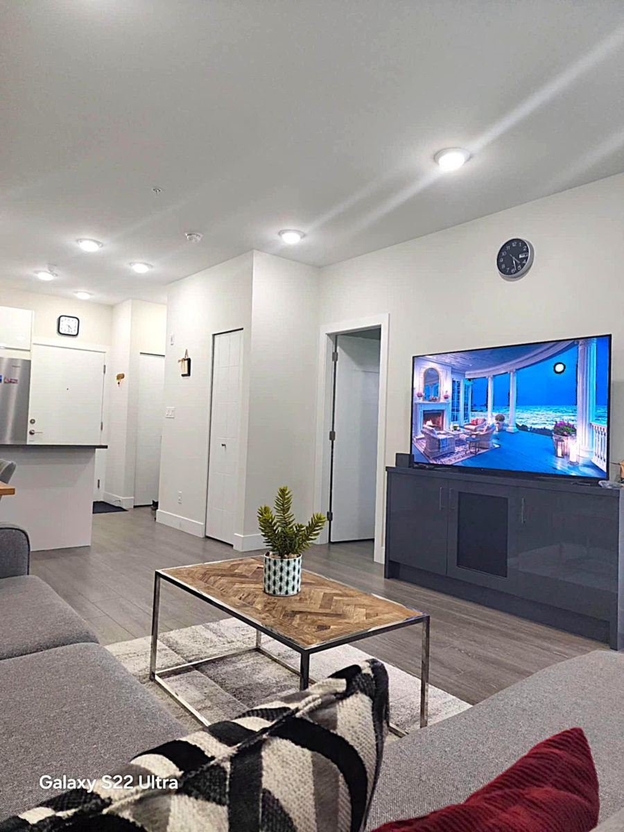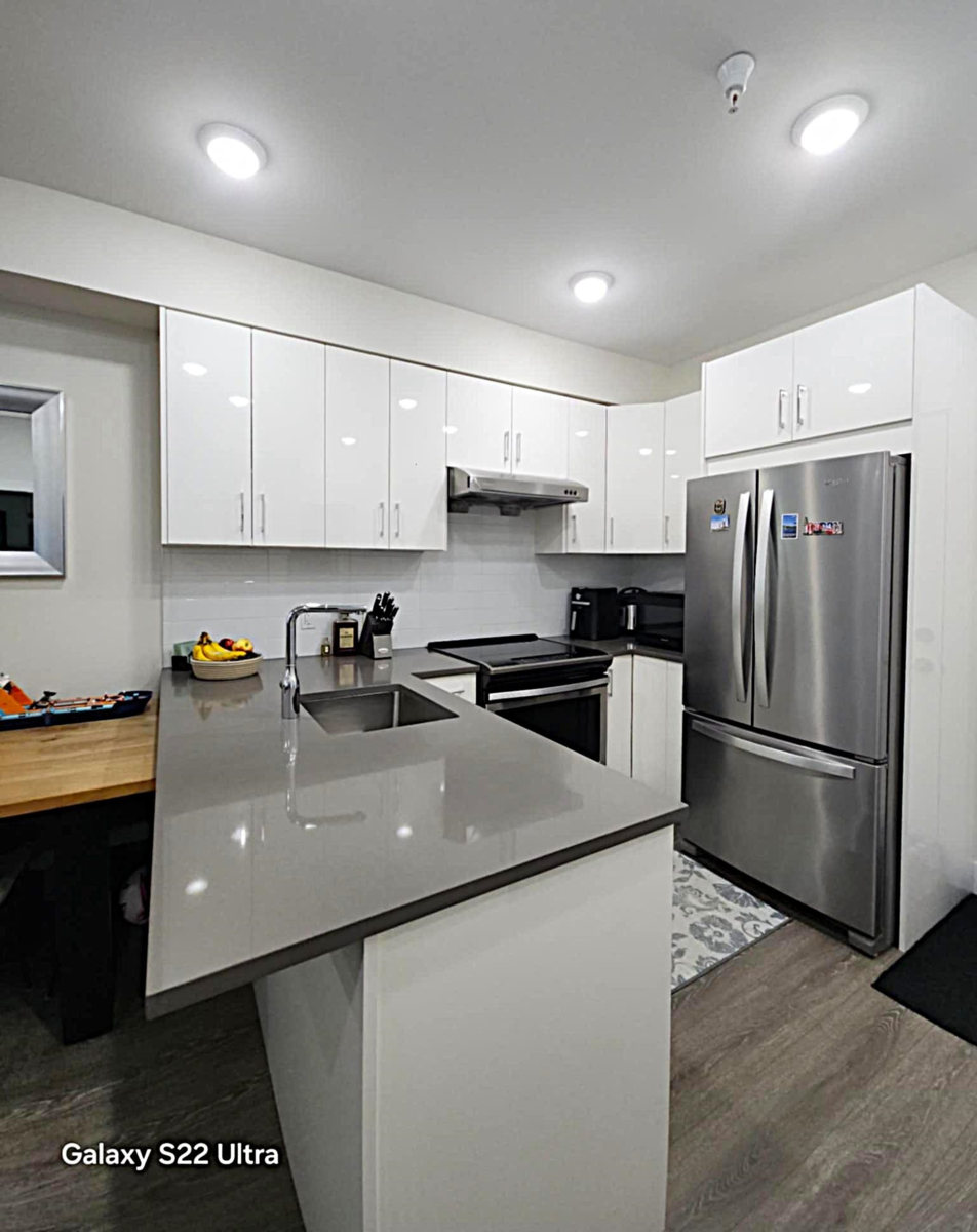 Welcome to "The Guildford". A fully Rain Screened building! This thoughtfully designed home features 2 full bathrooms, 2 parking stalls (located next to the elevator), 2 Bike storage locker, and a bright, open layout. Interior highlights include: Full stainless steel appliance package; High-gloss soft-close cabinetry; Quartz countertops with under-mount square sinks; High-efficiency washer & dryer; Oversized porcelain tiles in bathrooms; Deep soaker tub with modern glass shower doors. Backed by 2-5-10 New Home Warranty for peace of mind. Just steps from Guildford Town Centre, T&T Supermarket, Landmark Cinemas, transit, schools, parks, and more! Don't miss this opportunity to own in one of Surrey's most convenient and vibrant communities. Open House: Nov. 29 & 30 ( Sat. & Su.) from 2-4 PM.