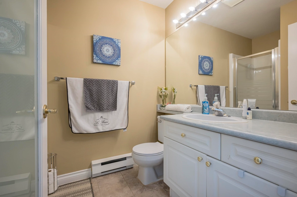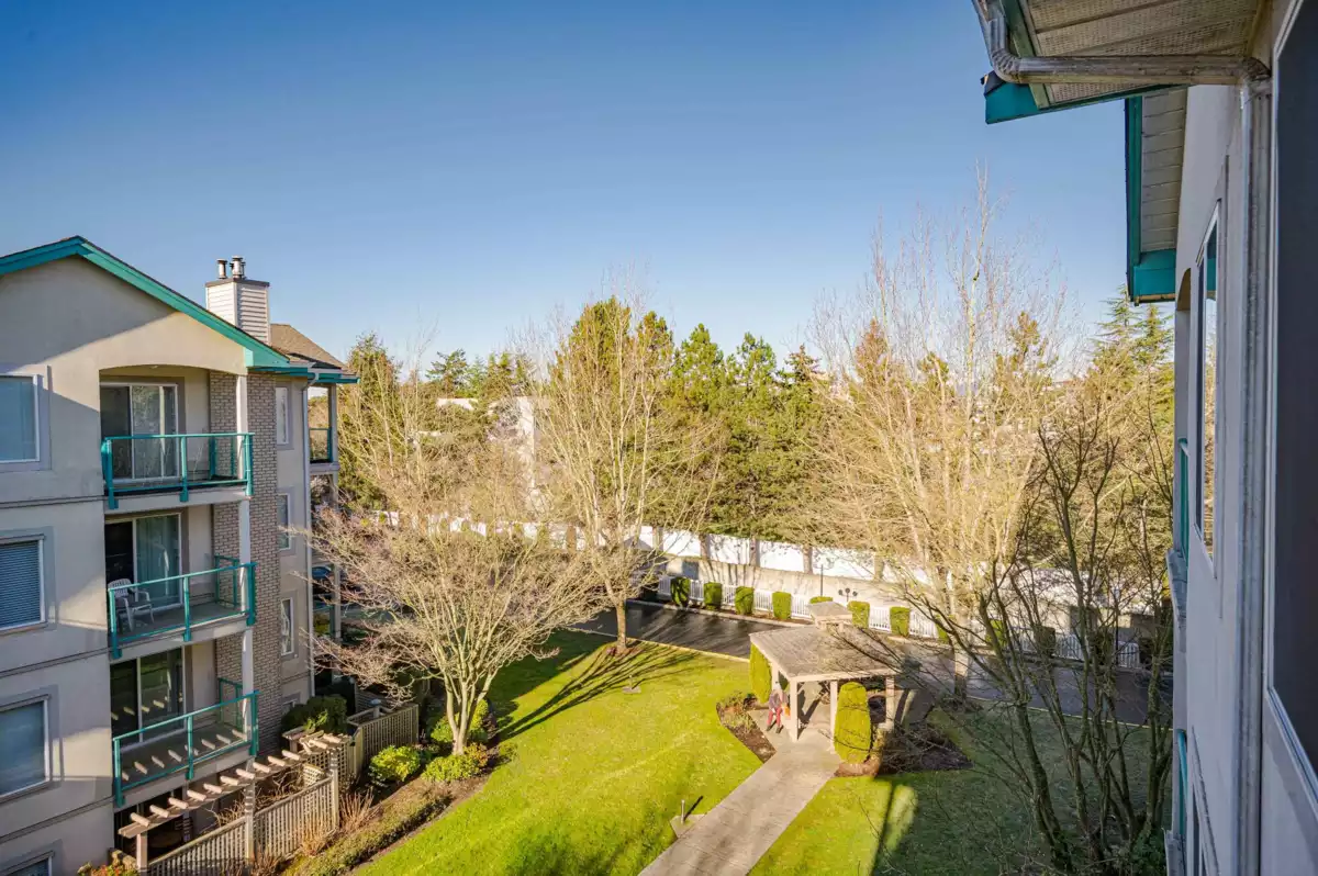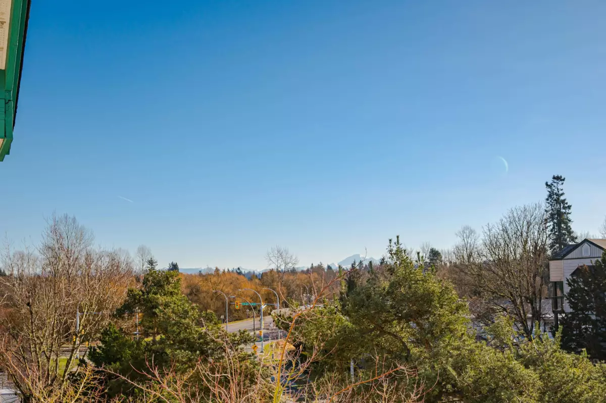 Beautifully kept bright & spacious Top Floor South West Corner w/2 bedrms, 2 bathrms & 2 balconies. In desirable Countryside Estates. 1266 sf of living space w/extra large rooms & windows. Features living room w/gas fireplace & sliders to South balcony w/view of Mt Baker. Primary bedrm boasts his & hers closets, deep soaker tub ensuite w/shower & private West balcony, perfect retreat for morning coffee or evening relaxation. In suite laundry & storage plus a large storage locker conveniently located on the same floor. Secured underground parking. 2 pets allowed. Steps from parks, miles of walking & biking nature trails, Timm's Community Centre & downtown Langley's vibrant shopping & dining scene. Don’t miss this rare opportunity to own a spacious, top floor corner unit in a prime location.