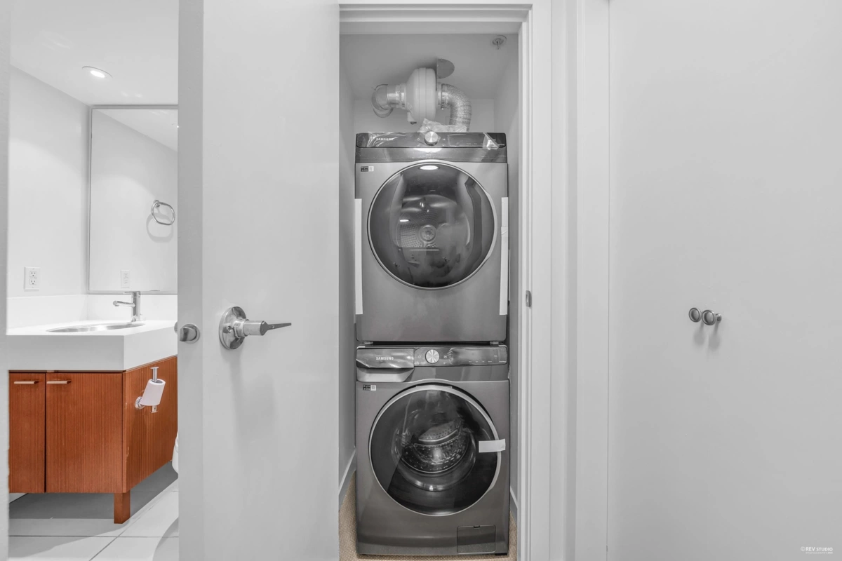 Uno stands out as one of the most desirable concrete buildings in the Main Street/ Mt. Pleasant neighbourhood. Excellent layout with one bedroom, Walk in Closet, large den, and bonus storage room. Views of the city and mountains. Interior features include translucent sliding walls, gas range, Corian counters, roller blinds, in-suite laundry, recent hardwood floors & brand new appliances. Private balcony with views of the city and North Shore mountains. Located in the absolute heart of the Mt. Pleasant/ Main Street neighbourhood. Pets and rentals allowed. 1 secure parking and locker plus in-suite storage room. Open House: Sunday Nov 30, 2025 from 2:30Pm to 4pm
