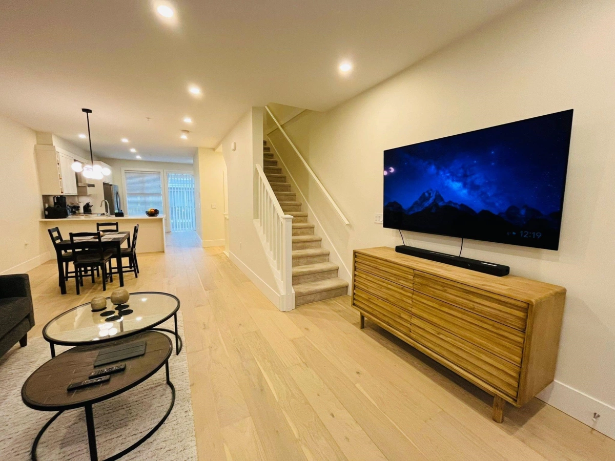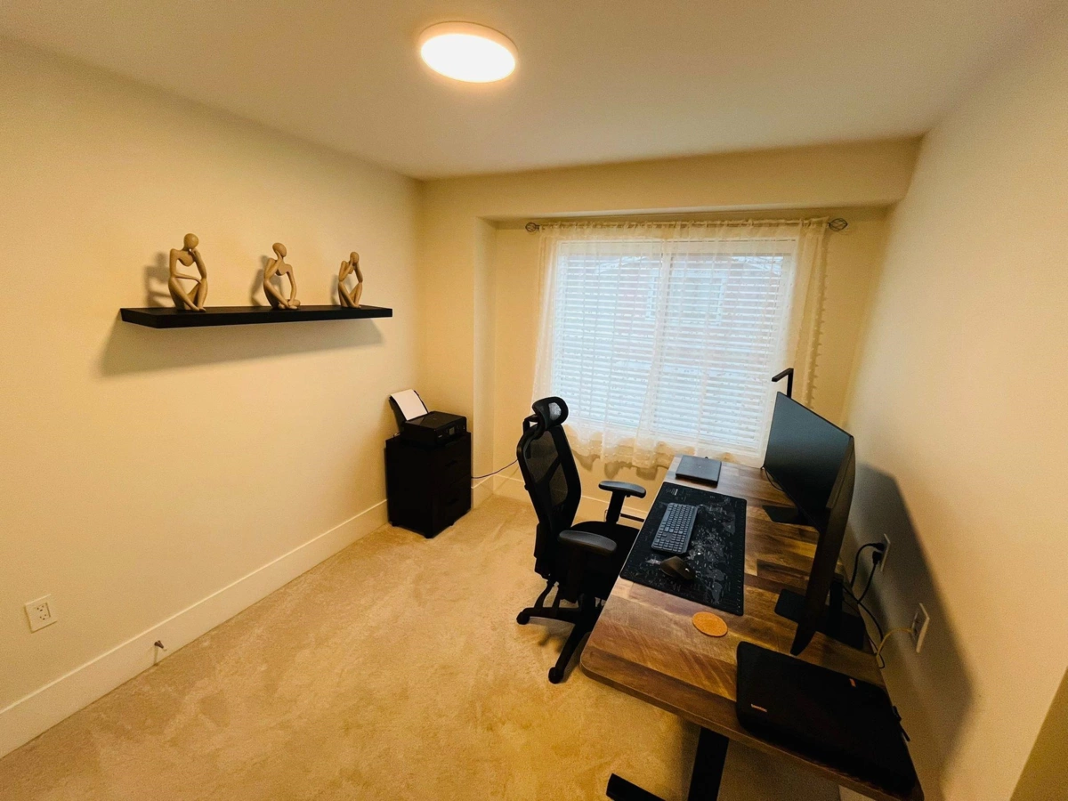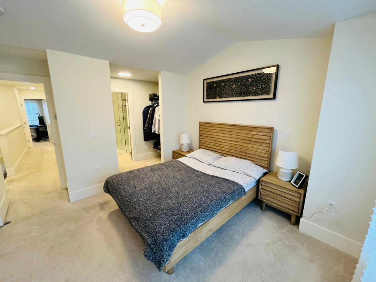 Welcome to this stunning 3-bedroom, 2.5-bath townhouse in the sought-after Rock Ridge community. The perfect blend of comfort, style, and modern living. This bright, spacious home features brand-new engineered hardwood floors on the main level and fresh paint throughout, including the garage, giving it a clean, move-in-ready feel. The open-concept living and dining area is ideal for entertaining, with large windows that fill the space with natural light. Enjoy a double-length garage with room for parking, storage, or a home gym. Modern upgrades include LED lighting, smart thermostats, and smart locks. The strata has approved A/C installation for year-round comfort. Pet-friendly and located near parks, trails, schools, and amenities — this home has it all! Open House Nov. 29 2-4pm!