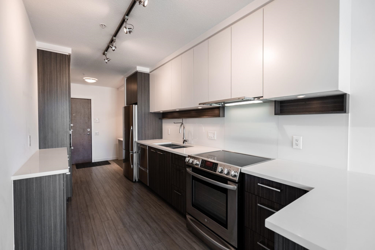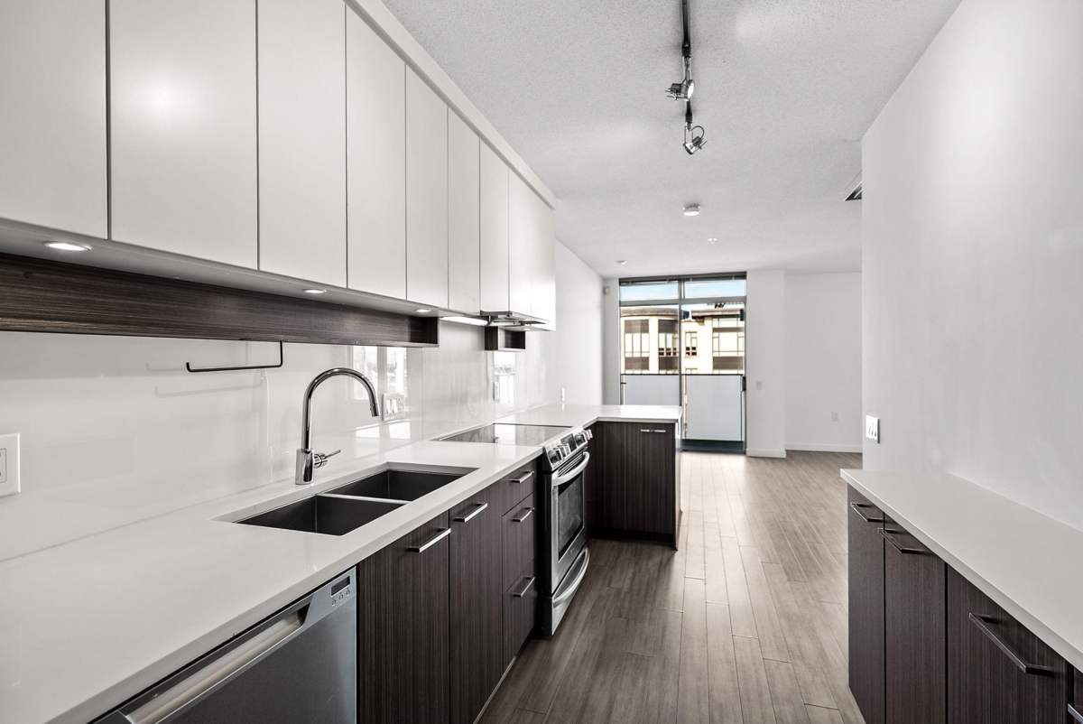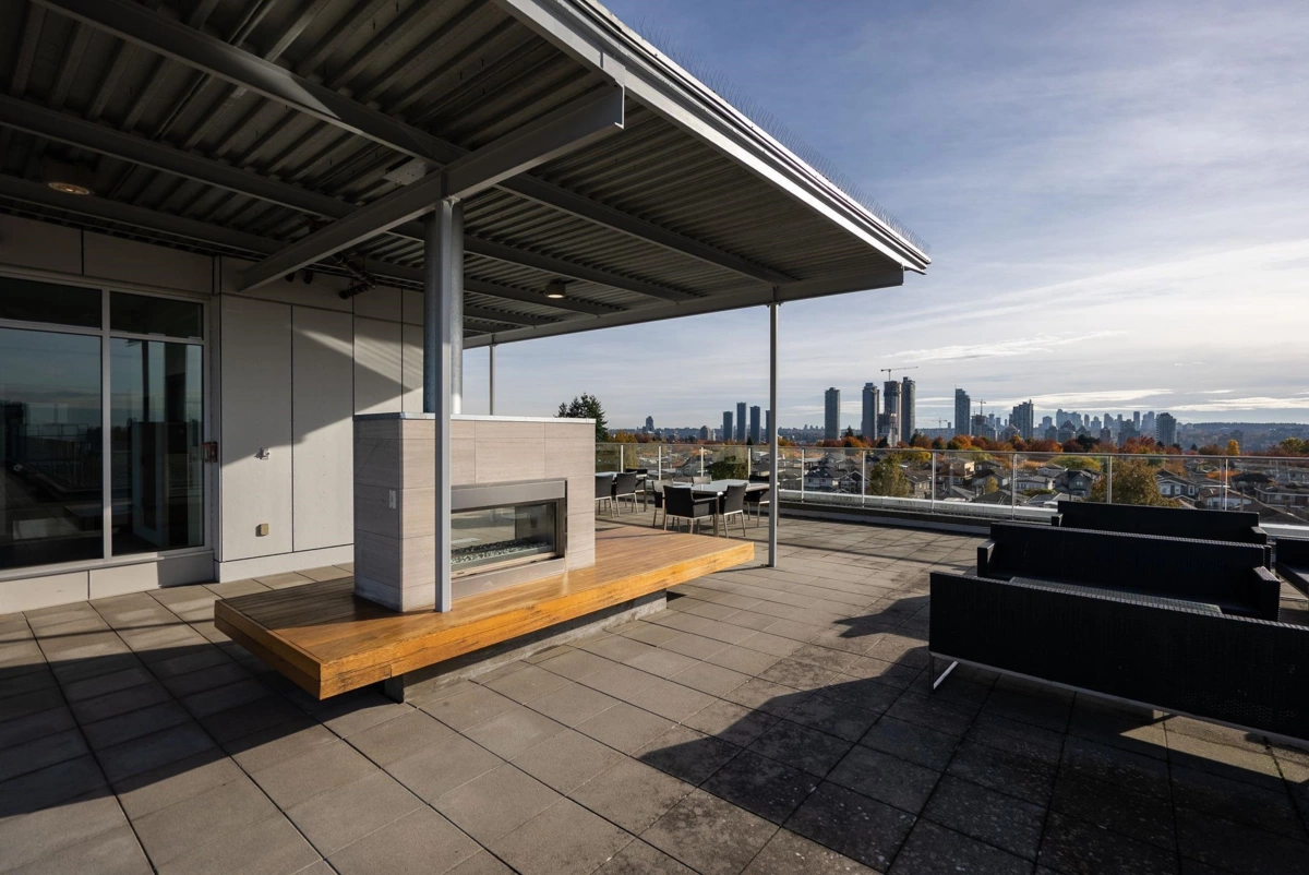 STUNNING MOUNTAIN VIEWS from this CONCRETE home at Union by Mosaic in Burnaby’s coveted ‘The Heights’. Perfectly designed BRIGHT & SPACIOUS 1 bed home with oversized windows, H/W flooring and private balcony. Open chef’s kitchen with sleek two-tone cabinetry, quartz counters, dual sink, full pantry/sideboard storage and S/S appliances. Spacious living/dining area flows seamlessly for entertaining. SPA-LIKE bath with DEEP soaker tub and sleek modern finishes. Radiant in-floor heat and hot water included in strata fees. BOUTIQUE building with rooftop deck featuring spectacular 360-degree views, double-sided fireplace and lounge area. Prime location just steps to the shops, cafes & groceries of The Heights. Pets & rentals OK. Parking & storage included. Open Sat, Nov 29, 2-4PM. Hurry!