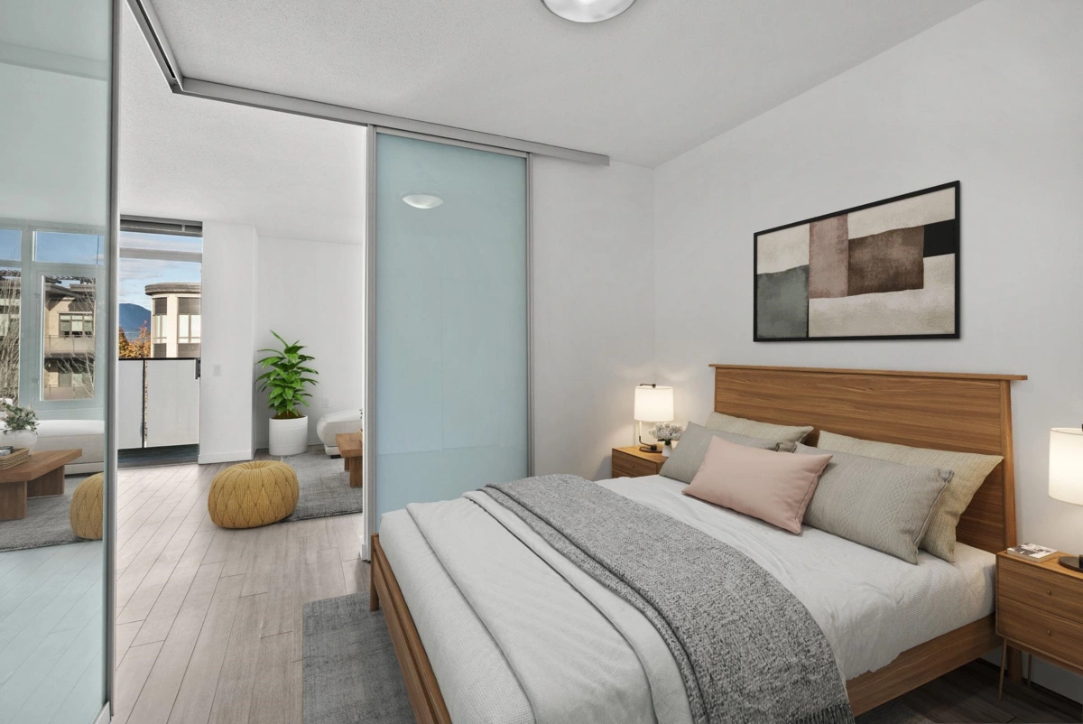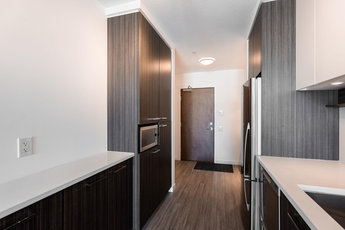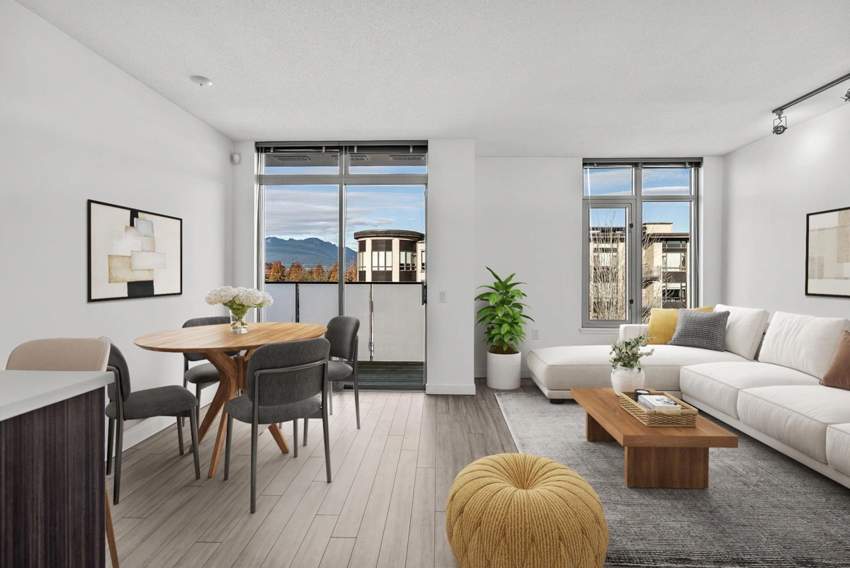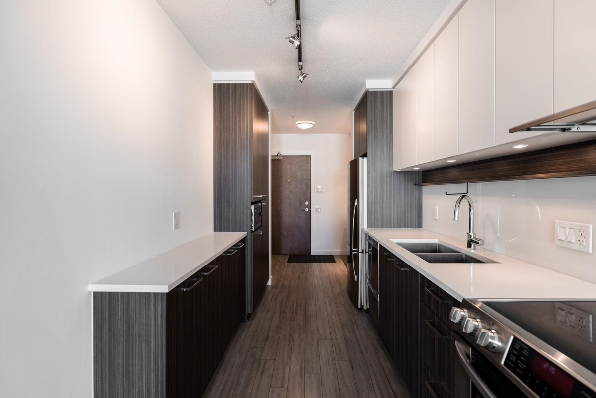 STUNNING MOUNTAIN VIEWS from this CONCRETE home at Union by Mosaic in Burnaby’s coveted ‘The Heights’. Perfectly designed BRIGHT & SPACIOUS 1 bed home with oversized windows, H/W flooring and private balcony. Open chef’s kitchen with sleek two-tone cabinetry, quartz counters, dual sink, full pantry/sideboard storage and S/S appliances. Spacious living/dining area flows seamlessly for entertaining. SPA-LIKE bath with DEEP soaker tub and sleek modern finishes. Radiant in-floor heat and hot water included in strata fees. BOUTIQUE building with rooftop deck featuring spectacular 360-degree views, double-sided fireplace and lounge area. Prime location just steps to the shops, cafes & groceries of The Heights. Pets & rentals OK. Parking & storage included. Open Sat, Nov 29, 2-4PM. Hurry!