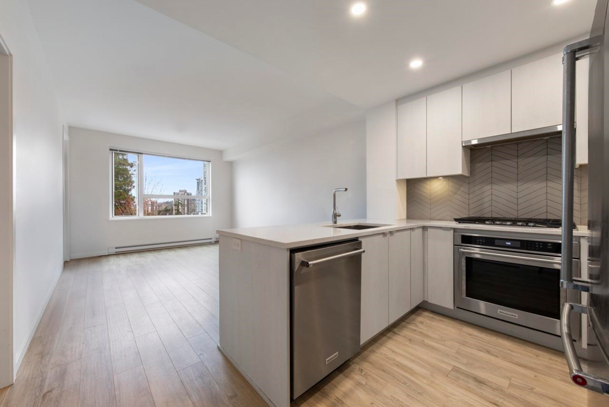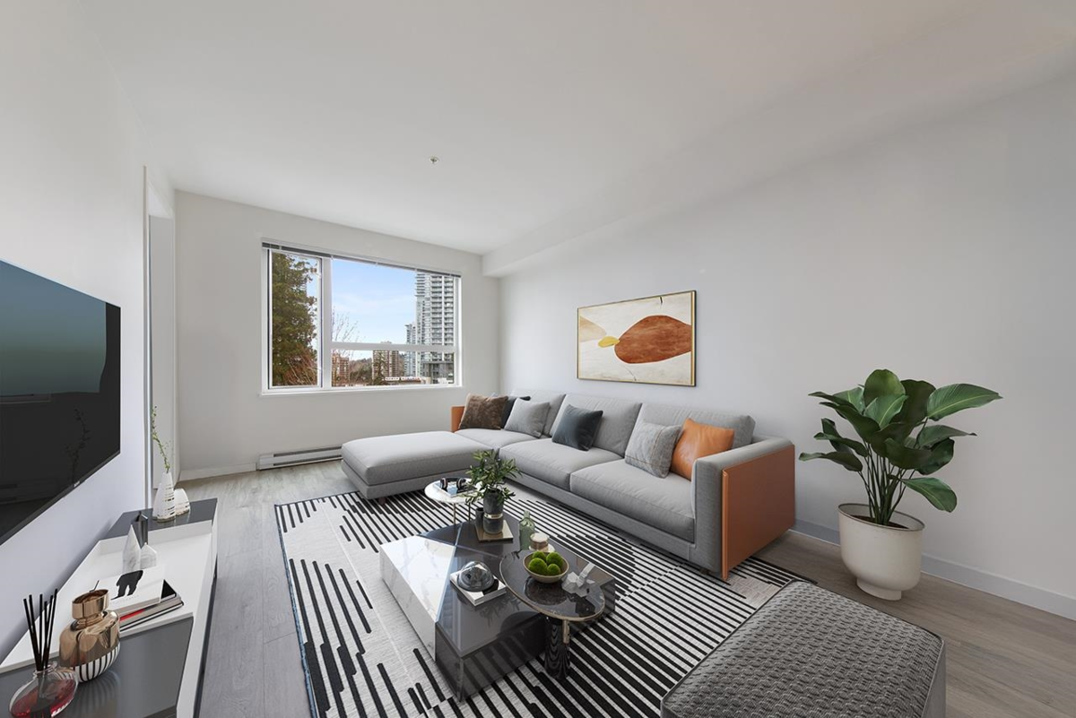 This bright & spacious 1 bedroom home features 9ft ceilings, an open concept layout, flowing through to a private west facing balcony, with great views of the city, trees & mountains. Stylish kitchen with full size stainless steel appliances, sleek quartz counters, under cabinet lighting, double sink, and durable laminate throughout. Perfect for investors or first time buyers, great month to month tenant willing to stay! This home is nestled on a quiet street, yet just a short walk to Evergreen skytrain, groceries, restaurants & cafes, parks, scenic trails & community centre, offering the best of convenience & tranquility! Great well maintained building, with fully equipped gym & meeting room, low maintenance fee and 1 parking & storage locker included! Open House Sun 1st June 2-3pm