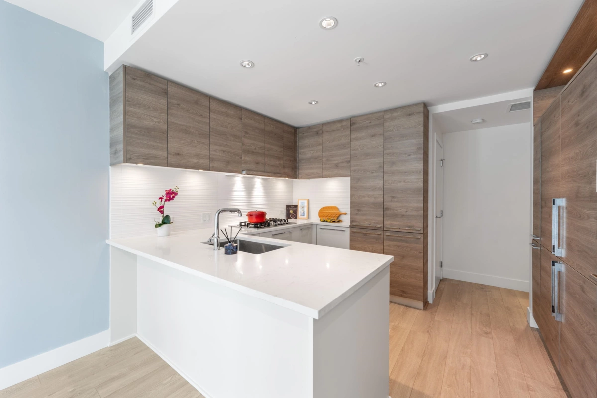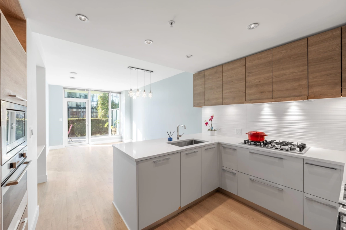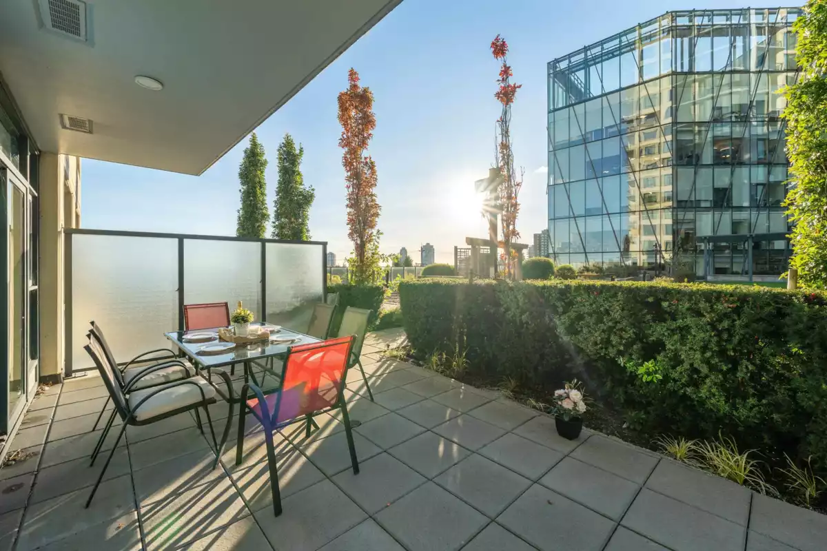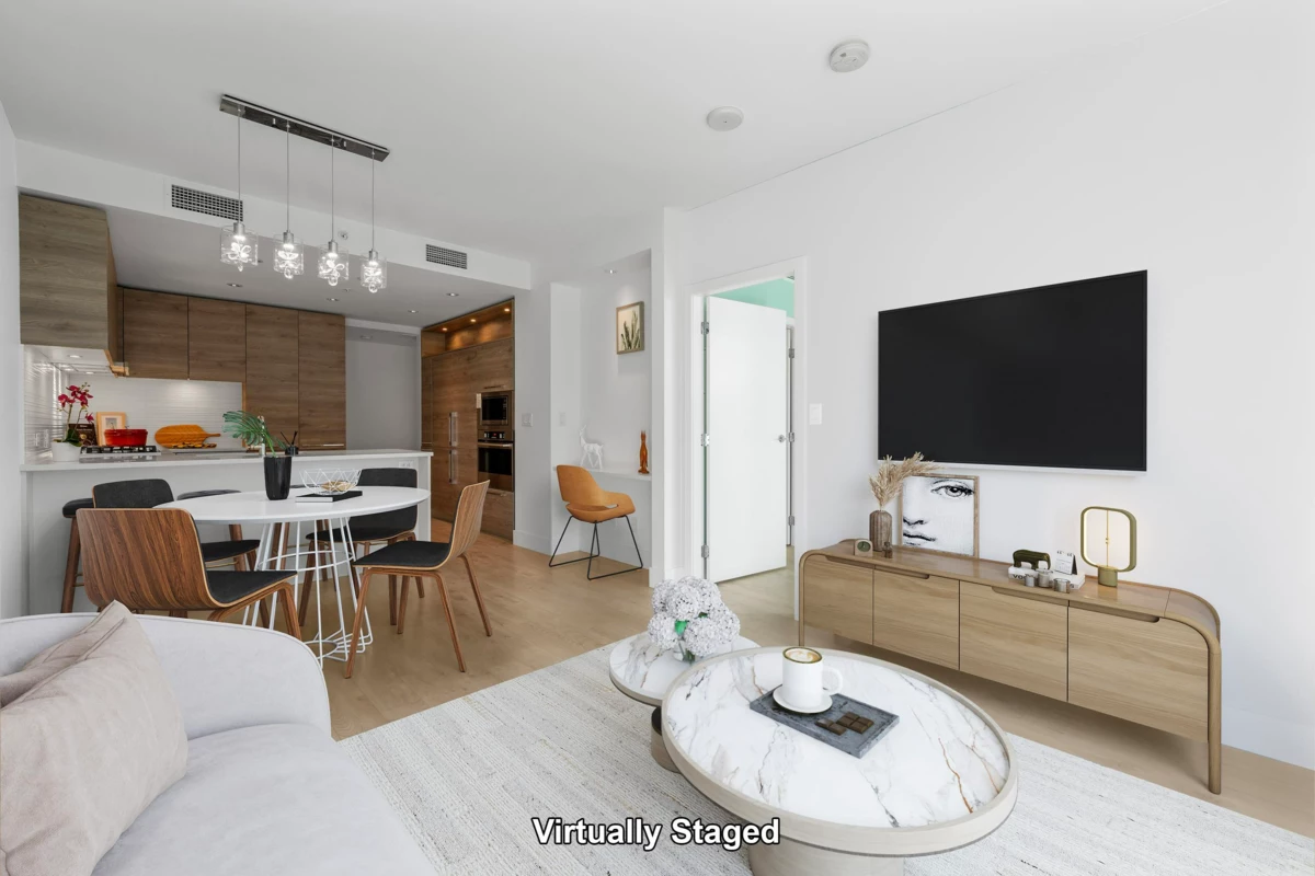 Welcome to Kings Crossing by Cressey. This stunning 1 Bed home stands out with a RARE 236sqft private patio that connects directly to the building’s private garden, resort-style amenities, and even offers stair access to PriceSmart Foods below. Perched on the 4th floor, this home enjoys superior sunlight and privacy compared to typical ground-level units, while still providing the same convenient direct access. Lovingly maintained by the original owner (never rented), it’s in pristine condition. The renowned Cressey Kitchen is a chef’s dream, featuring a double-door refrigerator, built-in wall oven, gas cooktop, quartz countertops, and smart organizers for ultimate functionality. With air conditioning, high ceilings, and expansive windows, this home blends modern comfort, elegant design.