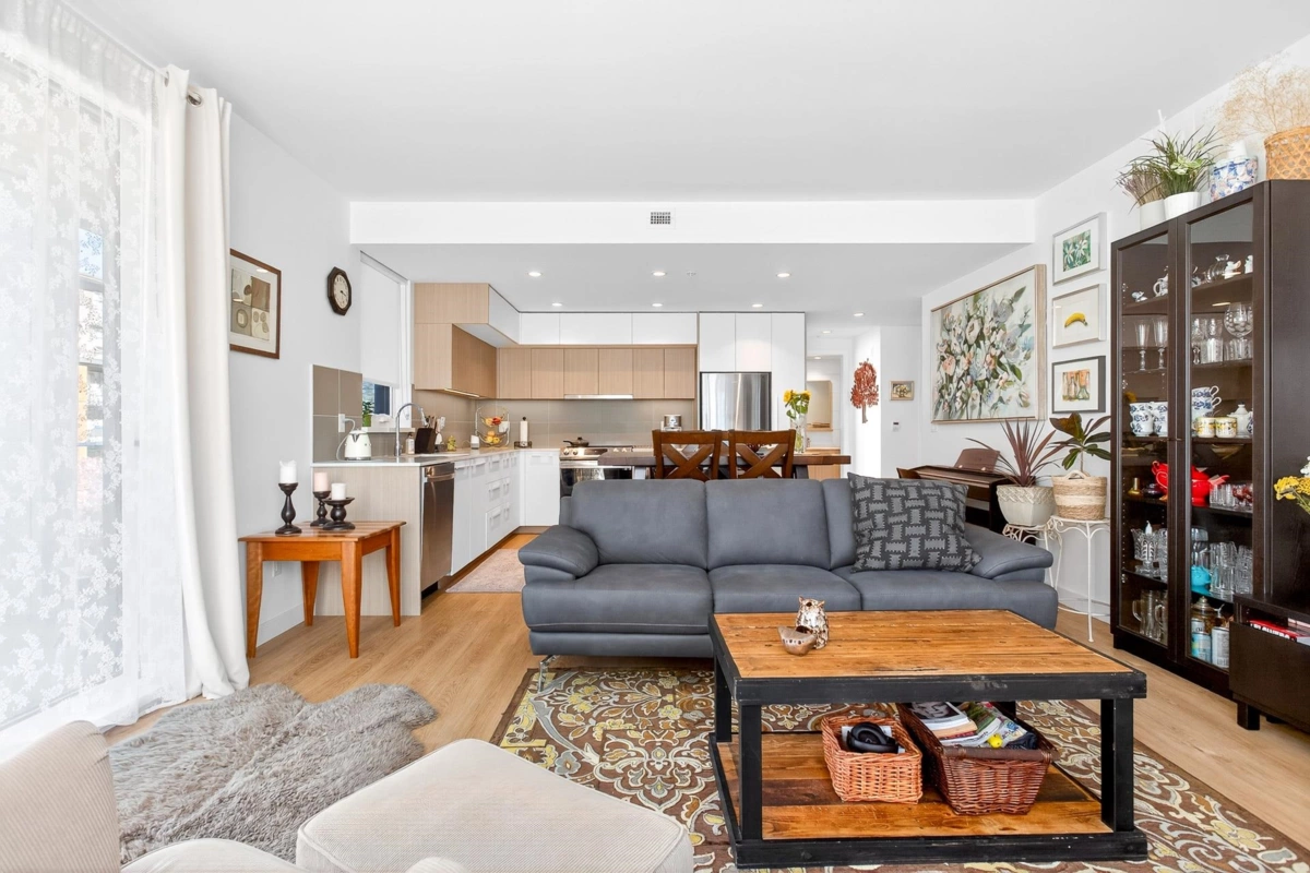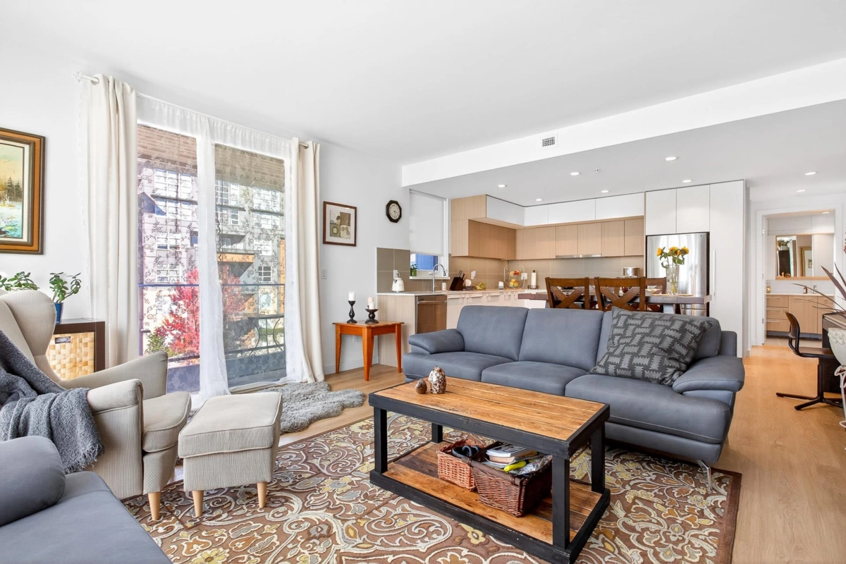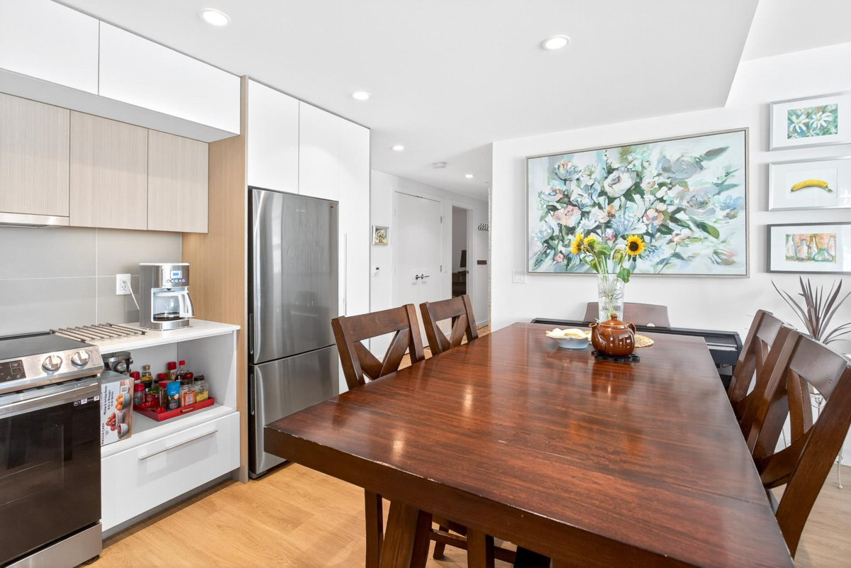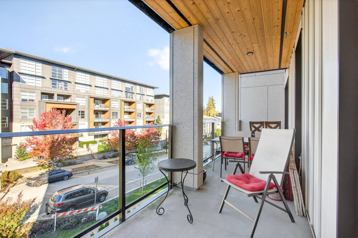 Welcome to this lovely CORNER unit at Oslo near SFU! Featuring 1100 sqft with 2 beds plus DEN and 2 full baths. Designed with a Scandinavian flare, the stylish kitchen has Samsung appliances, plenty of storage and a window above the sink. Luxury vinyl plank floors throughout. Generous rooms fit house sized furniture. Fabulous 32 foot long, deep balcony. Comes with a storage locker and parking spot. Just steps to Nesters Market, coffee shops, the bus loop, University Highlands Elem School, and all of the amenities at SFU.