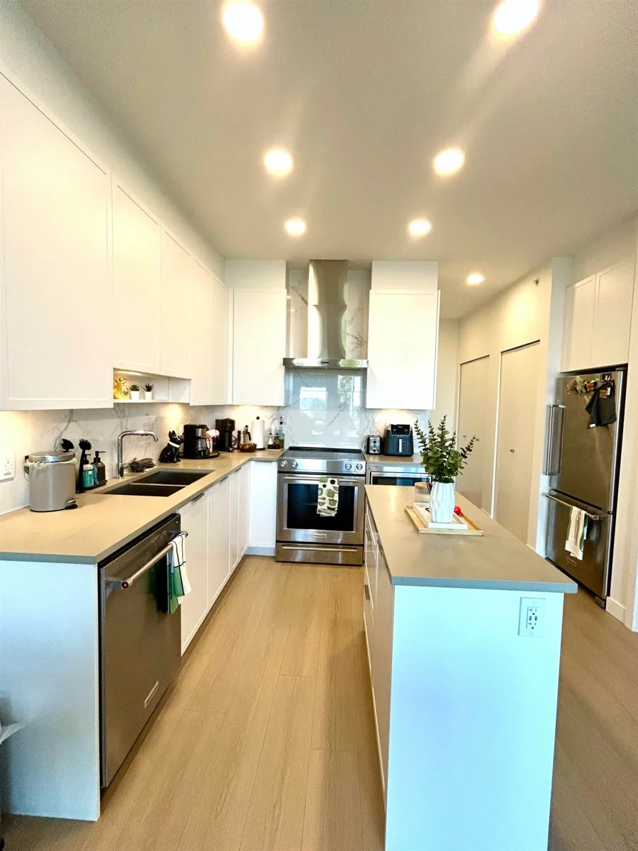 Azure II Indigo at Southgate City, proudly developed by Ledingham McAllister. Only one year old, Top Floor, 2 bed 2 bath unit with interior living of approx. 815 sqft. The open-concept layout features stainless steel appliances and front-loading washer/dryer. With expansive windows and a balcony with view of the bridge and city. This home is naturally bright and airy. It includes with 1 parking stall and 1 Storage Locker. Residents can take advantage of the impressive amenities including a fitness center, guest suites and a beautifully landscaped outdoor space. Centrally located in the Edmonds neighborhood, close to Skytrain Station, schools, shopping and Recreation Centre. Open House October 4 12:30-2:30pm.