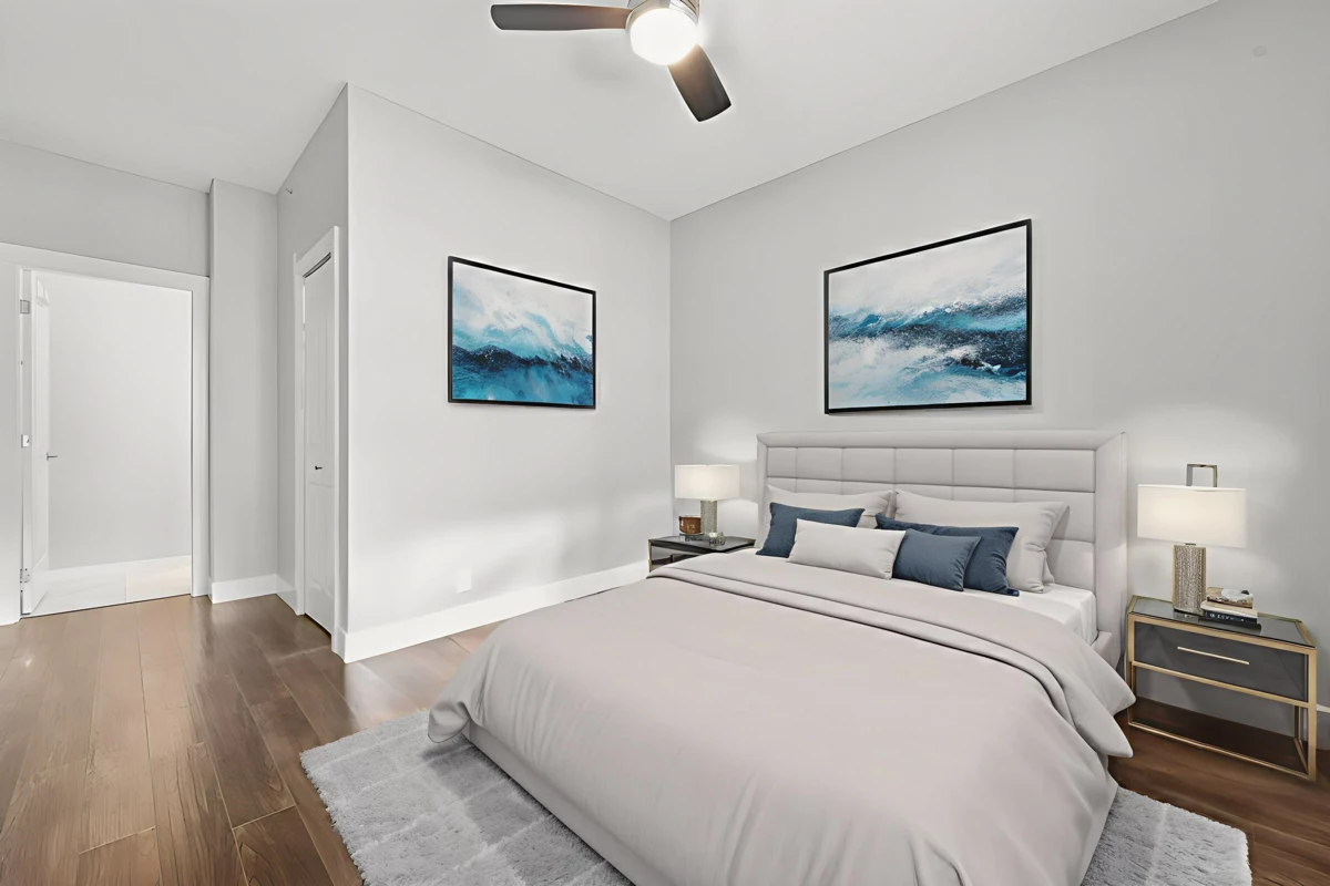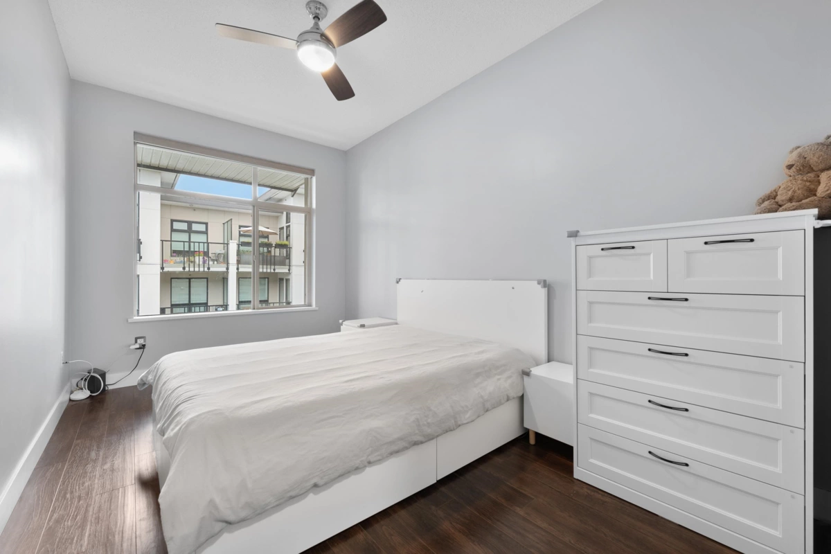 One of the LOWEST price per sqft in the entire neighborhood, Top-floor 2-bedroom, 2-bath condo with TWO parking stalls, soaring 10.5 ft ceilings, and a bright, spacious layout with bedrooms on opposite sides for added privacy. Features include a primary suite with walk-in closet and 5-piece ensuite, modern LED lighting with fan/light combos, roller shades, and blackout blinds. Conveniently located steps to Walmart, banks, restaurants, and just minutes to Richmond’s top shopping and community centers—this rare find won’t last! Open house November 29 Sat 2-4