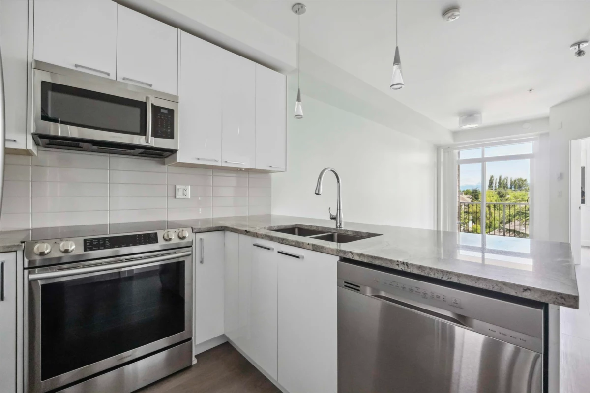 This bright 2-bed, 2-bath home offers modern finishes, open-concept living, and oversized windows that fill the space with natural light. Enjoy a private balcony with mountain views, a sleek kitchen with quartz countertops, and in-suite laundry for convenience. Located steps from shopping, dining, schools, and the future SkyTrain station, this unit offers unbeatable accessibility. With secure parking, pet-friendly policies, and a vibrant neighborhood, it’s the perfect blend of comfort, style, and investment potential.