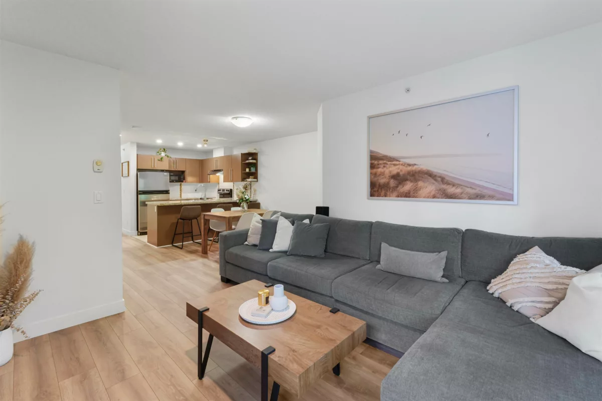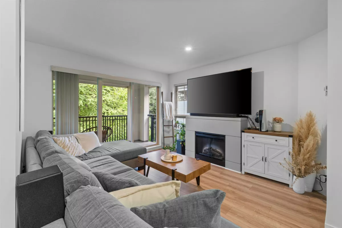 Top floor 1 bedroom + den at Memento in Brentwood. This bright, very well-kept home features an open layout with a spacious kitchen, granite counters, stainless steel appliances, and an eat-up bar. The living room offers an electric fireplace and access to a covered balcony. The bedroom includes a walk-in closet and cheater ensuite, plus a versatile den for office or storage. Includes parking, storage locker, and access to shared EV charging. Walk to SkyTrain, Brentwood Mall, schools, and parks—ideal for first-time buyers or investors.