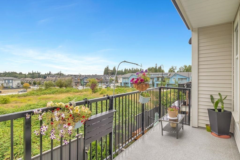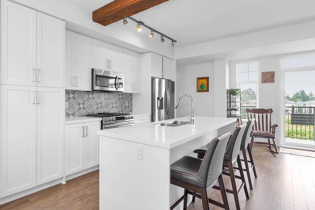 FANTASTIC VALUE, BEST PRICED TOWNHOME IN MAPLE RIDGE! Gorgeous 3 bedroom & 3 bath townhome nestled in the beautiful Willow & Oak complex. Featuring a double wide garage and large South facing fenced backyard, overlooking a serene green area. Bright open floor plan concept, with plenty of windows and high ceilings. Modern design touches with a wooden beam in the great room, beautiful lighting fixtures, Spanish inspired backsplash, quartz counters, SS appliances and gas stove in the kitchen. Powder Room conveniently located on the main floor. Upstairs has 3 good size bedrooms, and 2 full bath. Spacious MB w feature wall, 2 large closets & ensuite. Great neighbourhood, close to shopping, restaurants, schools, parks and a recreation centre. DONT MISS THIS OPPORTUNITY .