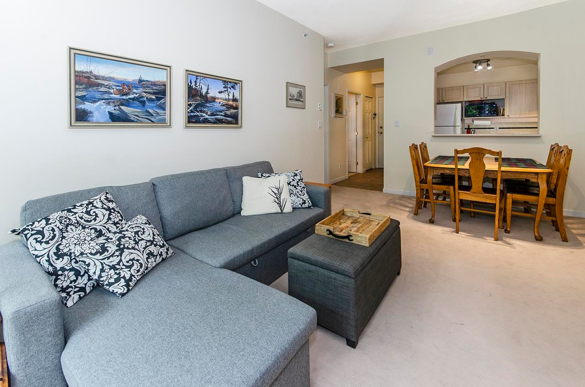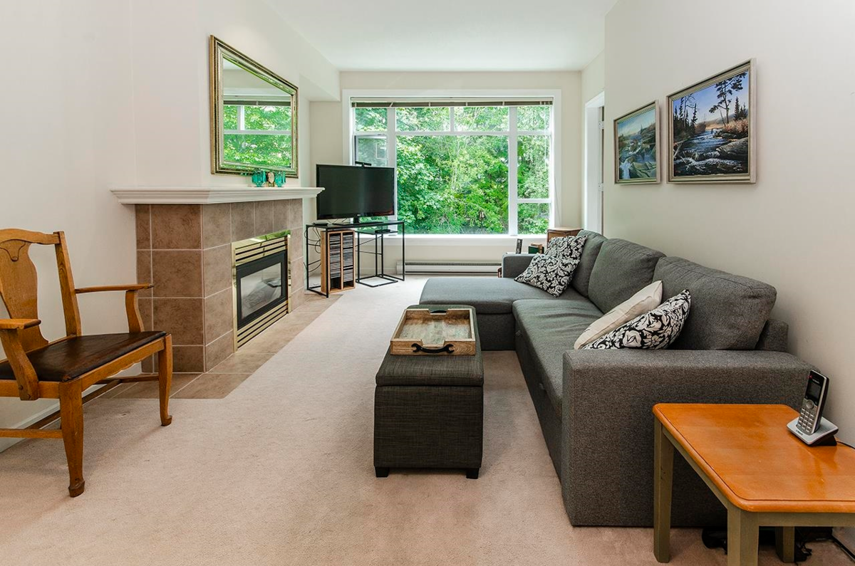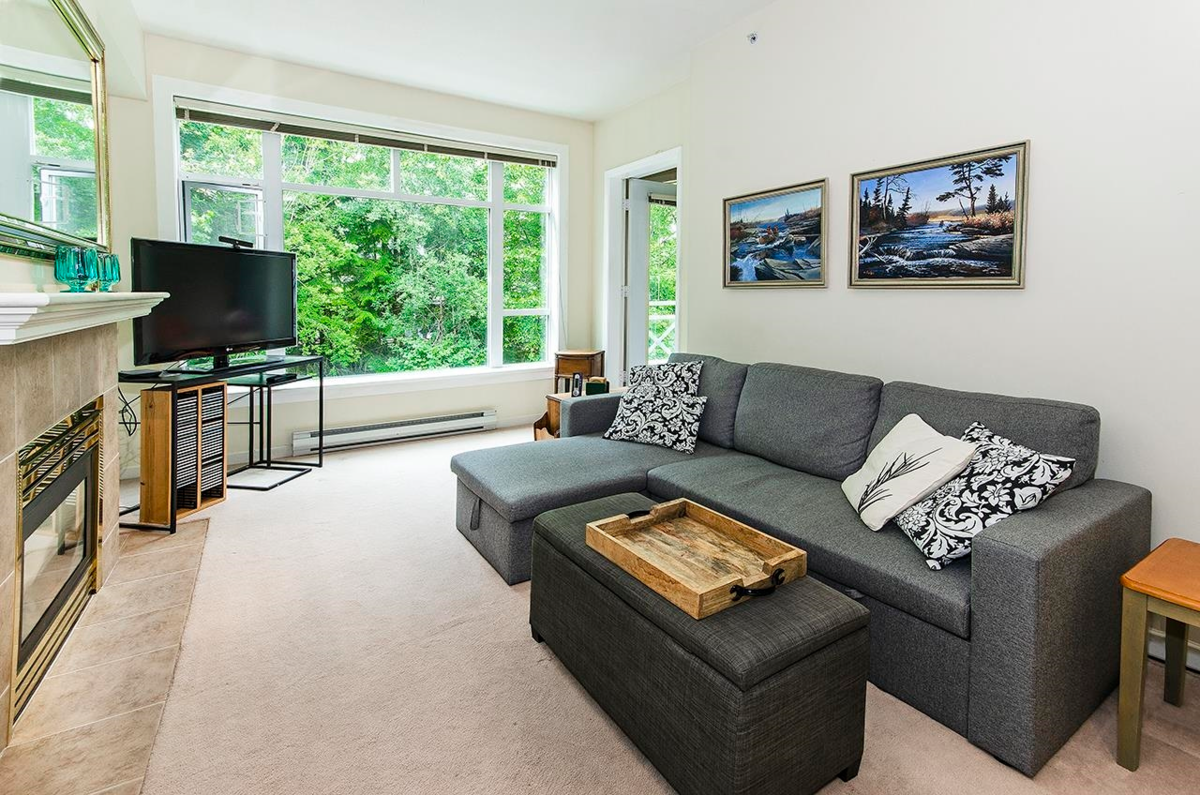 This one bedroom home faces North with a treed, private outlook for quiet enjoyment. The balcony is perfect for barbecues on a summer evening. 8 inch concrete slabs between floors adds to the tranquility. The living room offers a gas fireplace and large windows plus a door to the balcony. The master bedroom is spacious with a huge closet for storage. Insuite washer/dryer, good sized kitchen and dining area. The gym is well equipped and the party room features a kitchen and outside patio space. This complex is dog friendly and a path leads down the hill and joins up with a beach front trail. A piece of paradise 25 minutes from downtown! (Dishwasher does not work). 99 year prepaid leasehold . Accepted offer only subject to probate.