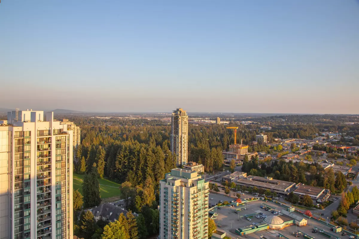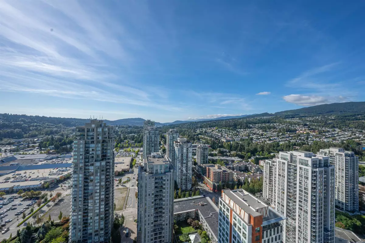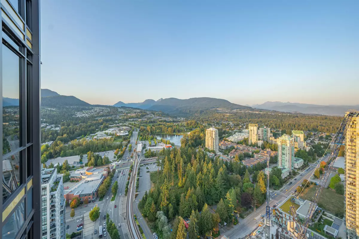 Welcome to M3 by Cressey, Coquitlam's tallest and most sought-after tower. This 2bed/2bath home also includes a spacious den with a large window, easily used as a third bedroom. The southwest-facing corner layout, 9' ceilings, floor-to-ceiling windows, air conditioning, and an efficient floorplan designed for modern living. The signature CresseyKitchen is equipped with Blomberg & Fulgor Milano appliances, double refrigerators, and a wine cooler. Enjoy sweeping, unobstructed views from every room. The primary suite features a spa-inspired ensuite with radiant heated flooring. Exclusive access to the Summit Club on the 47th & 48th floors, offering 9,000 SF of world-class amenities including gym, lounge and entertainment spaces. Just steps to Coquitlam Centre, SkyTrain, Lafarge Lake and more.