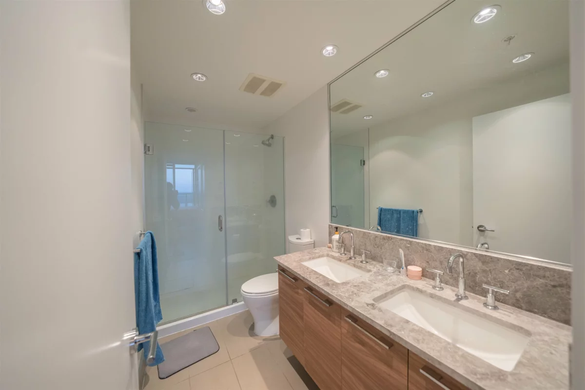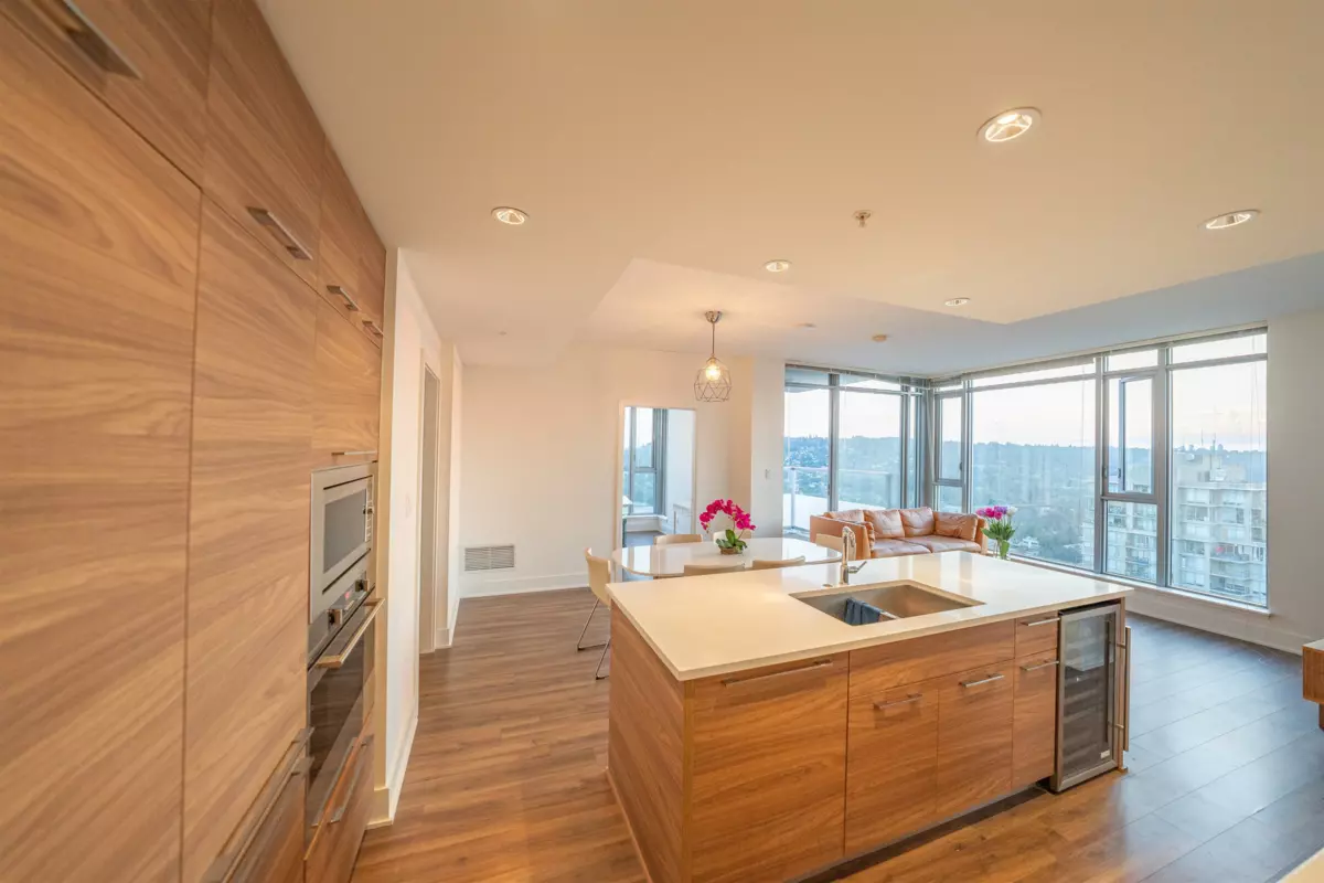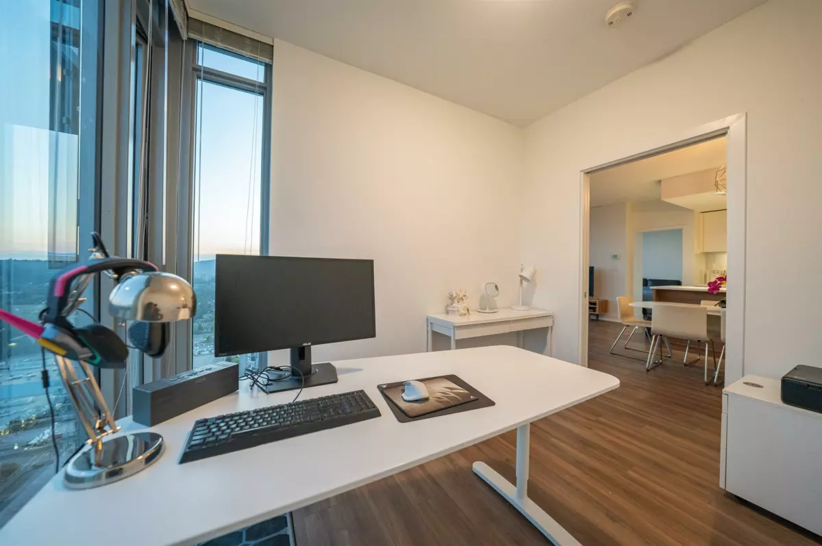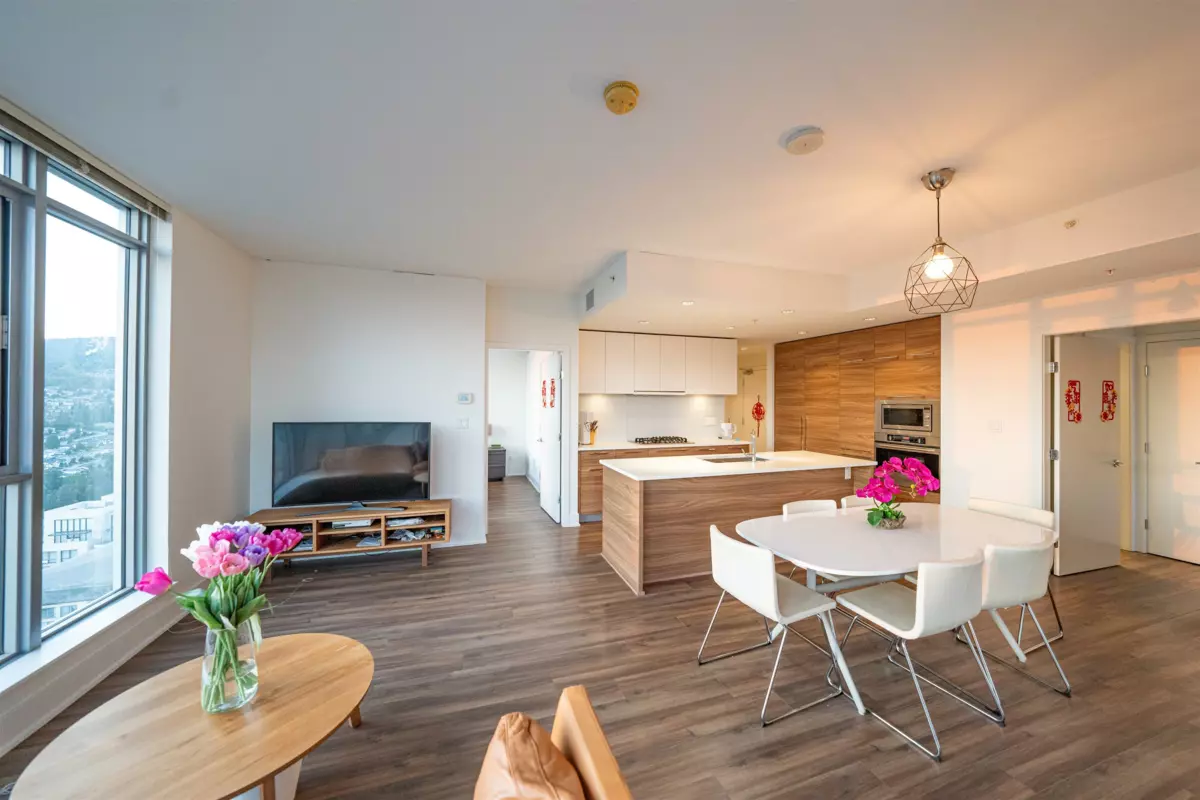 Welcome to M3 by Cressey, Coquitlam's tallest and most sought-after tower. This 2bed/2bath home also includes a spacious den with a large window, easily used as a third bedroom. The southwest-facing corner layout, 9' ceilings, floor-to-ceiling windows, air conditioning, and an efficient floorplan designed for modern living. The signature CresseyKitchen is equipped with Blomberg & Fulgor Milano appliances, double refrigerators, and a wine cooler. Enjoy sweeping, unobstructed views from every room. The primary suite features a spa-inspired ensuite with radiant heated flooring. Exclusive access to the Summit Club on the 47th & 48th floors, offering 9,000 SF of world-class amenities including gym, lounge and entertainment spaces. Just steps to Coquitlam Centre, SkyTrain, Lafarge Lake and more.