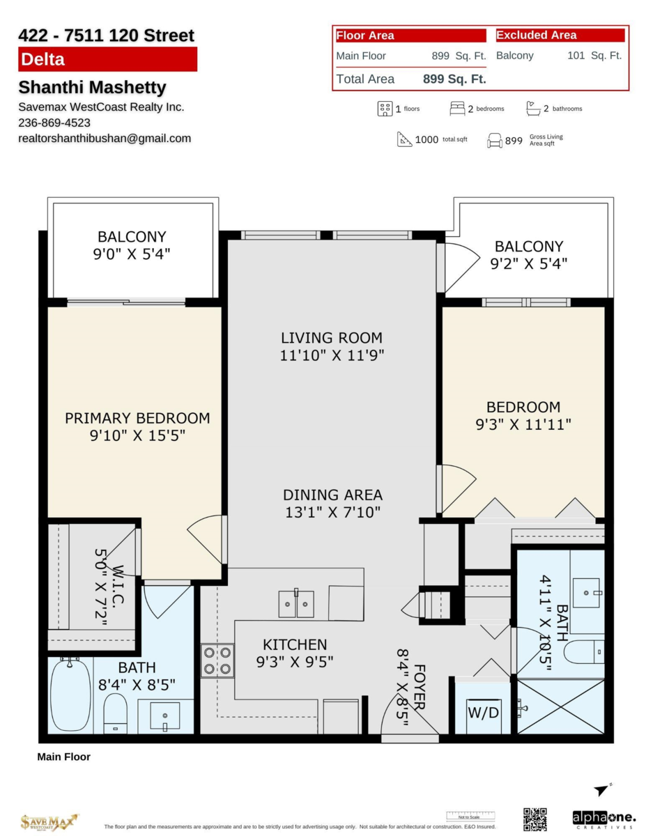 Bright and spacious 2 bedroom, 2 bathroom condo with 899 sq ft of living space in a highly desirable North Delta neighborhood. This well-designed home features a functional open layout with two large bedrooms offering comfort and privacy, plus two private balconies with views of the surrounding suburbs. Positioned on the quiet side of the community, it provides peace and calm while keeping you just steps from groceries, restaurants, shops, and everyday amenities. Recent owner updates include new appliances and finishing touches, making this home move-in ready. Excellent location close to schools, transit, and parks — a rare opportunity to enjoy both convenience and tranquility in the heart of North Delta.