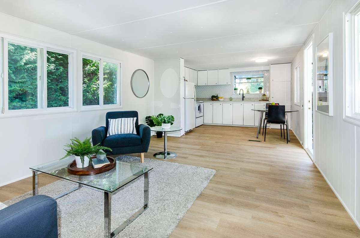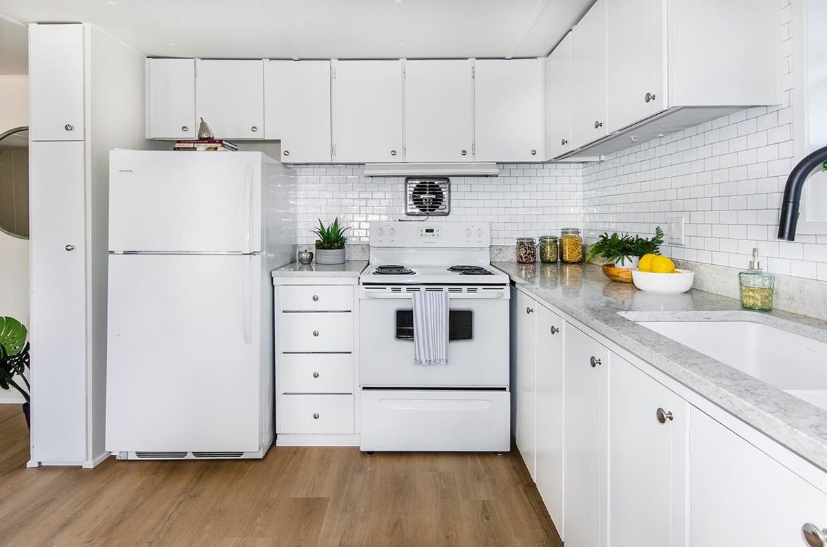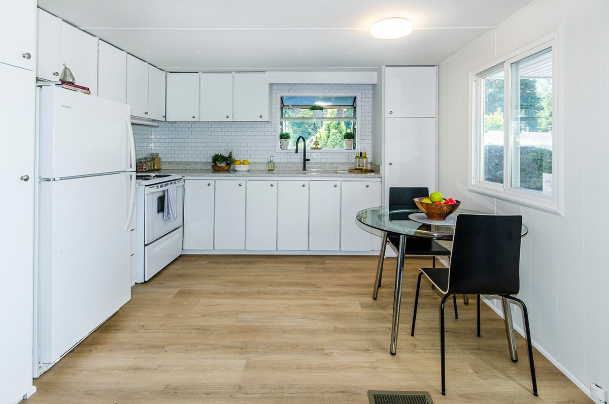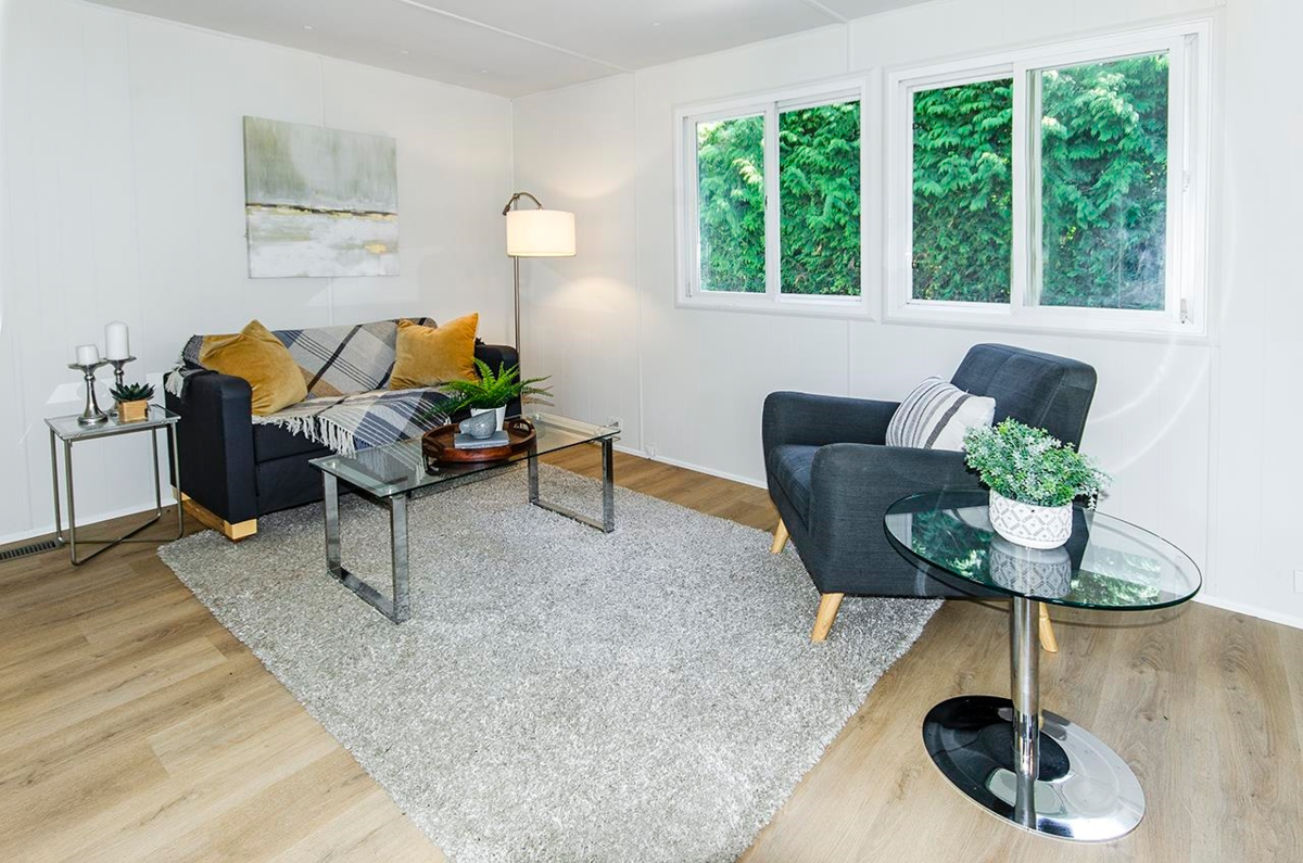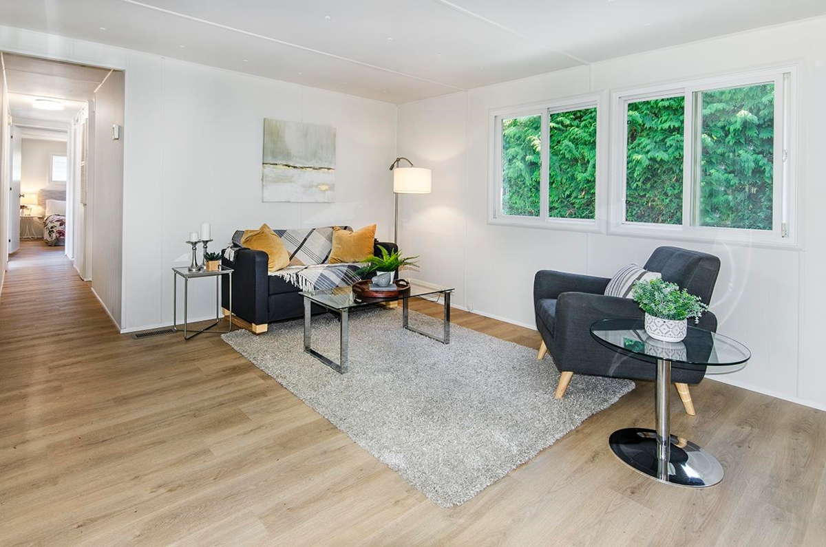 The Capilano Mobile Home Park is the IDEAL Location next to Ambleside Park, the Capilano River, Park Royal Shopping and only 10 minutes to downtown Vancouver. This 2 bedroom , 1 bath home has many upgrades including vinyl windows, brand new LVP flooring, full paint job, new kitchen & bathroom counters as well as a newly installed walk-in shower . The open plan living space allows for many different furniture configurations. Roof is about 5 years old & furnace is about 15 years old. Enjoy watching the world go by from your covered front deck with skylights & new carpeting. This unique yard allows for privacy & shade as well as a sunny lawn area that is perfect for gardening. Monthly pad rental fee is $960. No financing available & no rentals. A small pet is permitted. 55+ age restriction.
