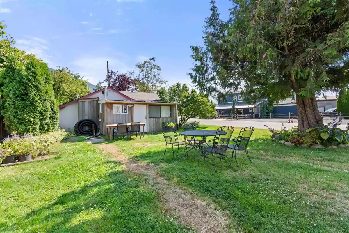 Small home in Yarrow on 33' x 132' corner lot zoned C2 which includes Antiques, arts, craft and hobby items, bookstore, garden supplies, gifts and souvenirs groceries and pharmacy, hardware and many other uses. Great exposure on busy Yarrow Central Rd with thousands of cars per day in Summer. Lots of street parking on side street. Close to restaurants, shopping, parks and Farmers Markets and other events held at the park across the street each summer. Lots of opportunity to bring your business ideas to this quaint community. Very few commercially zoned properties in Yarrow. 2 NG Fireplaces. RV parking with power.