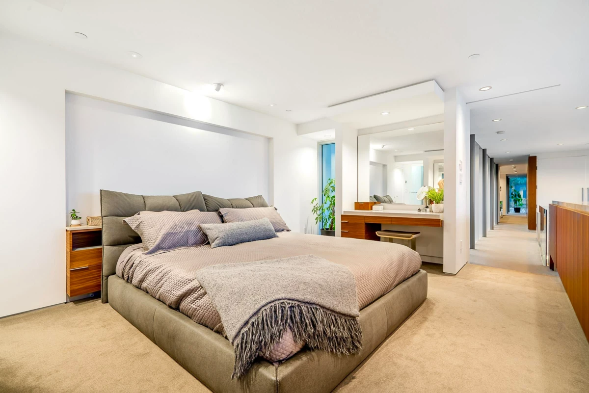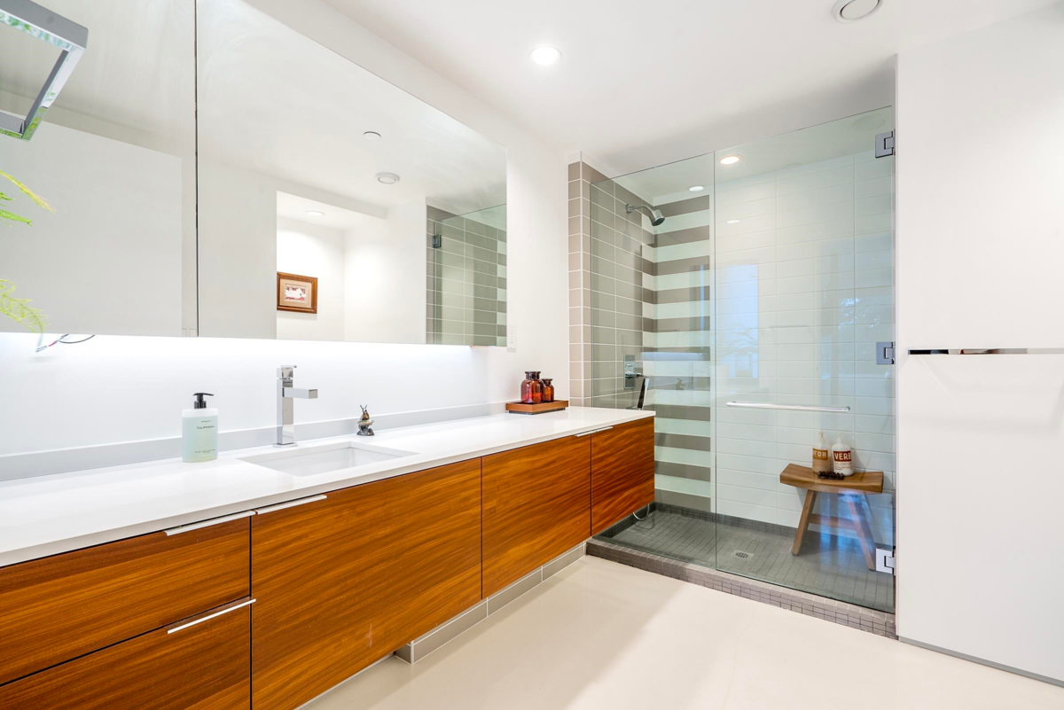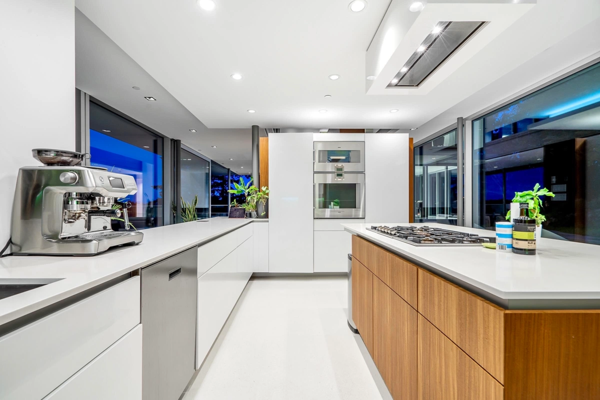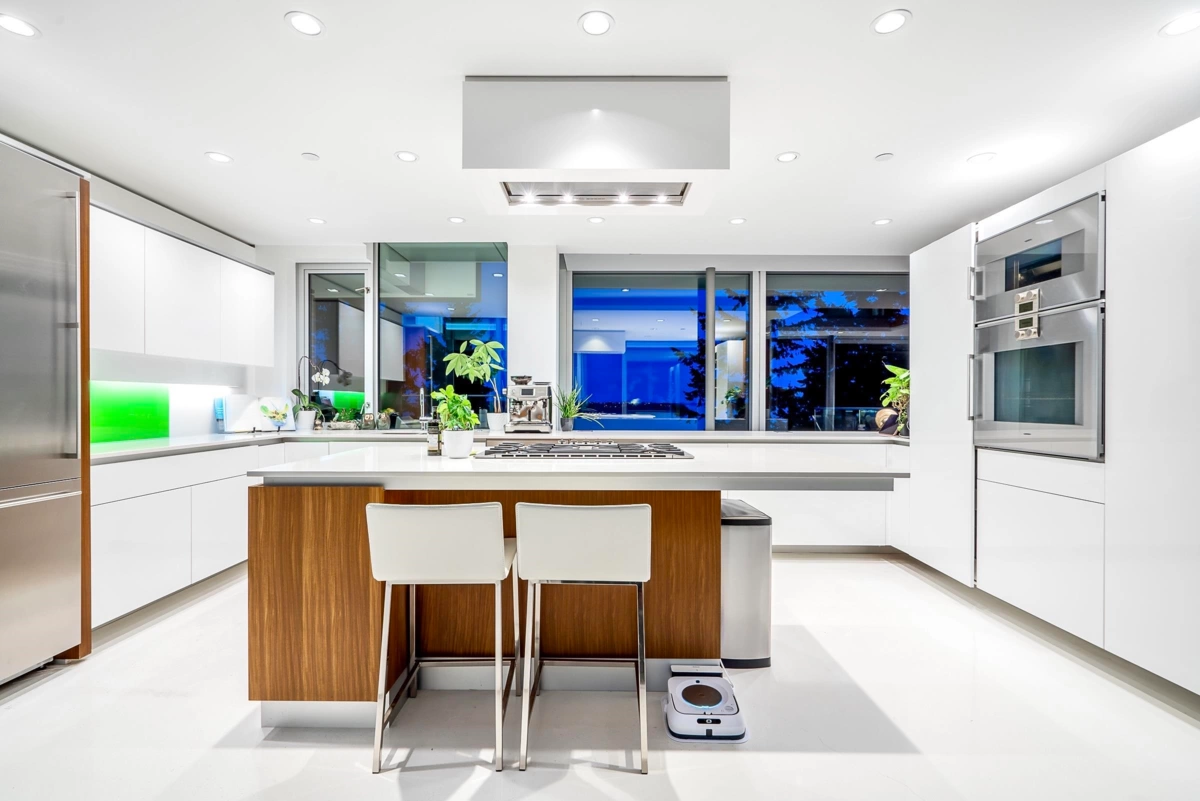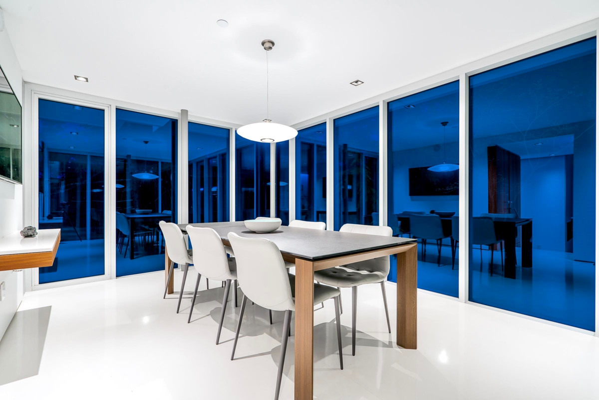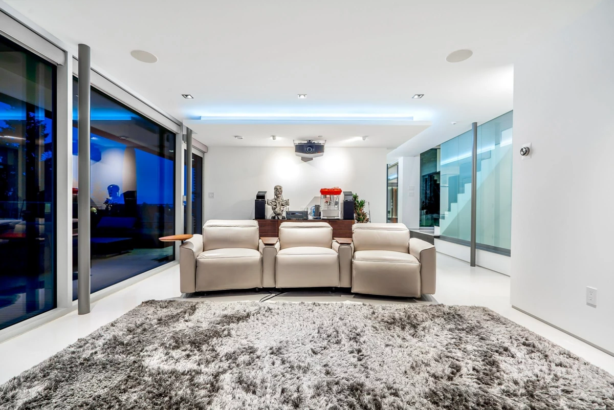 World Class West Coast Contemporary on private cul-de-sac, nestled among rock outcrops and towering Douglas firs overlooking spectacular ocean & city views. Designed by award winning architect & built to exacting standards w/extensive use of concrete, steel & cross laminated timbers, exterior façade of zinc-aluminum panels, commercial grade aluminum windows & doors. A signature 2-storey entry leads to large double height living area w/FP, formal dining, custom island kitchen. Principal rooms open to 3 lg patios & hot tub. African millwork & built-in cabinetry throughout. Up features sensational master w/spa-like ensuite & priv terrace, 2 guest bdrms w/ensuites. Down offers a rec/media rm or optional bdrms. All principal rooms capture stunning views from English Bay to Van Island & beyond.