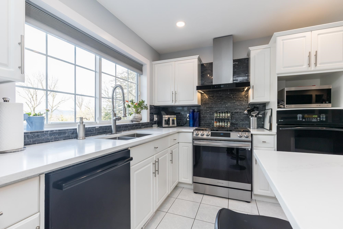 BREATHTAKING PANORAMIC MOUNTAIN & VALLEY VIEWS from most main rooms & large deck! Gorgeous updated 2941 sf 2 storey w/bsmt & oversized double garage w/high ceilings plus detached 22x13 workshop. Beautiful private park-like 2.38 acre back to nature retreat in peaceful Majuba Hill - minutes from the small community of Yarrow. Gourmet kitchen w/double ovens, gas cooktop, breakfast bar island & eating area flow into family rm with a fireplace. Traditional layout with large living rm & adjoining dining rm. 3 spacious bedrooms up - primary w/luxurious ensuite with dual vanities, shower & soaker tub with Mountain views. Bright basement with games rm or 4th bedrm & large hobby/storage rm. On city water. New high-efficiency furnace & A/C (2022). Perfect blend of privacy, space & breathtaking views!