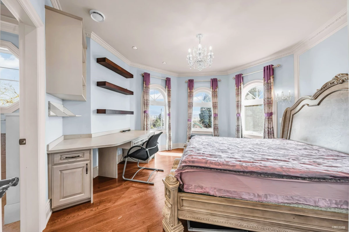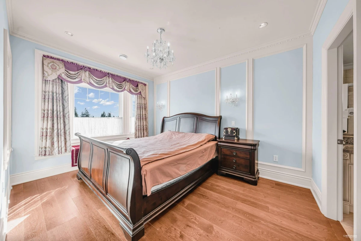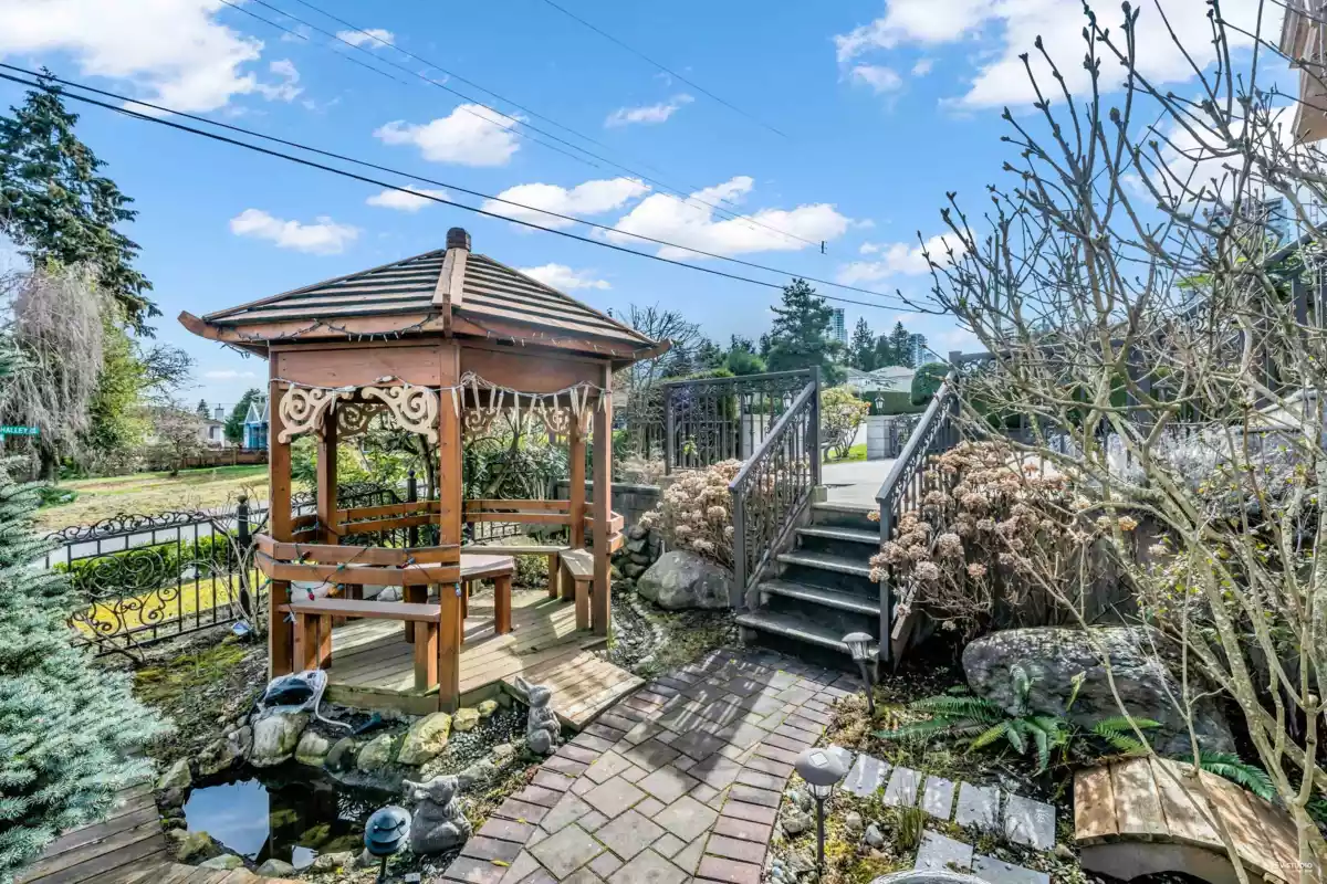Stunning custom-built corner lot home in Garden Village with breathtaking mountain views, offers luxury, comfort, and unparalleled craftsmanship. Boasting 6 bedrooms and 6.5 bathrooms, with open and spacious layout and high-end finishes, including crown and floor molding, a gourmet kitchen with top-tier Thermador s/s appliances, a sweeping spiral staircase, HRV, A/C, 8-speaker music system and an 8-camera security system. Two bedroom ensuite in the basement with separated entrance/ kitchen/ laundry.The private low-maintenance backyard with custom-built gazebos creating the perfect retreat for summer. 2-car garag, 5 mins walking to bus stops, 15 minutes to Patterson SkyTrain, Quick access to Highway 1. Catchment School: Chaffey-Burke Elementary & Moscrop High. Open House: Nov 23 Sun 12-2 pm