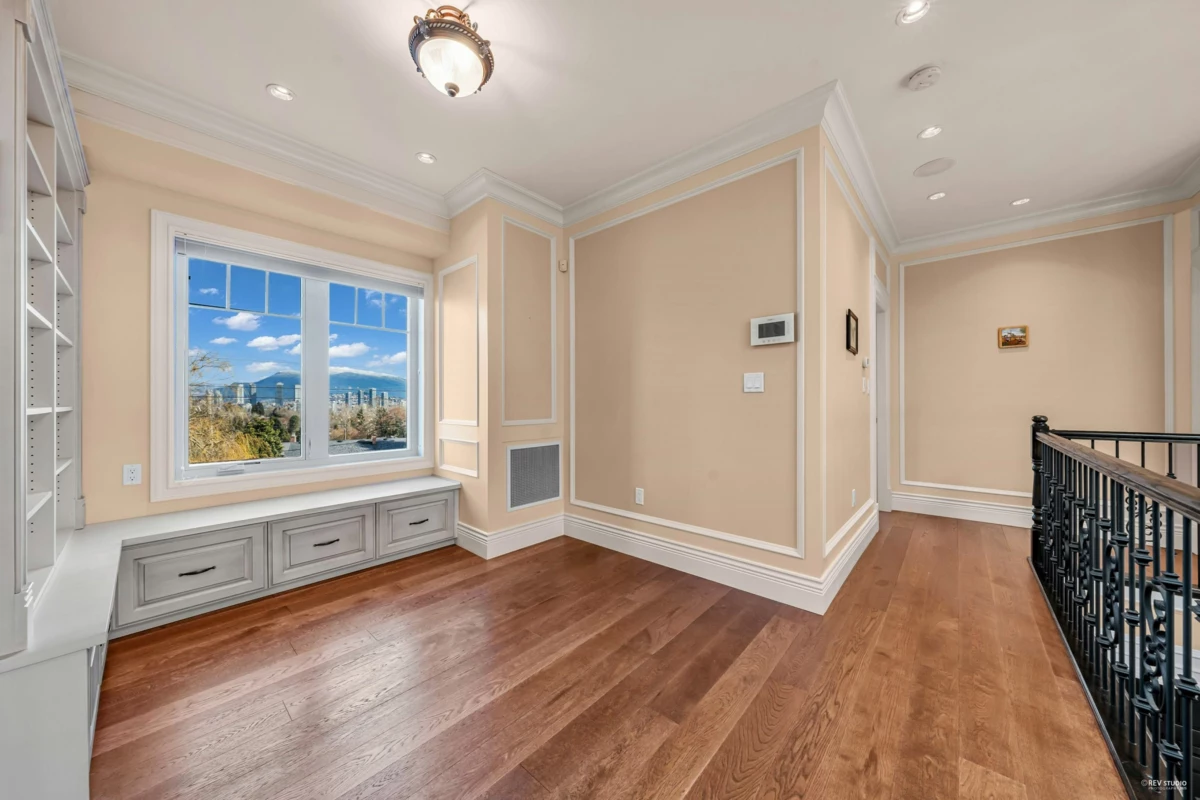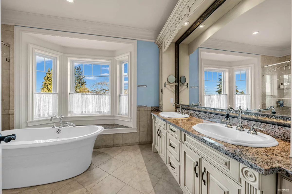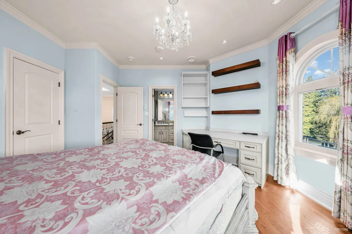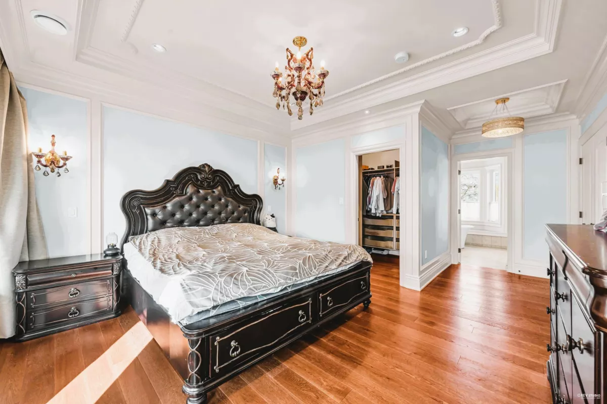 Stunning custom-built corner lot home in Garden Village with breathtaking mountain views, offers luxury, comfort, and unparalleled craftsmanship. Boasting 6 bedrooms and 6.5 bathrooms, with open and spacious layout and high-end finishes, including crown and floor molding, a gourmet kitchen with top-tier Thermador s/s appliances, a sweeping spiral staircase, HRV, A/C, 8-speaker music system and an 8-camera security system. Two bedroom ensuite in the basement with separated entrance/ kitchen/ laundry.The private low-maintenance backyard with custom-built gazebos creating the perfect retreat for summer. 2-car garag, 5 mins walking to bus stops, 15 minutes to Patterson SkyTrain, Quick access to Highway 1. Catchment School: Chaffey-Burke Elementary & Moscrop High. Open House: Nov 23 Sun 12-2 pm