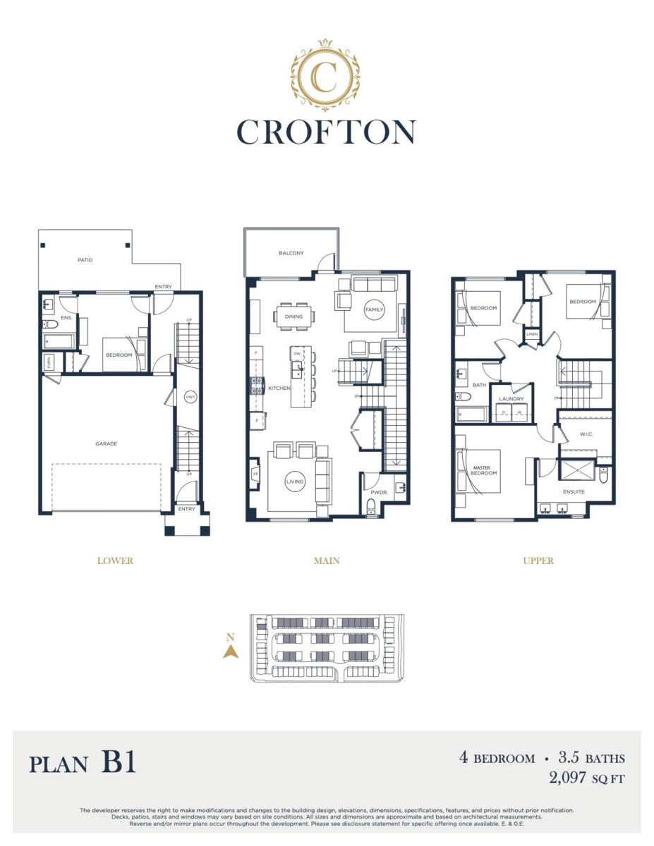 Welcome to CROFTON, the newly constructed final phase in Willoughby Heights by Atrium Developments. Offering some of the largest, move-in ready 3 and 4 bedroom townhomes on the market. Designed for modern families, these homes feature open-concept spacious layouts, bright and stylish interiors, and over-height double-car garages for added convenience. Gorgeous LG kitchen appliances with 5-burner gas range and A/C standard in all homes. Offering a prime location close to top-rated schools, parks, shopping, and transit. Crofton is Langley's BEST value offering the perfect blend space, comfort, and accessibility. Come and view our beautifully staged show homes. Sales Centre is open on Saturdays and Sundays from 1 to 5 PM. Enter through home #67.
