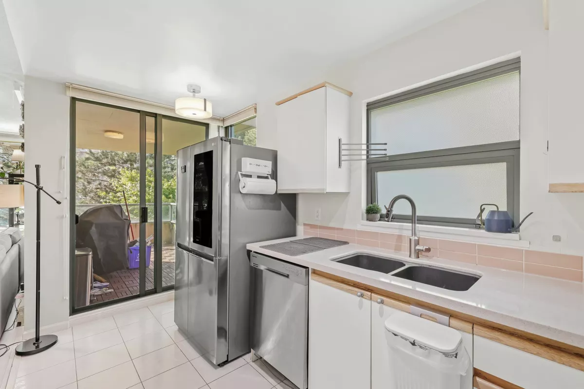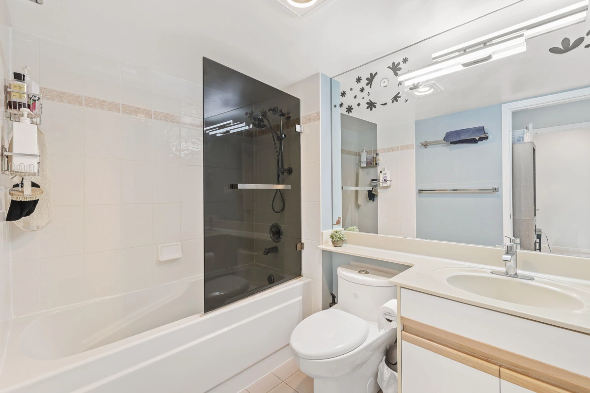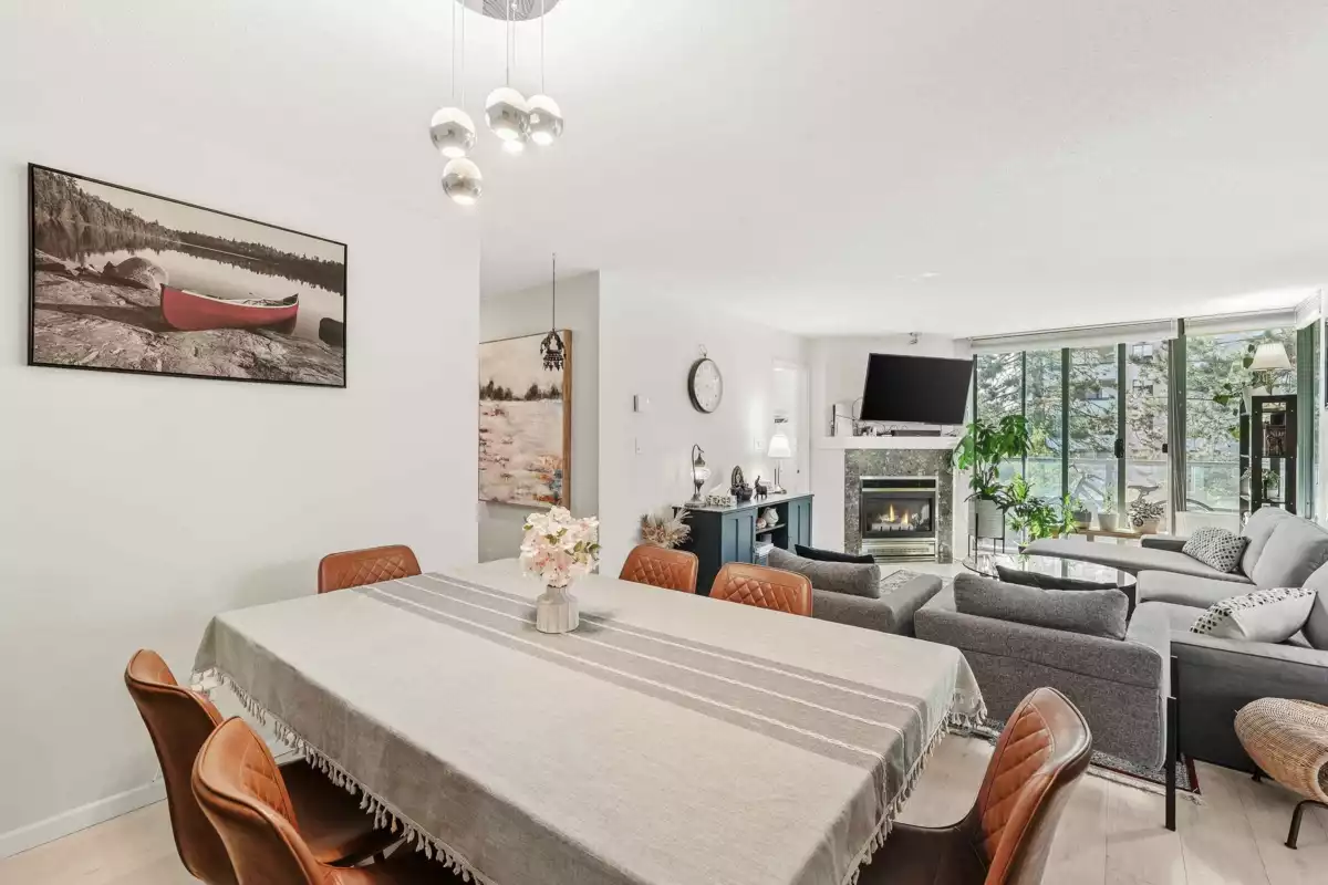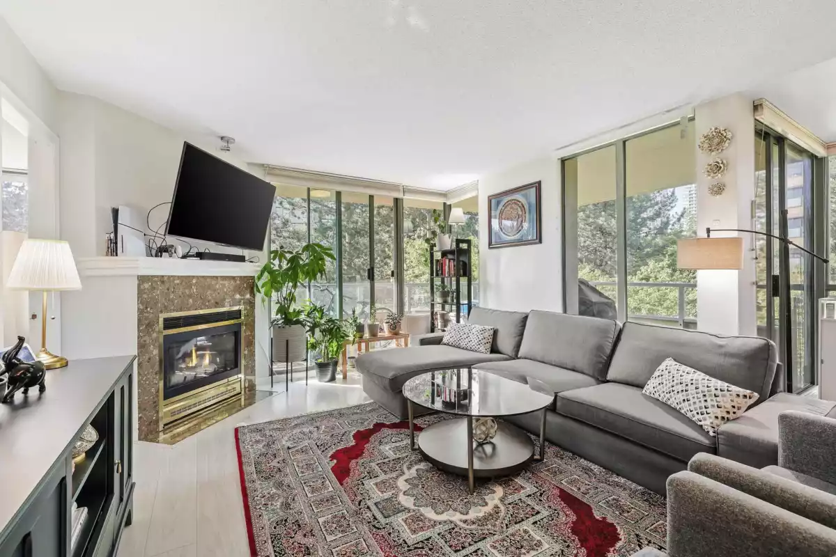 Spacious and practical 2-bedroom, 2-bathroom corner home designed for everyday living. Enjoy a bright open layout with a dedicated dining area, cozy gas fireplace, and a large private balcony. The recently renovated kitchen boasts quartz countertops, stainless steel appliances, and ample cabinet space. Both bedrooms are generously sized, with the primary featuring a private ensuite. Freshly painted and move-in ready, complete with in-suite laundry, 1 parking, and 1 storage locker. In a well-maintained building, just steps to Starbucks, Save-On-Foods, Highgate Village, and minutes to Edmonds SkyTrain and Metrotown. Perfect for first-time buyers or small families! Open house this Sunday - October 26, 2025!