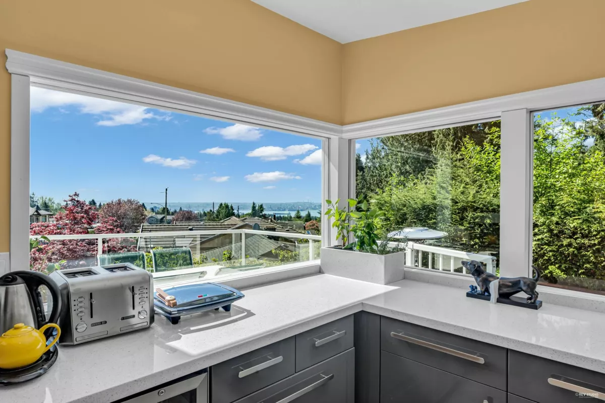 Welcome to this beautifully maintained five-bedroom, 3.5 bathroom residence in one of North Vancouver's most sought-after neighborhoods. This exquisite property perfectly blends elegance, comfort, and functionality, making it a sanctuary for families and entertainers. Enjoy a spacious, light-filled layout, featuring high-quality finishes, hardwood floors, and large windows framing beautiful water, city, and Mountain views. The gourmet kitchen is a chef's dream, boasting premium stainless-steel appliances, quartz countertops, and ample cabinetry. The lower level offers a fully finished one-bedroom suite. Outside, the private landscaped garden features a stunning solar-heated pool and a relaxing dry sauna, perfect for unwinding on warm summer days. Open House Sunday, November 30, from2-4