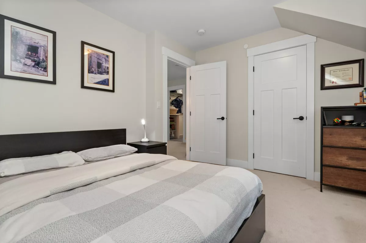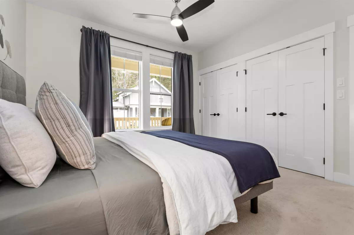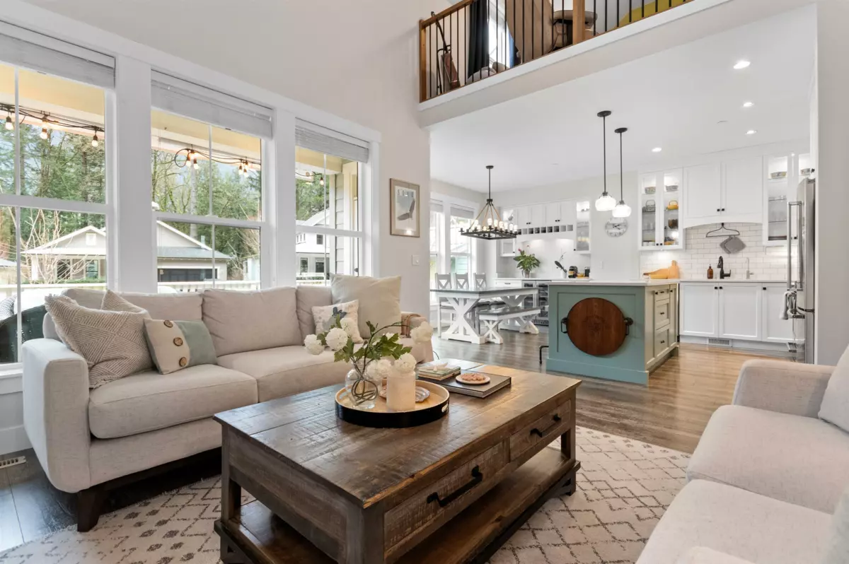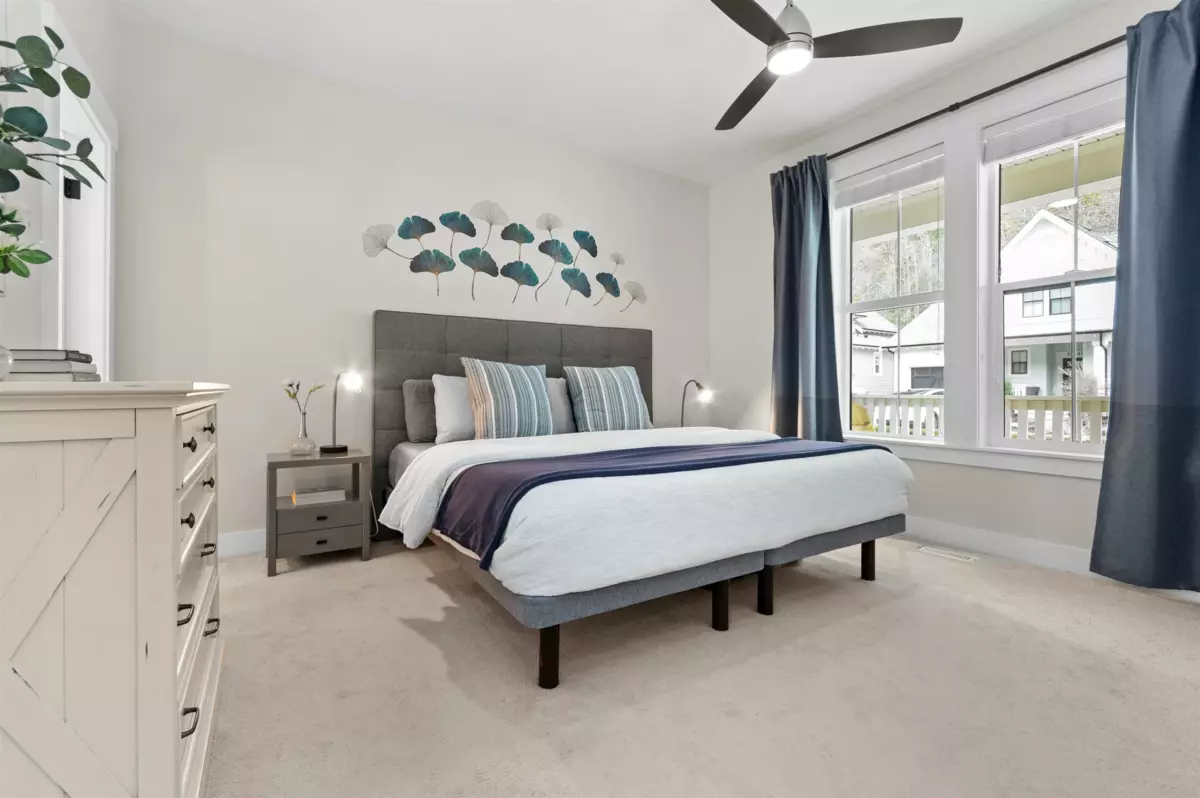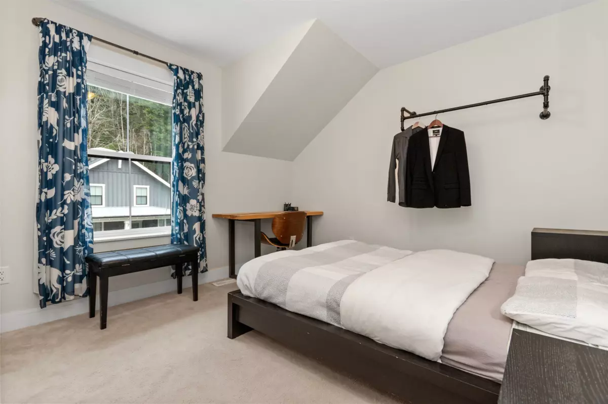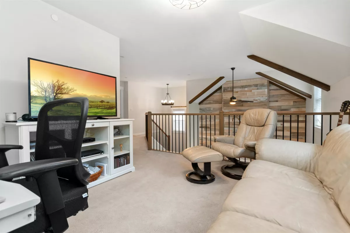 This 1,705 sq. ft. home in Creekside Mills offers a new lifestyle with breathtaking views. A welcoming pond, extended organized garage, widened driveway, & amped-up garden shed enhance its curb appeal, while the sunny south-facing deck showcases VIEWS FOR DAYS! Inside, the stylish kitchen features pull-out organizers, a built-in hutch, & a wine fridge. The 18-ft. great room shines natural light on a barnboard accent wall & a limestone fireplace. The main-floor primary includes his/hers closets & a timeless ensuite w/ double vanity & heated floors. Upstairs, 2 bedrooms, a loft/office, & laundry. Extras: A/C, water softener, generator hookup, & irrigation. Enjoy the security of a gated community with perks; a clubhouse, pools, hot tub & sauna, gym, trails, & lake access. Furniture Negotiable